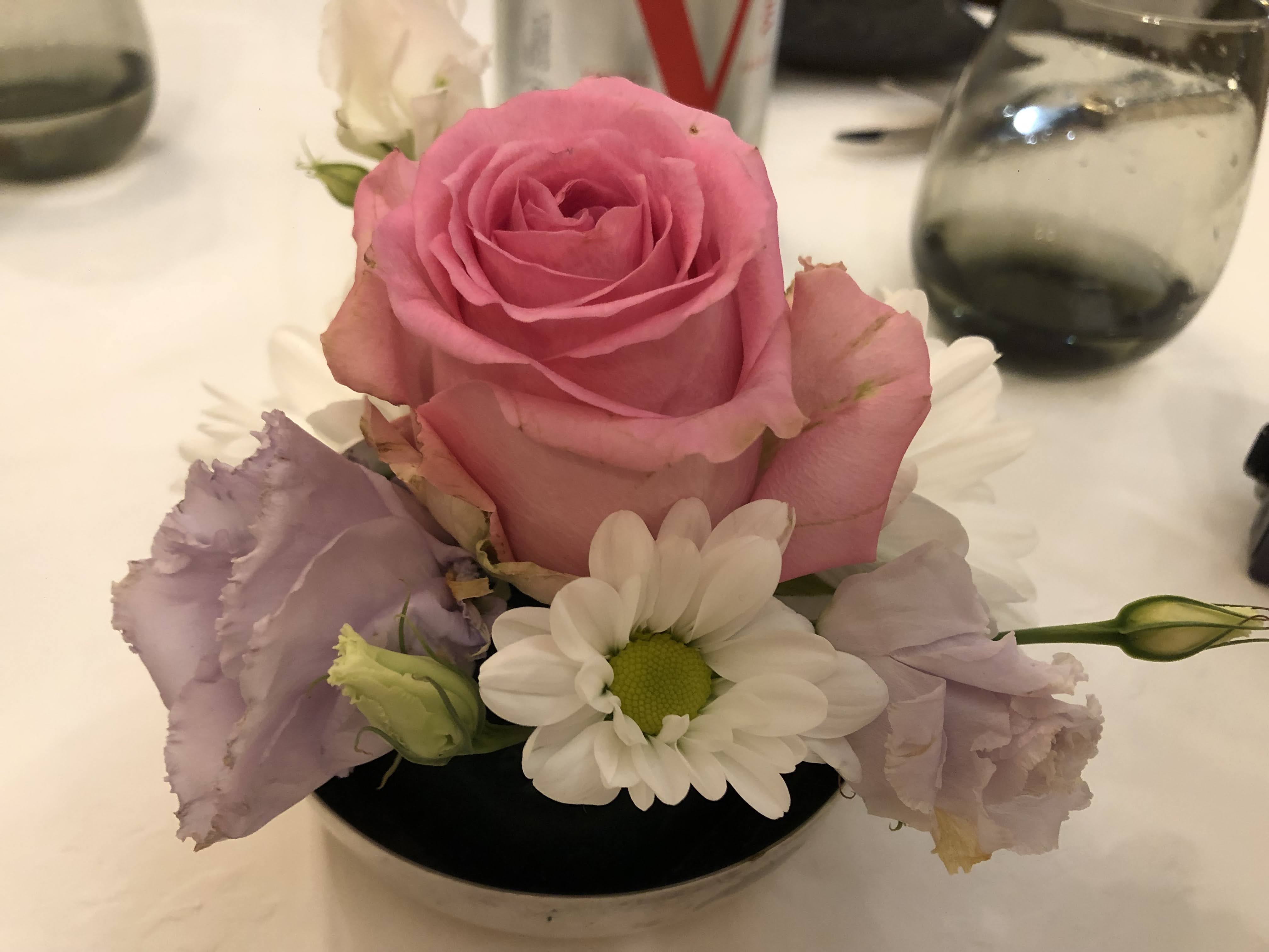 Très bon repas mais un peu d'attente : 45 n avant l'entrée 1 rose au moment de partir trop classe.