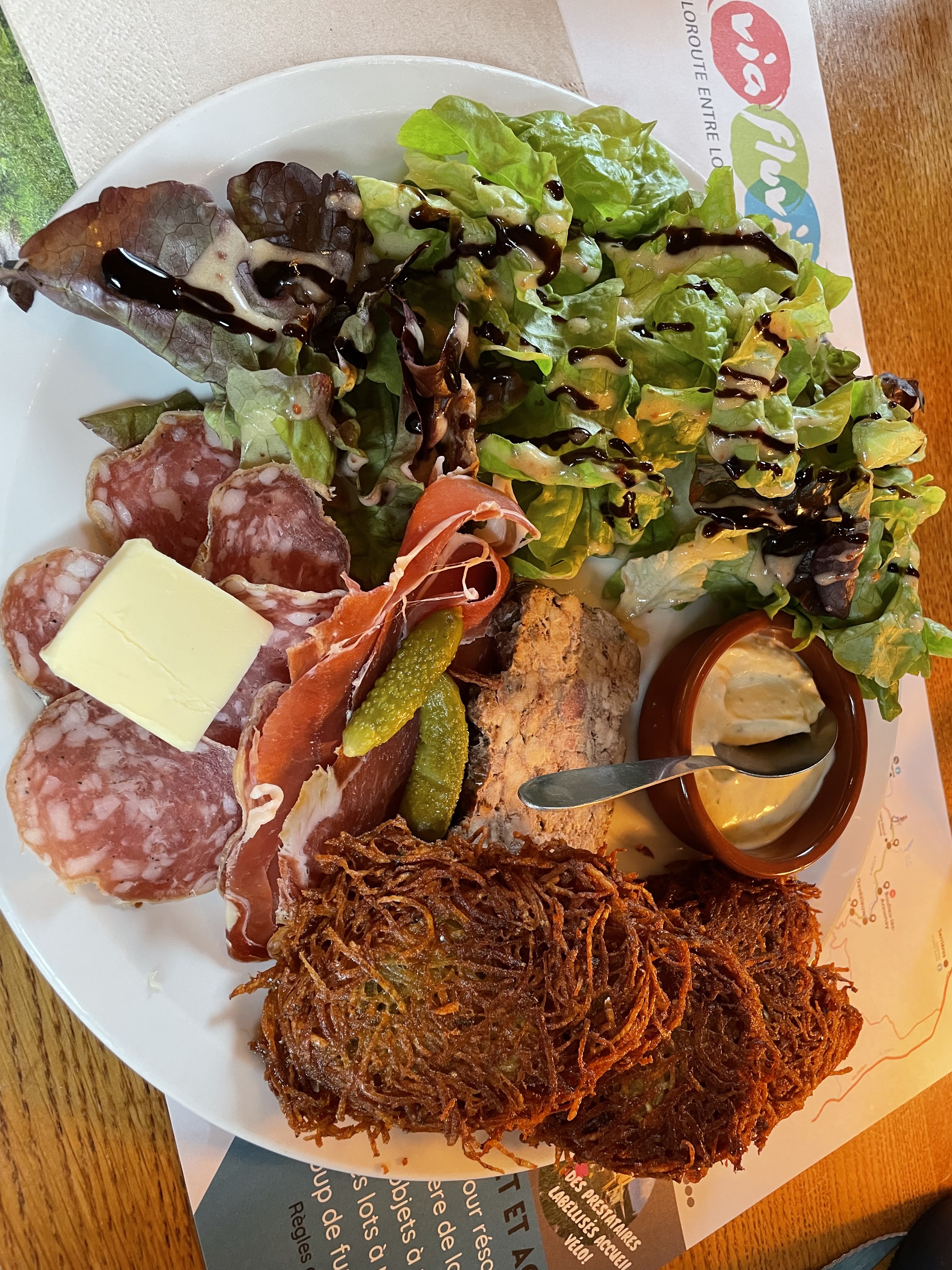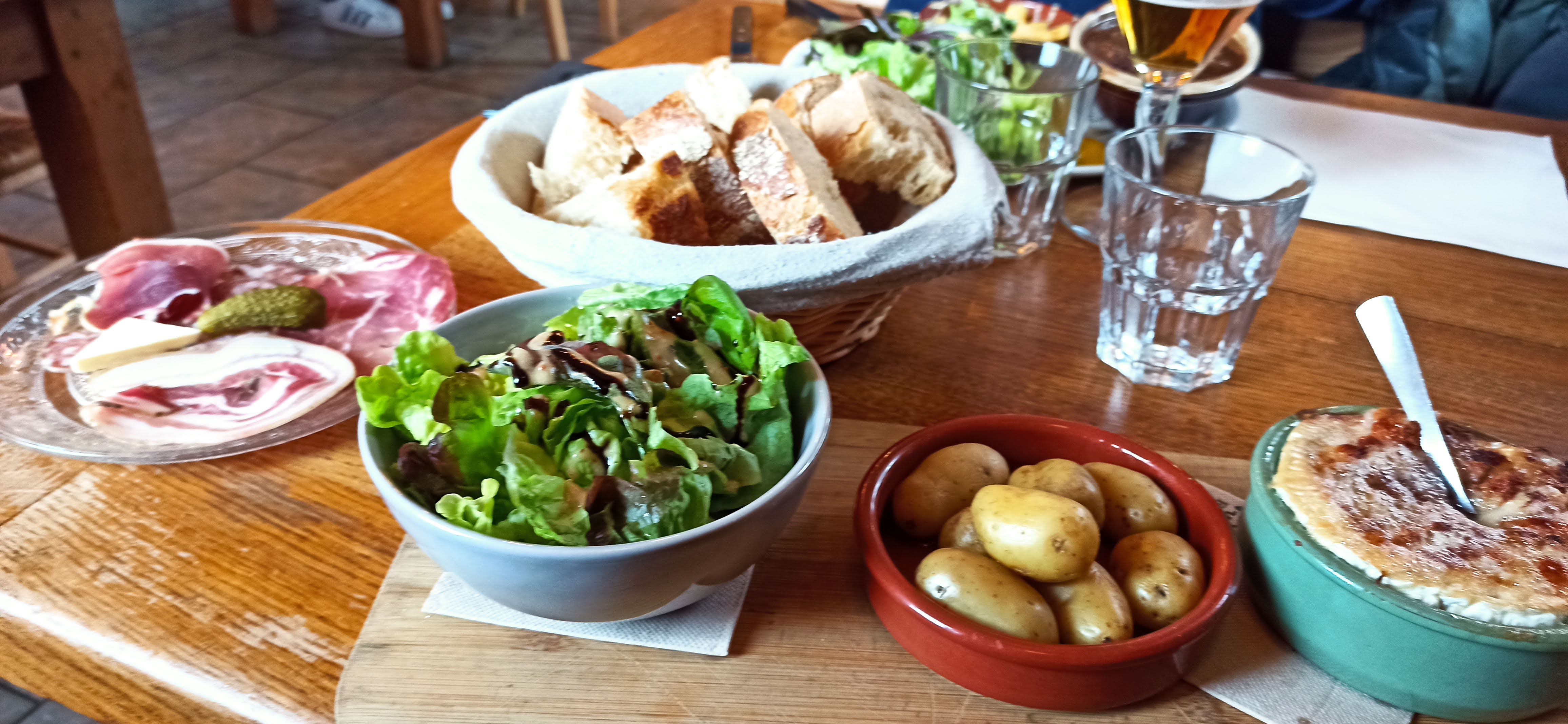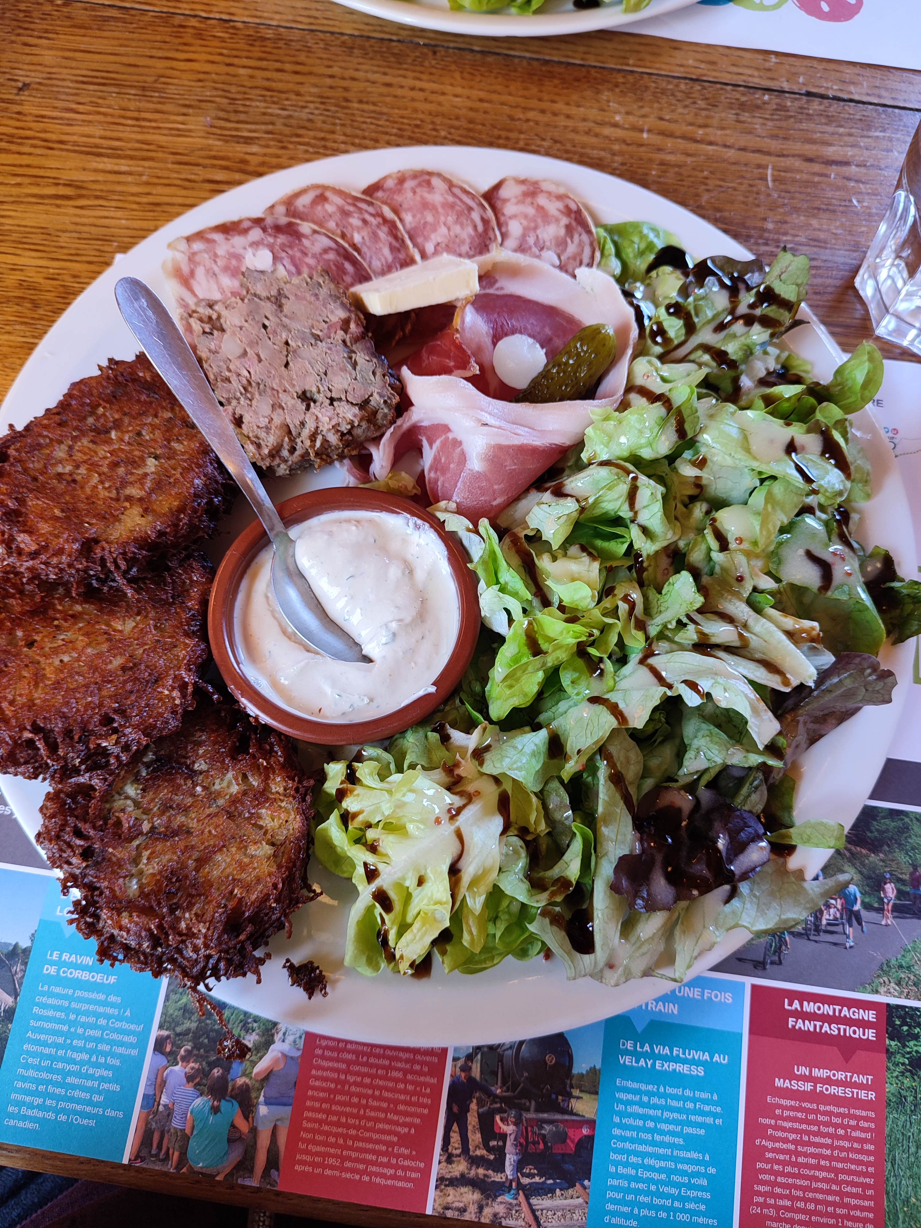 C'était un dimanche midi de début septembre, nous avons apprécié de manger dans la mezzanine, car il faisait froid dehors. 3 où 4 assiettes différentes sont proposés, point commun c'est les râpées . Avec variante charcuterie, où poulet curry, où je ne sais plus... Avec salade verte. Tarif autour de 15€, bien correct.