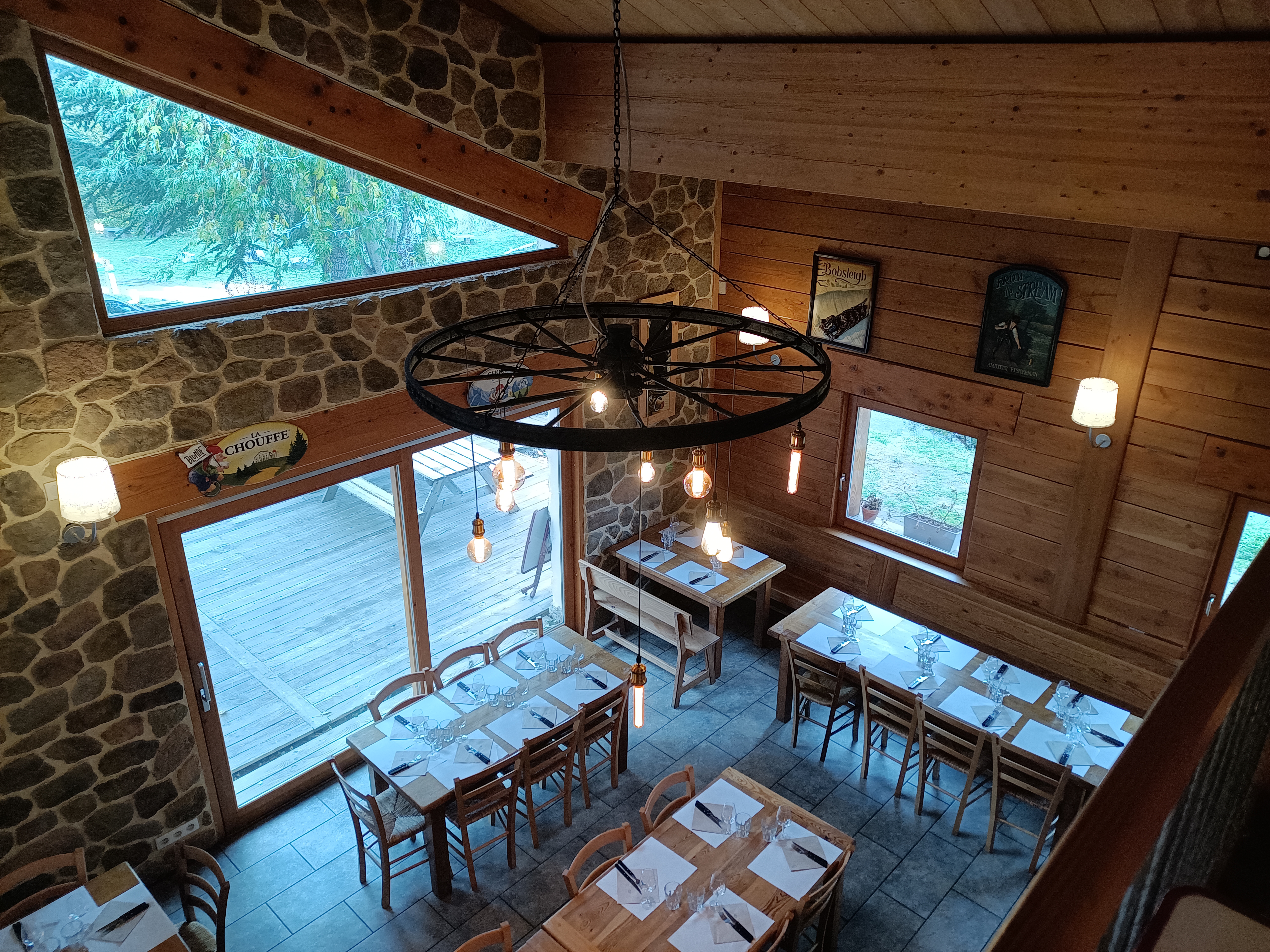 L' alliance du bois et de la pierre apporte une ambiance chaleureuse. Repas délicieux, produits de qualité et regionaux. 100% fait maison. Personnels très agréable, service rapide. Au top !