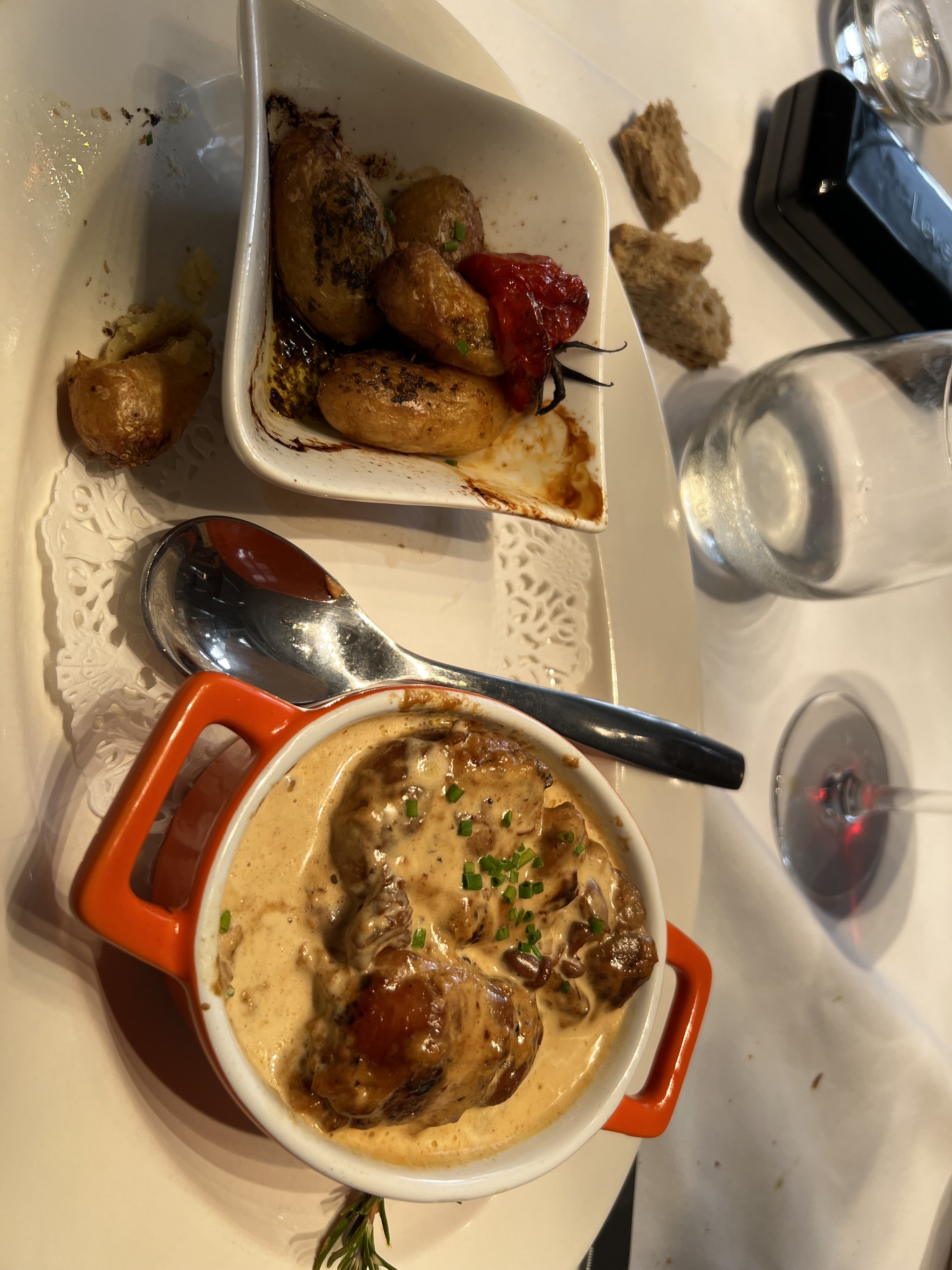 Accueil chaleureux on sent la convivialité dans un décor très étudié. Cuisine appliquée aux saveurs de produits finement sélectionnés pour preuve ce riz de veau aux morilles. Sublime !! Vin approprié au choix des plats. Félicitations que du bonheur ! !