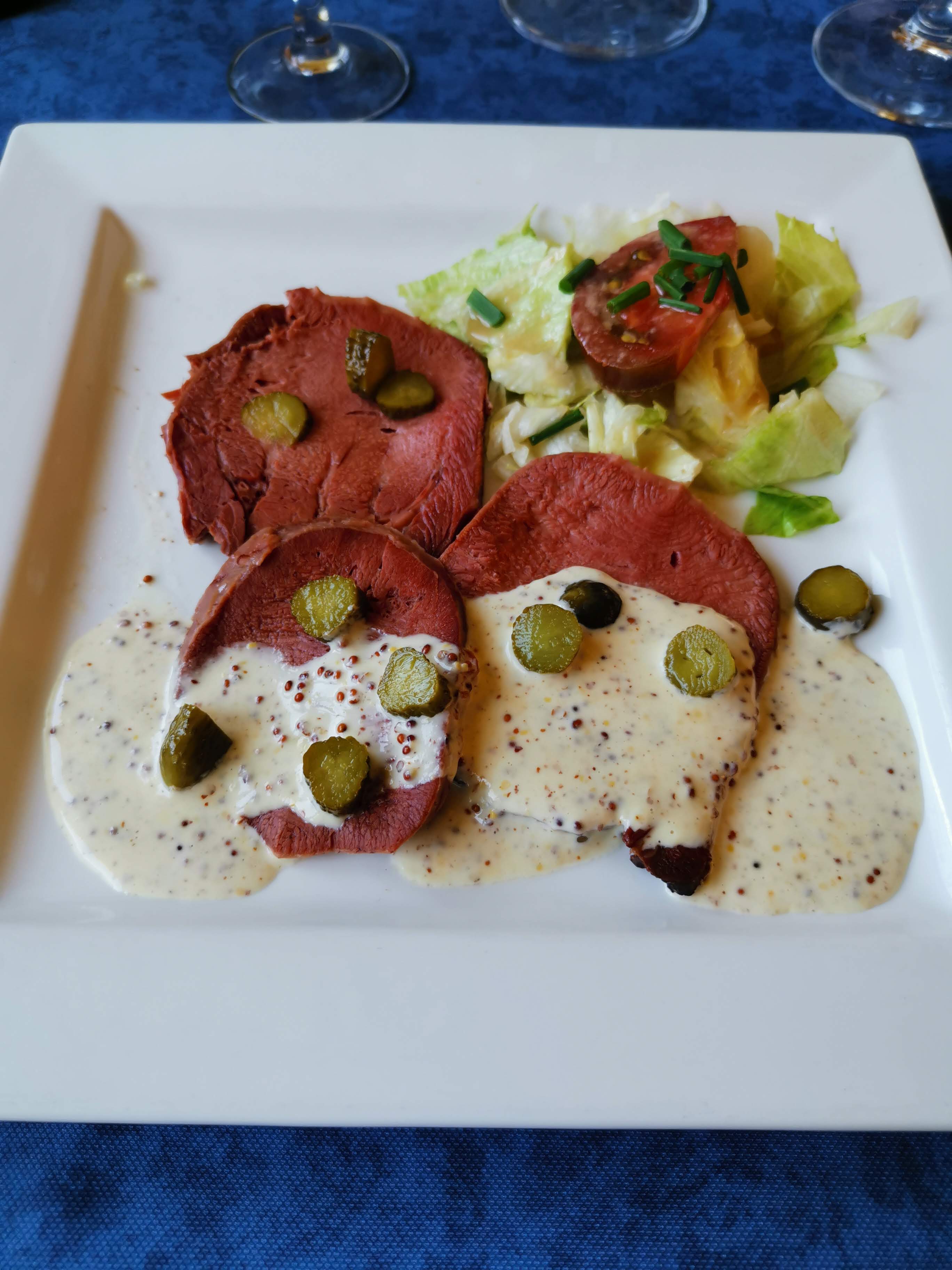 Incontournable pour manger de bons plats franc-comtois. Le cadre est agréable face au lac avec la roue du moulin visible a travers un plancher en verre. Prix du menu entre 27 et 34€. Abordable au regard de la qualité des produits locaux. Plats . Entrée. Langue de boeuf à laoutarde ancienne et cornichon, plat Saussice de Morteau et cassolette de cancoillotte..