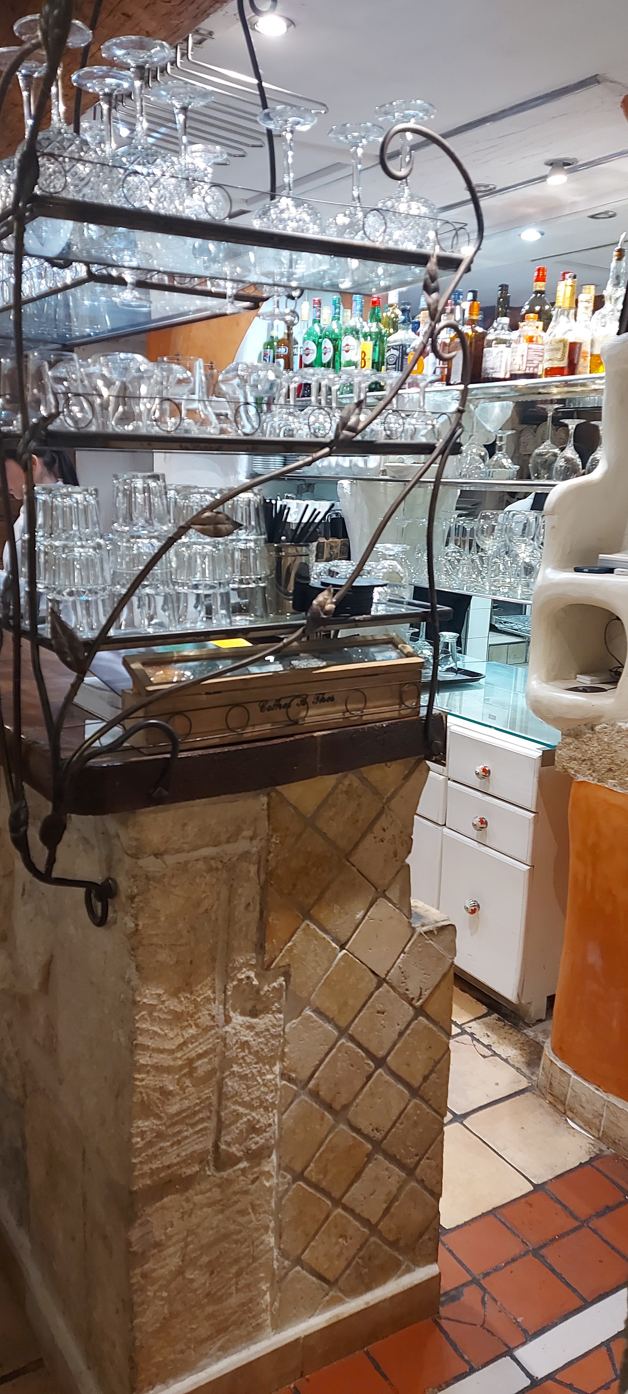 Ont était 4 personnes ont a commandé 1 bouteille de vaqueras 1 entrecôte 1 bar 1 riz de veau et 1 rossini 2 desserts 4 cafés 200 et quelques euros à 4 c'est très cher surtout quand on mange une entrecôte et 1 poisson 50 euros tête sans apero je suis très déçu. ...et je n'y retournerai plus