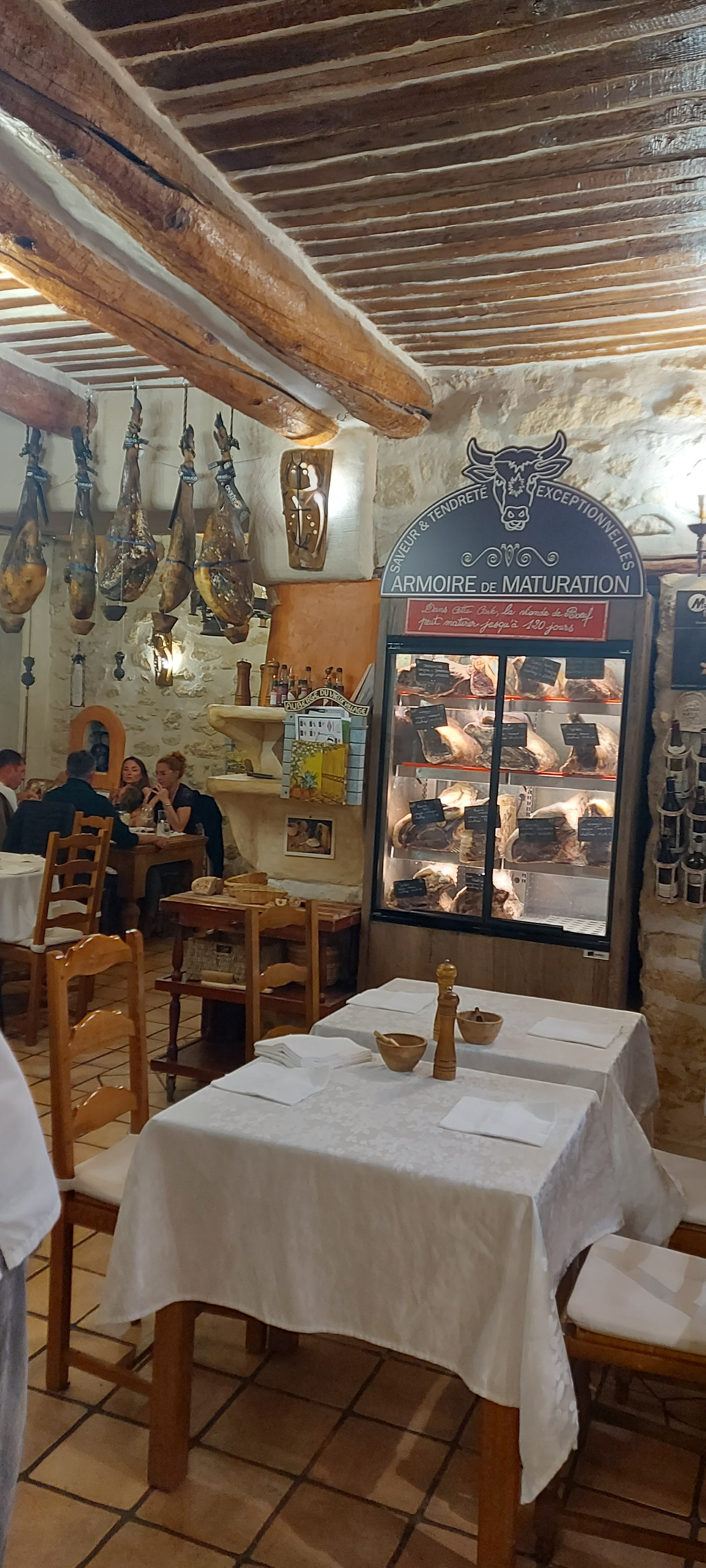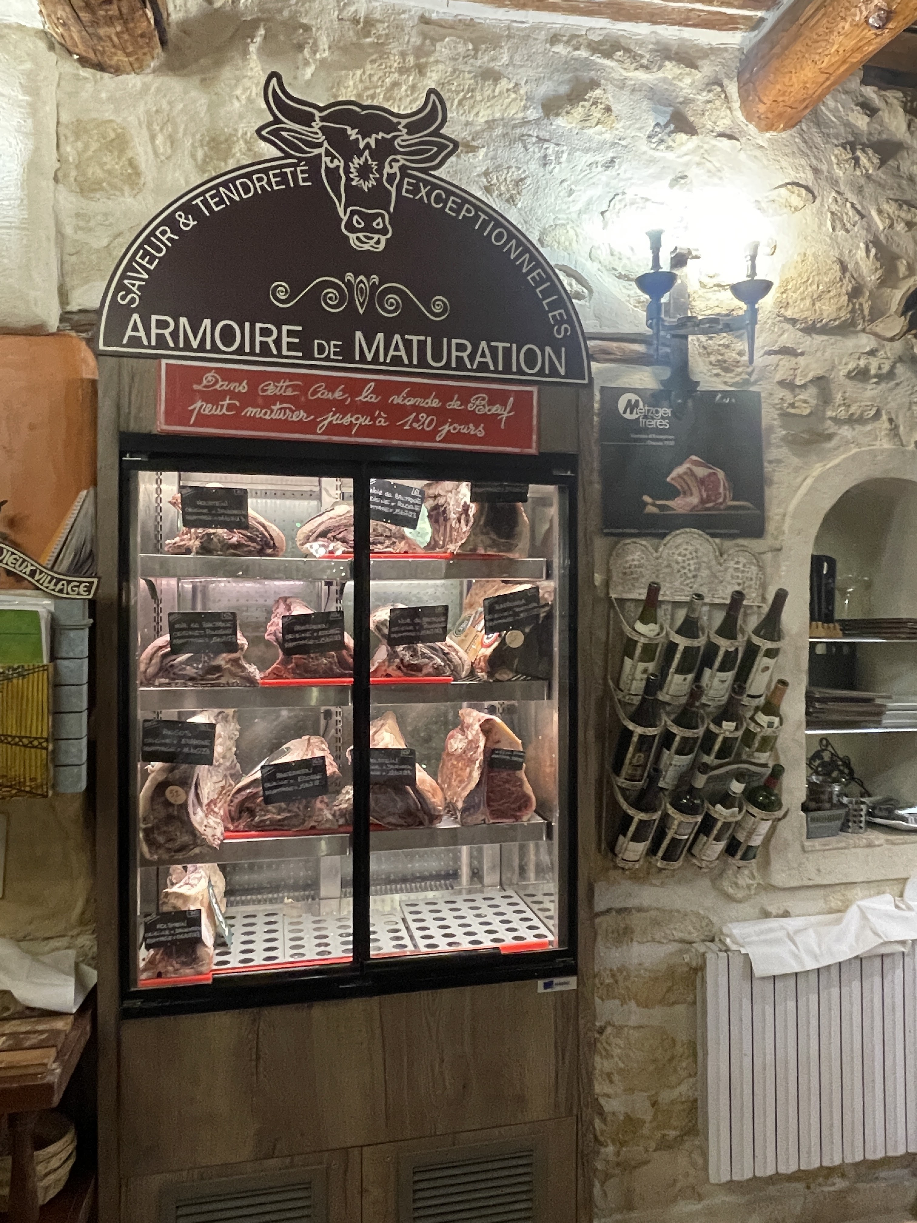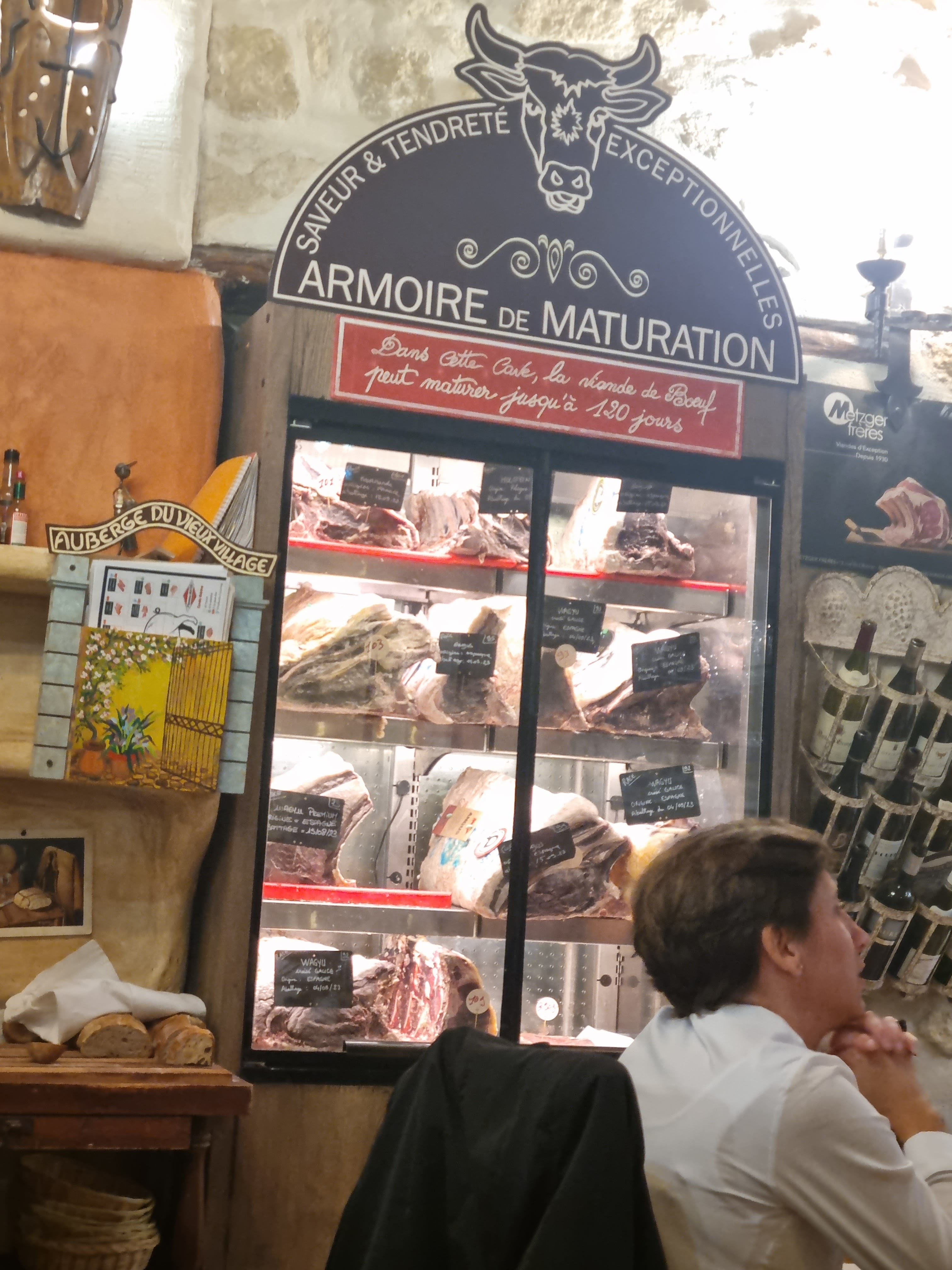 Perdu au milieu d'une rue étroite de ce petit village provençale, seul les initiés connaissent l'adresse. L'auberge du vieux village de Mallemort (13) est une ancienne bâtisse aux pierres apparentes et aux murs vieux de plusieurs siècles. Dès l'entrée, on ne peut se tromper, les amoureux de la viandes maturés, sont au bon endroit. Une carte simple et variées ( il y a aussi du poisson 🐟), aux dressages raffinées, les saveurs sont aux rendez-vous. C'était notre 1ère fois dans la dégustation de viandes maturés. Nous avons été très bien conseillé, et par le choix de la maturation (50 jours) et par le choix du vin qui l'accompagner. Une viande grillées aux bois de bois, dans la cheminée qui se trouve en salle. Nous étions 4 personnes et nous avons passé un très agréable moment gustative. Je ne pourrai recommander grandement pour les connaisseurs, ainsi que les amateurs de viandes. ⭐️⭐️⭐️