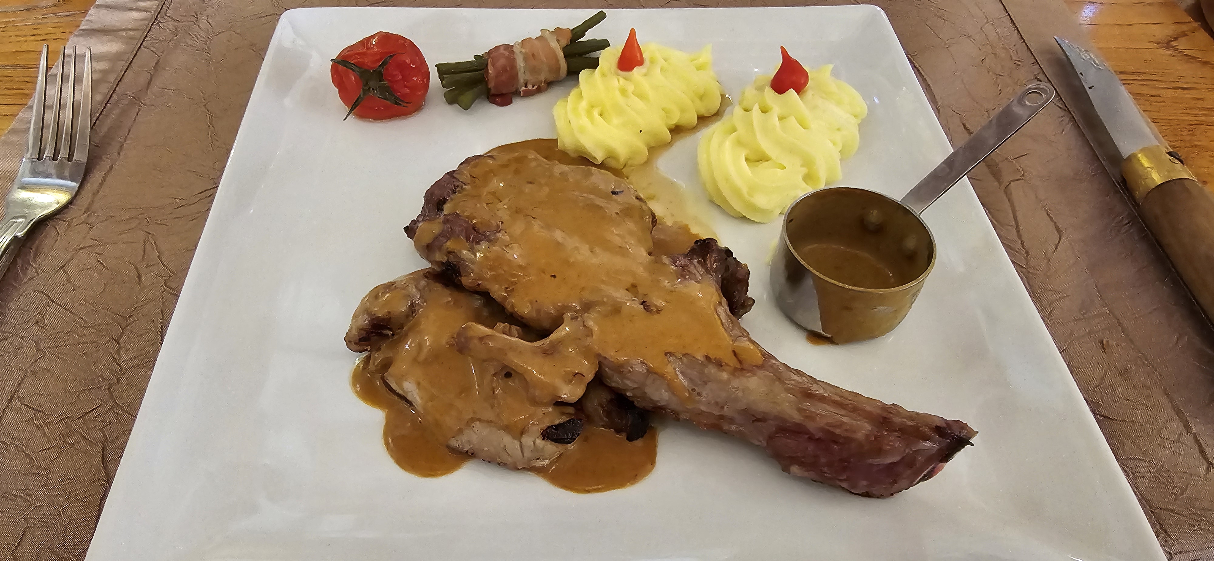 magnifique, un plaisir pour les yeux et les papilles. Le service est parfait convivial et le chef sert lui même la cote de bœuf avec sa petite touche perso.