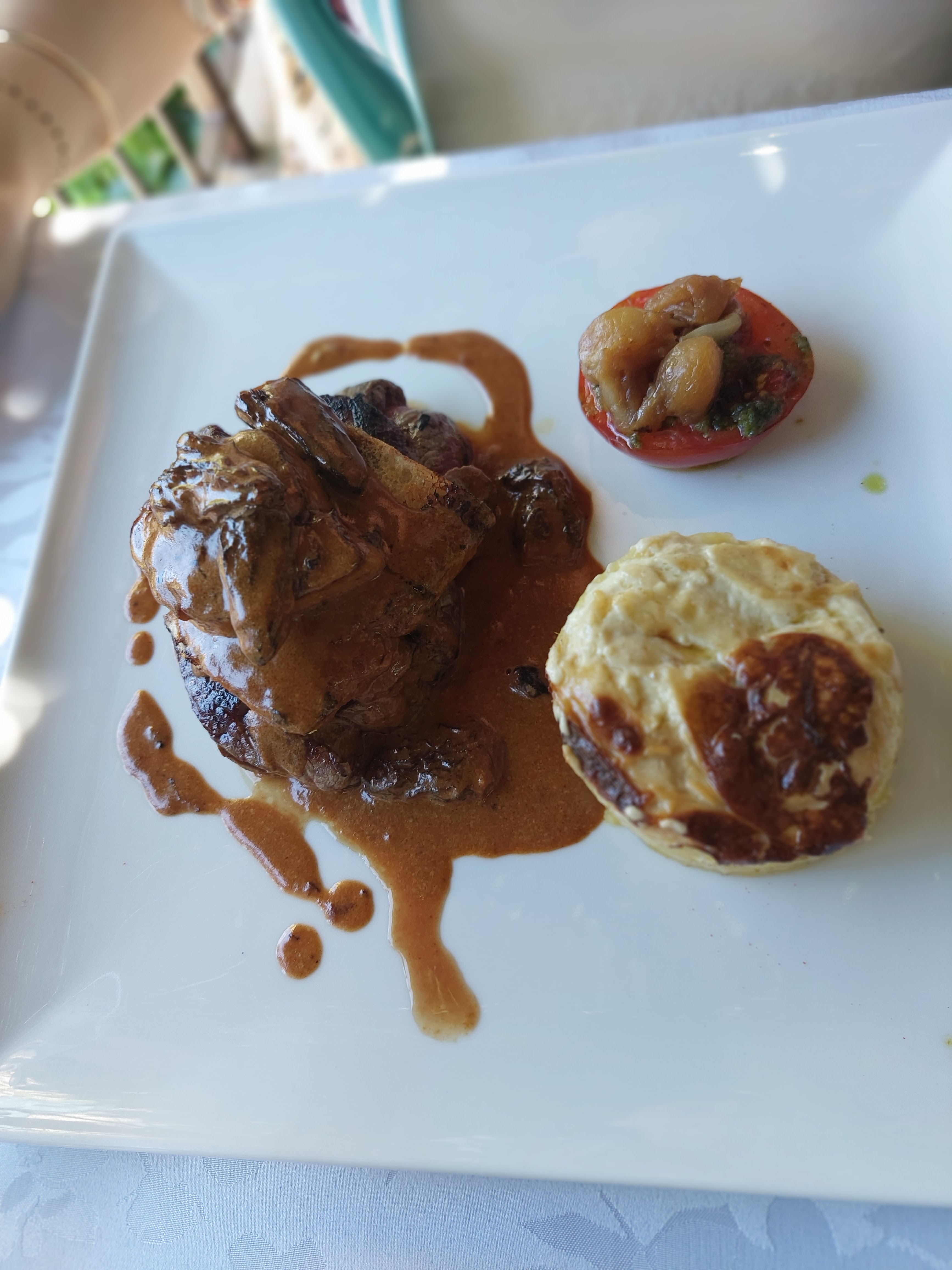 Excellent dîner une fois de plus sur la terrasse du haut. Excellentes pièces de boeuf maturées et délicieux ragoût de ris de veau pour un prix raisonnable. Très bonne tarte au citron.