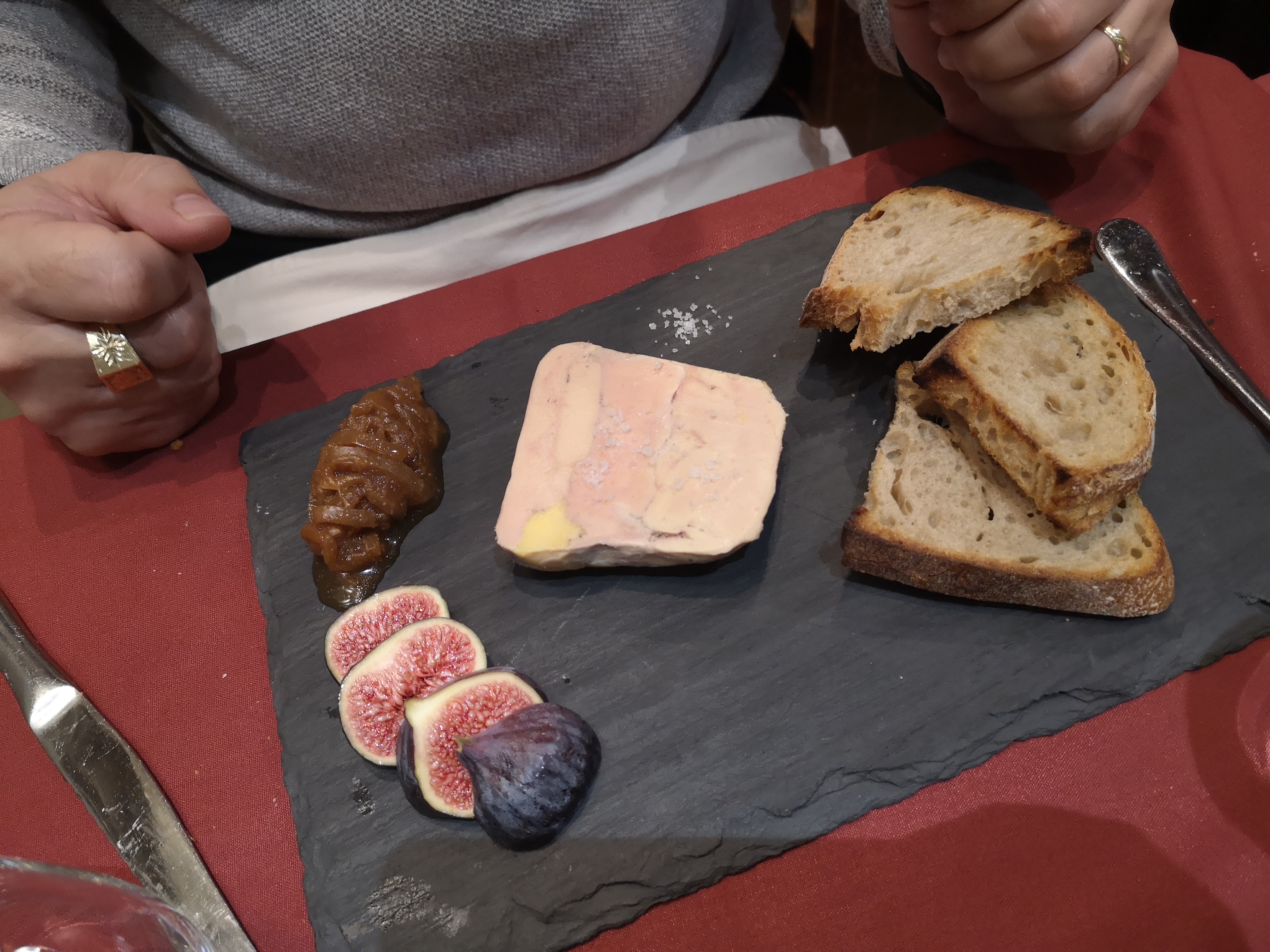 Nous avions une chambre haute calme, parfaite pour discuter. La terrine de canard était un excellent apéritif, ainsi que le pain frais et chaud. Nous avons pris le menu à prix fixe avec une entrée, un plat principal et un dessert. Dans l'ensemble, un dîner et une conversation très agréables.