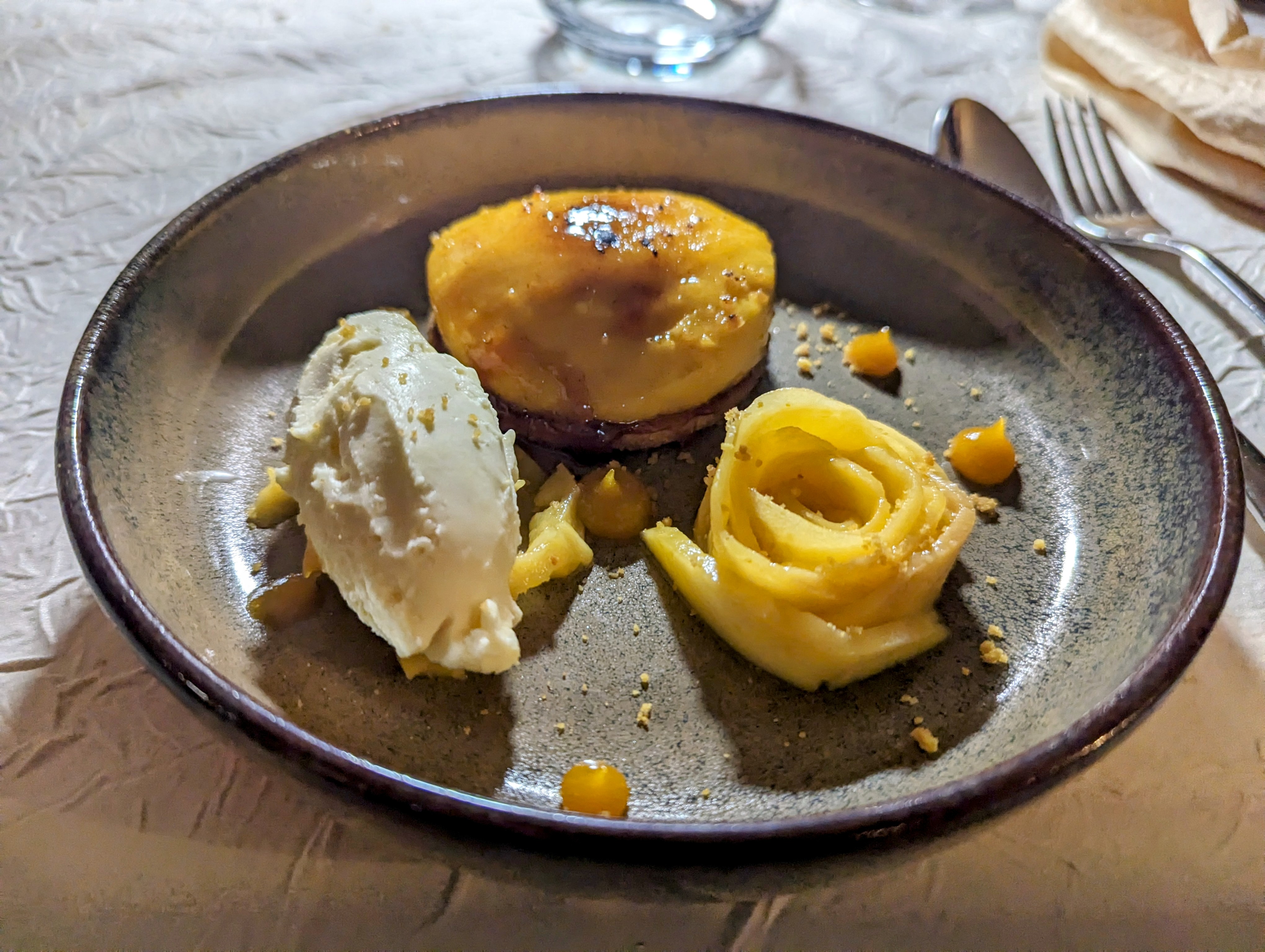 Tomber par hasard sur ce restaurant Vers 14h30, très bien accueilli, une terrasse immense bien ombragée, nous étions tellement bien que j'ai oublié de faire les photos de nos plats, côte d'agneau cuisson parfaite purée de courgettes jaune avec des pignons de pain et parmesan excellent et pour finir abricot rôti au miel avec sorbet à la pêche un délice, service au petit soin avec des serveur vraiment sympa, le tout petit hic c'est les 4 € de supplément pour mon plat et mon dessert, alors que j'ai mangé à la carte, la prochaine fois que nous irons, on demandera pourquoi, ha oui c'est sur nous y retournerons et cette fois ci, on restera le week-end