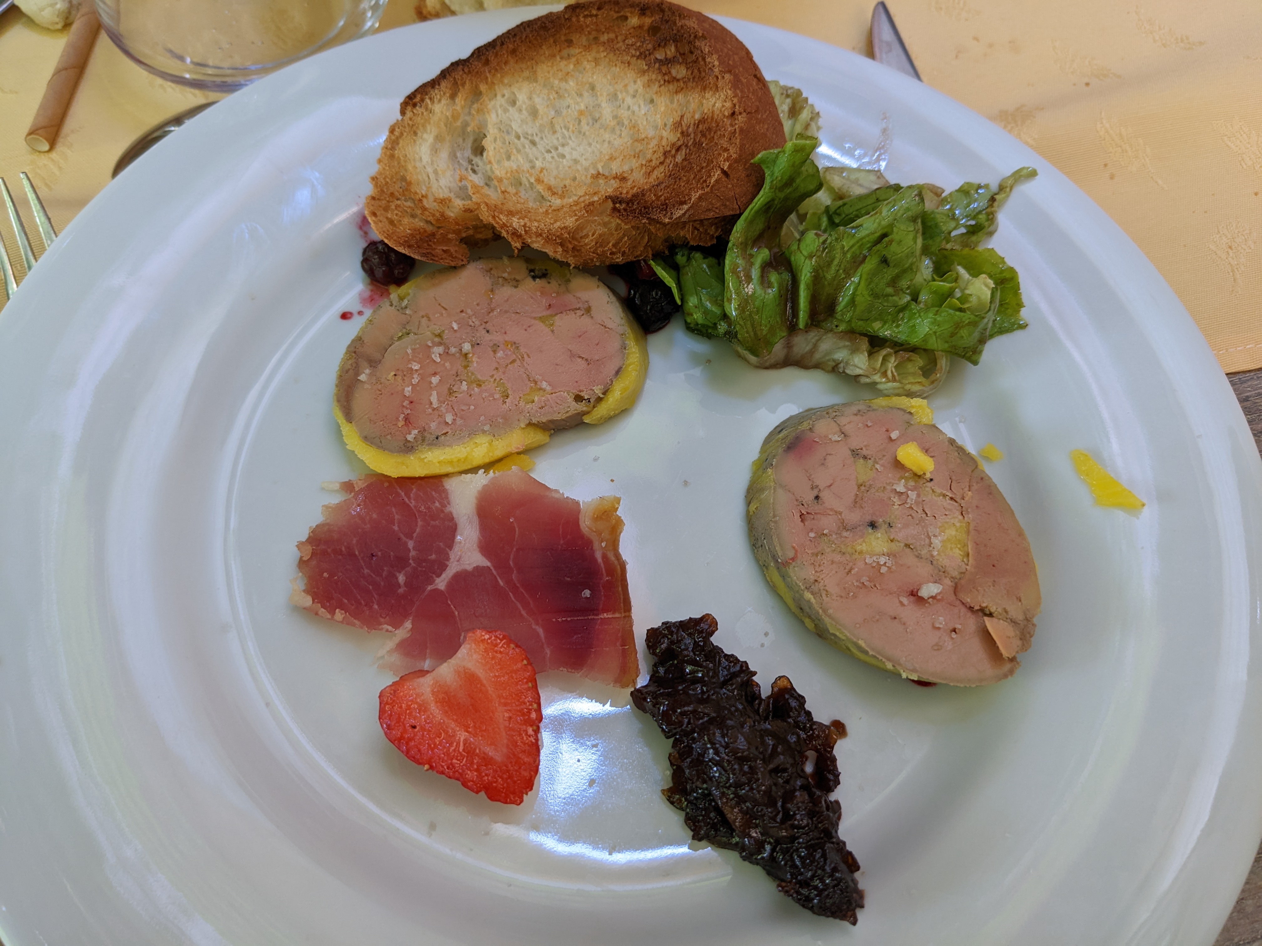 Bien qu arrivés après 13h30 et sans réservation un dimanche, nous avons été aimablement reçus et acceptés, de plus leur menu tout à fait abordable nous propose une assiette garnie foie gras magret séché un délice. On y reviendra