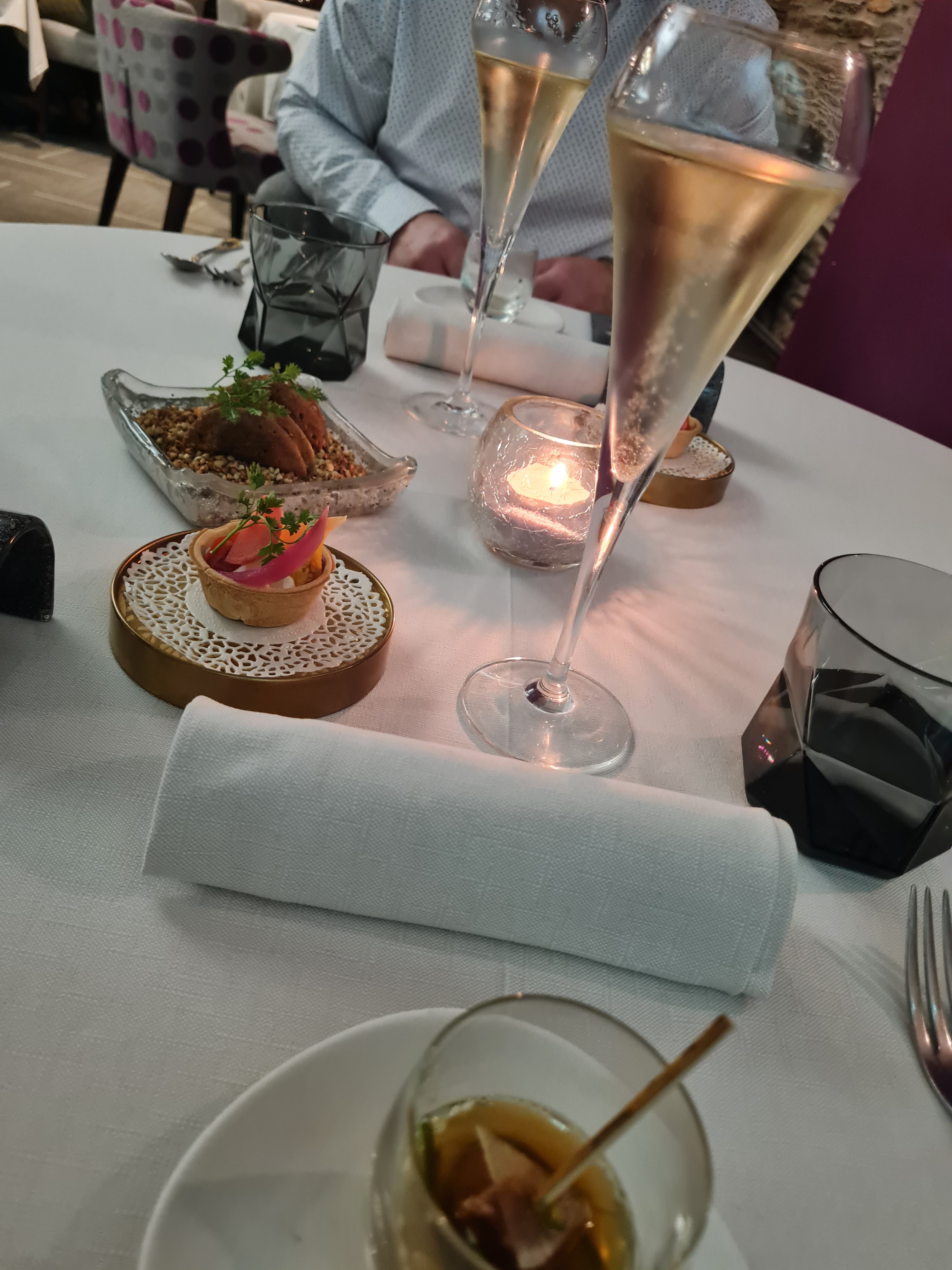 Dîner parfait , dès l'accueil tout est très bien , le service impeccable ,en partant des amuses bouche au dessert pas une fausse note ,accord des saveurs et assaisonnement juste , présentation élégante.