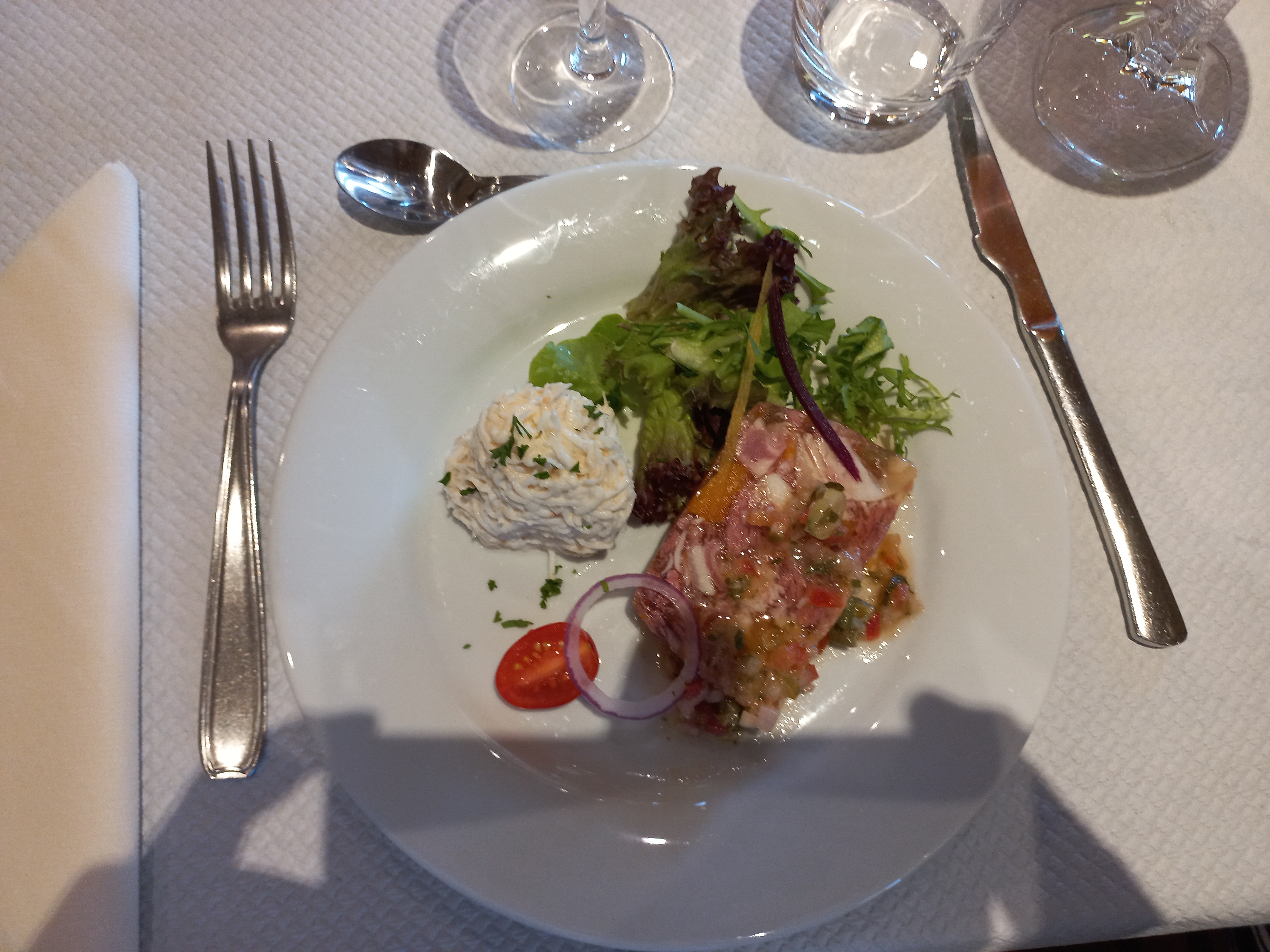 Nous avons uniquement mangé au restaurant avec encore le système restauration classique sur carte. Plat du jour très correct avec une belle présentation et les bouchées à la reine bonnes et copieuses.