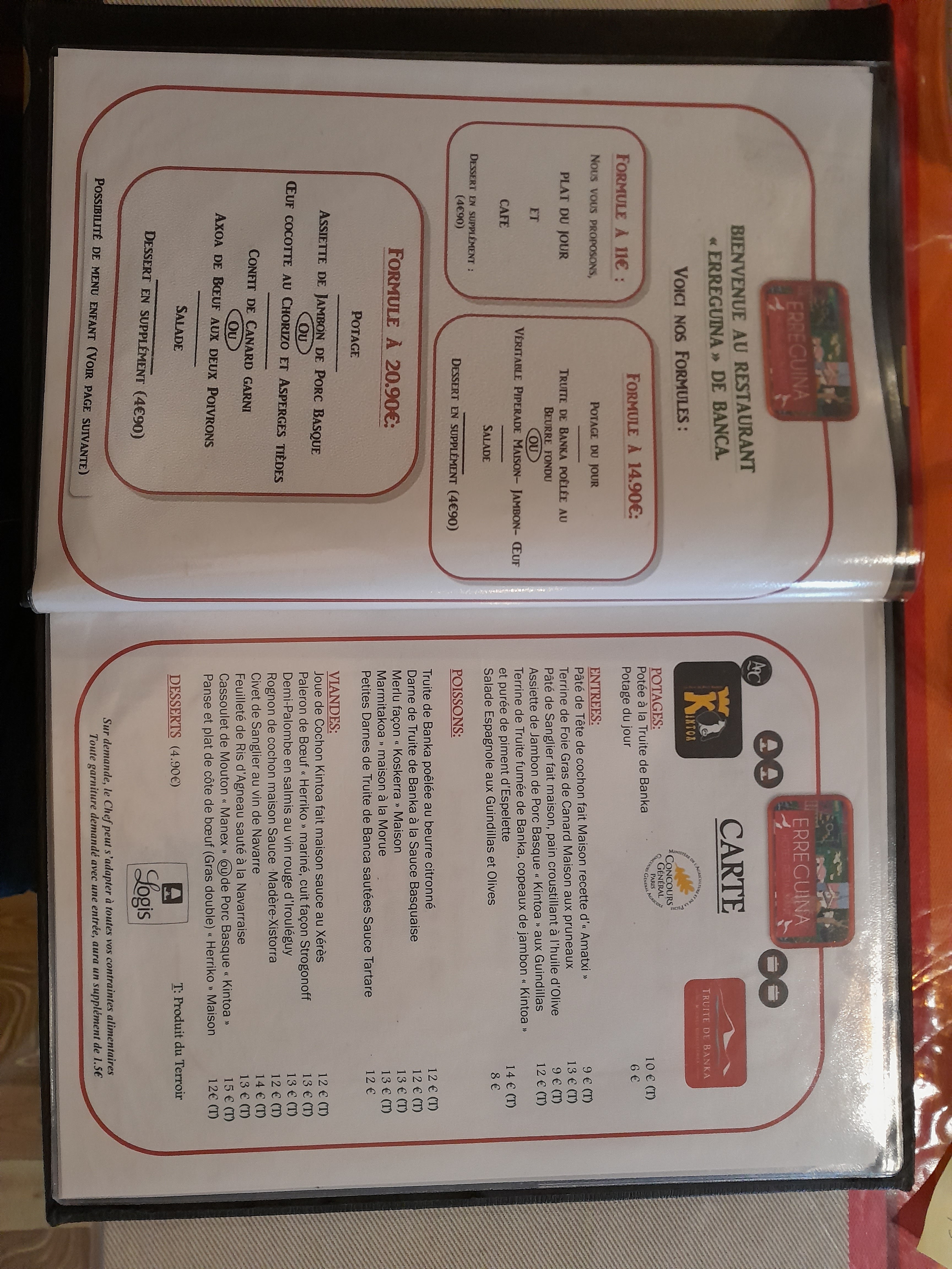 Située dans un très bel endroit, l'auberge Erreguina propose une cuisine rustique et savoureuse qui fait la part belle aux produits de la vallée des Aldudes, en particulier la truite de Banca et le porc Kintoa. Mais, par-dessus tout, il y a l'accueil , cordial et chaleureux, qui fait que chaque repas là-bas est comme une petite fête.