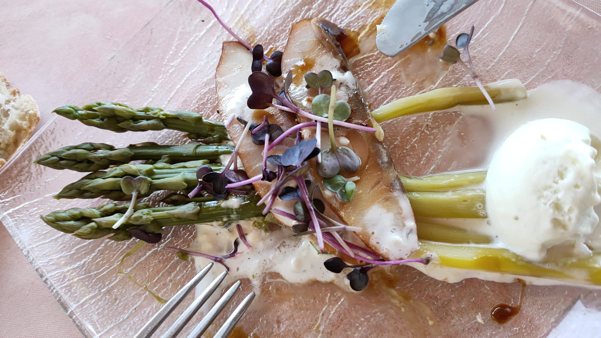 Un lieu très insolite, très savoureux, le patron est aussi serveur, très souriant. Nous avons mangé de l'agneau incroyablement savoureux. je le recommande à tout le monde) Le foie gras est quelque chose d'extraordinaire, et les asperges avec glace au gingembre) je recommande vivement