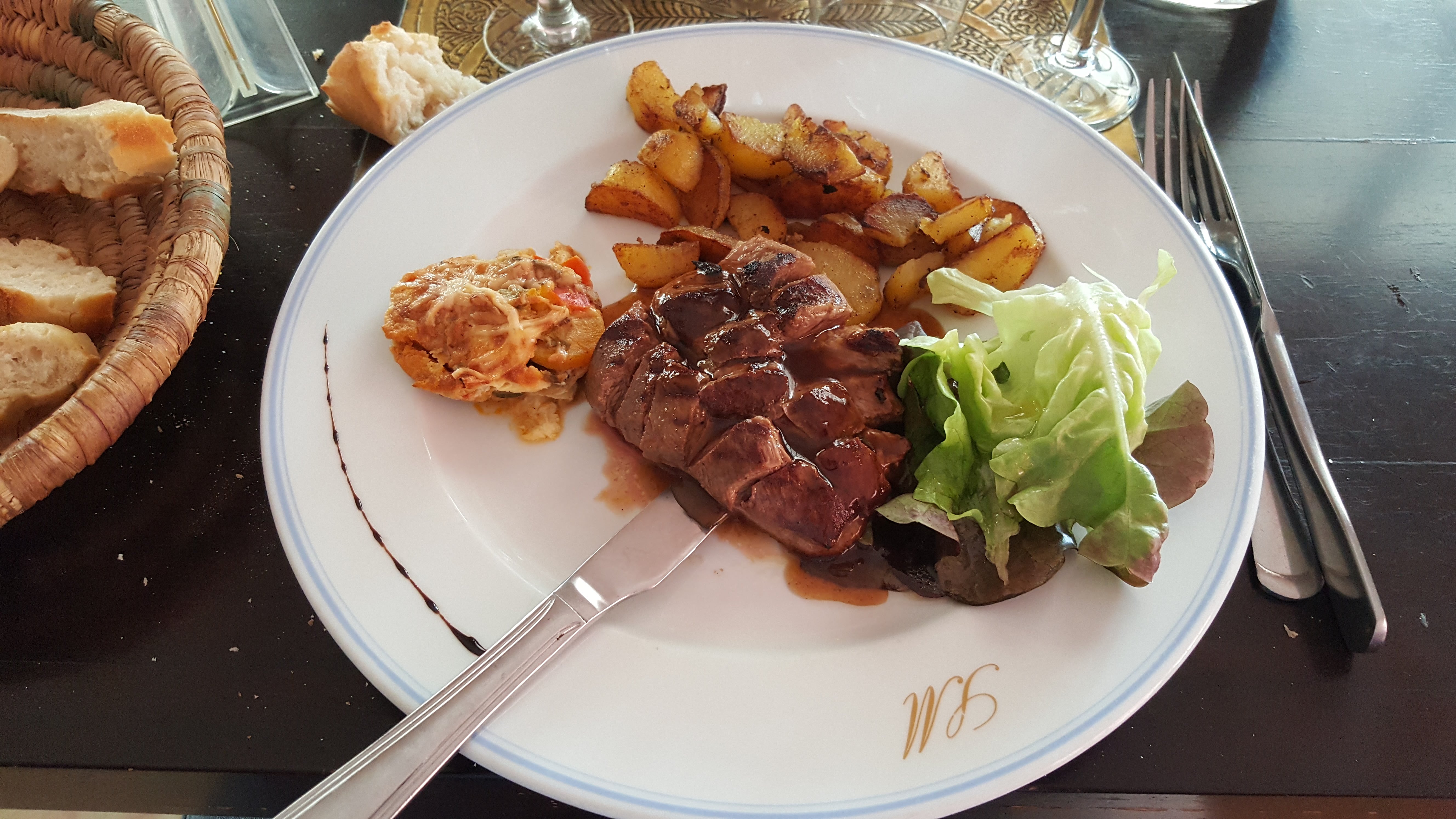 Longue attente entre l'apéritif, le plat principal et le dessert, couvert non adapté au type de viande, fils électriques non protégés et visible.. (pas aux normes de sécurité...) Service très lents (retire les plats en plusieurs fois avec plusieurs minutes entre chaque passage, une seule serveuse avec une salle pleine (dont la véranda). Depuis le changement de propriétaire, l'auberge a perdu du prestige et propose à la place des tajin/couscous, et des hammam/massages sans intimités. (pièces ouvertes).