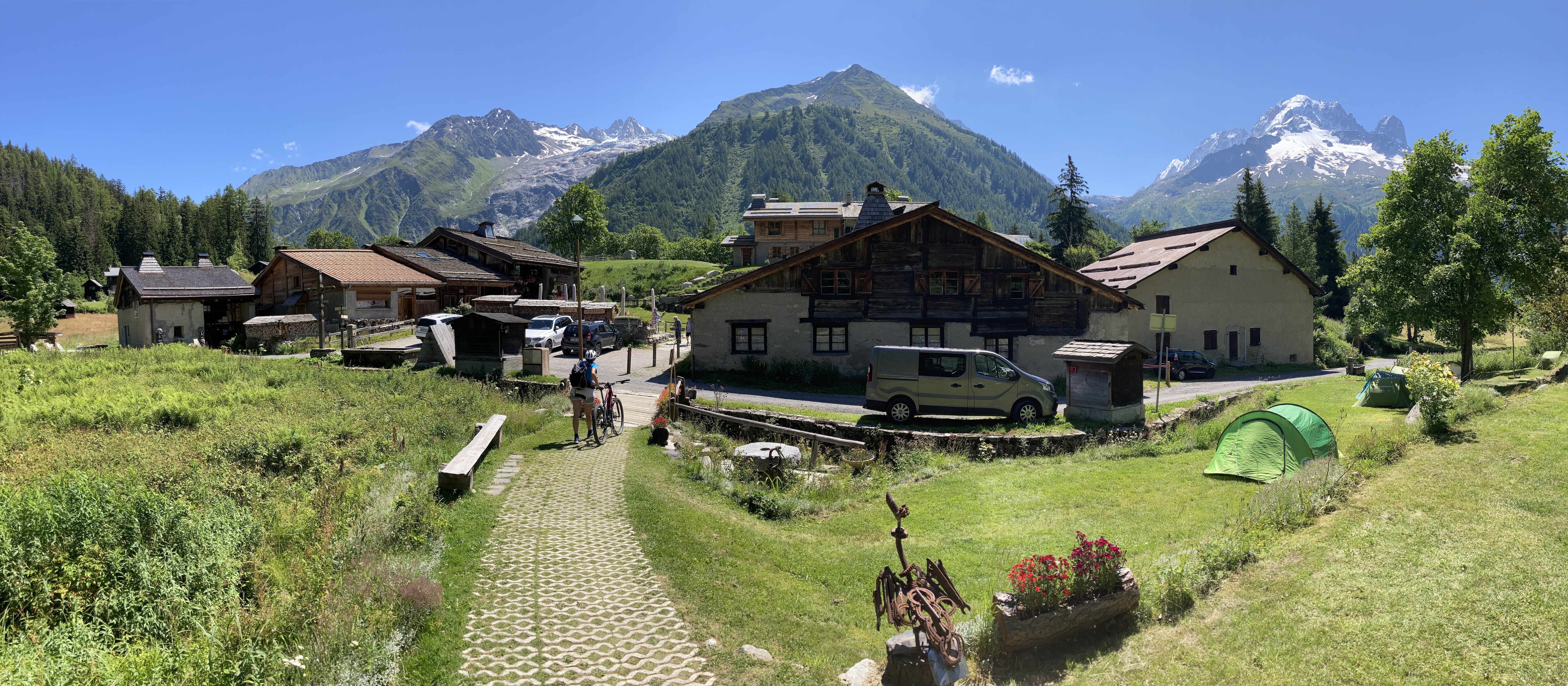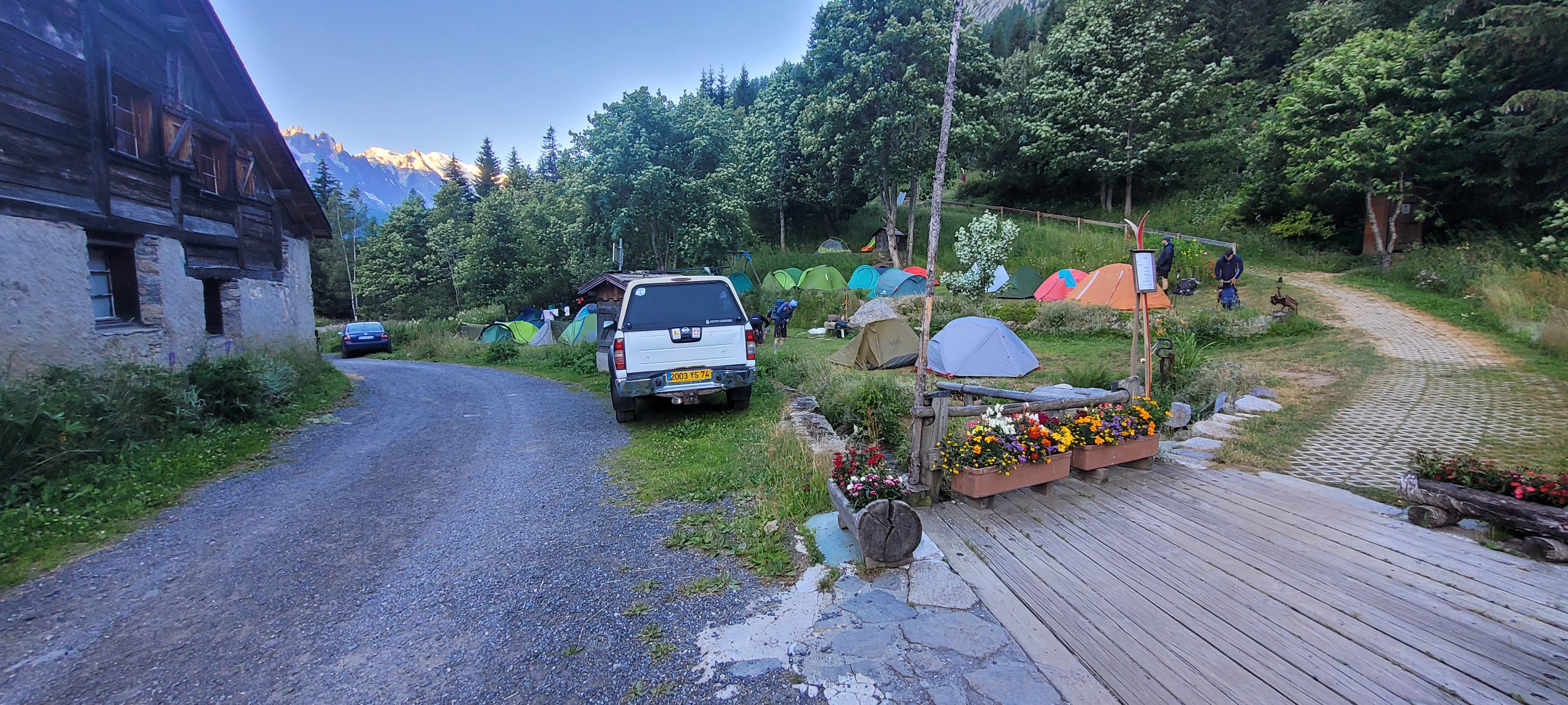 Nous sommes arrivés tard dans la soirée, avons trouvé un bon endroit et sommes finalement restés deux nuits. Le camping est petit mais agréable. Le prix est de 8 EUR par personne. Il y a des douches mais juste un WC, accessible 24h/24. La cuisine était occupée et servait d'excellents plats locaux et de la bière. Bon point de départ pour la randonnée jusqu'à l'Aguillette d'Argentière avec une vue imprenable sur le Mont Blanc.