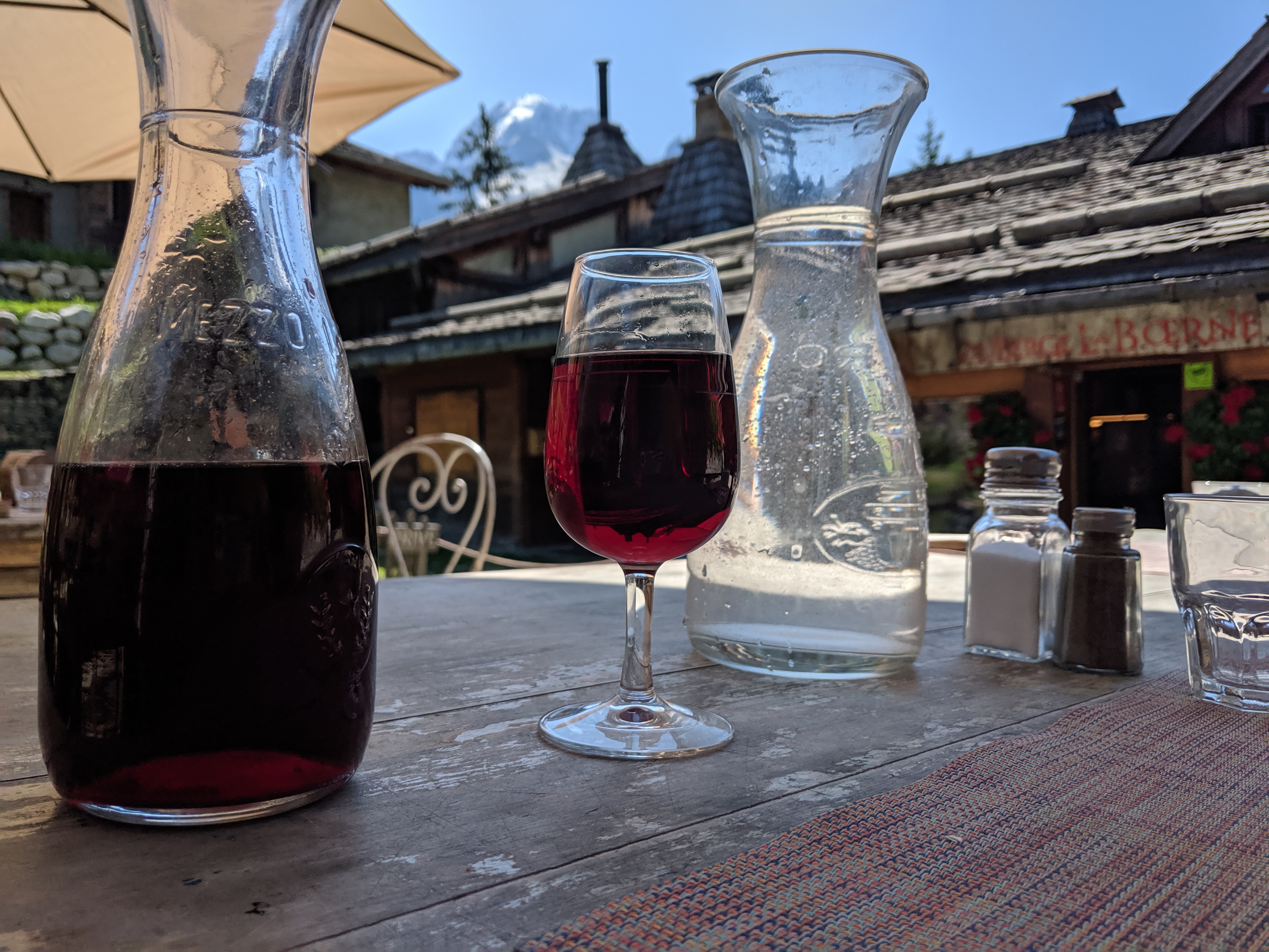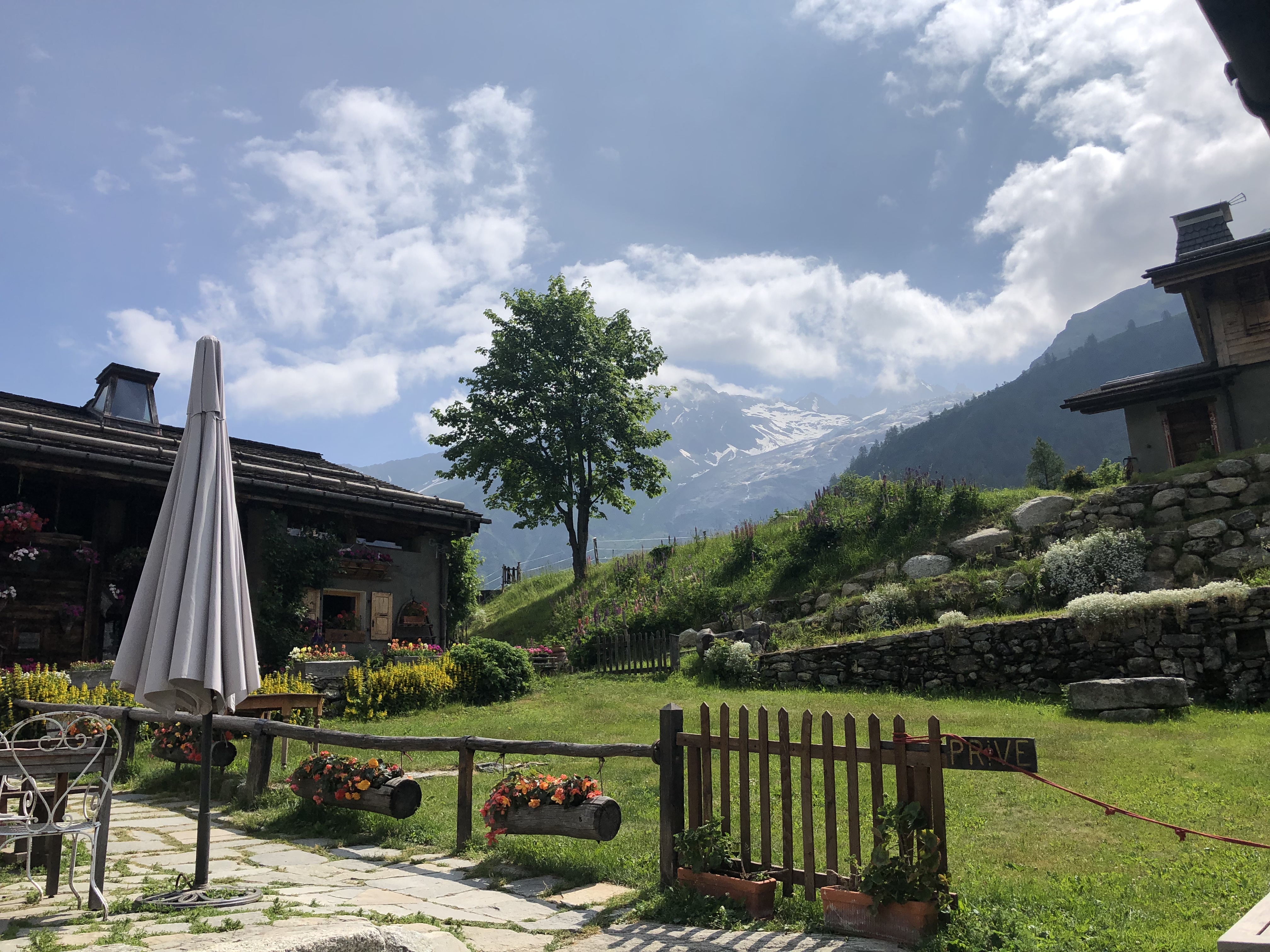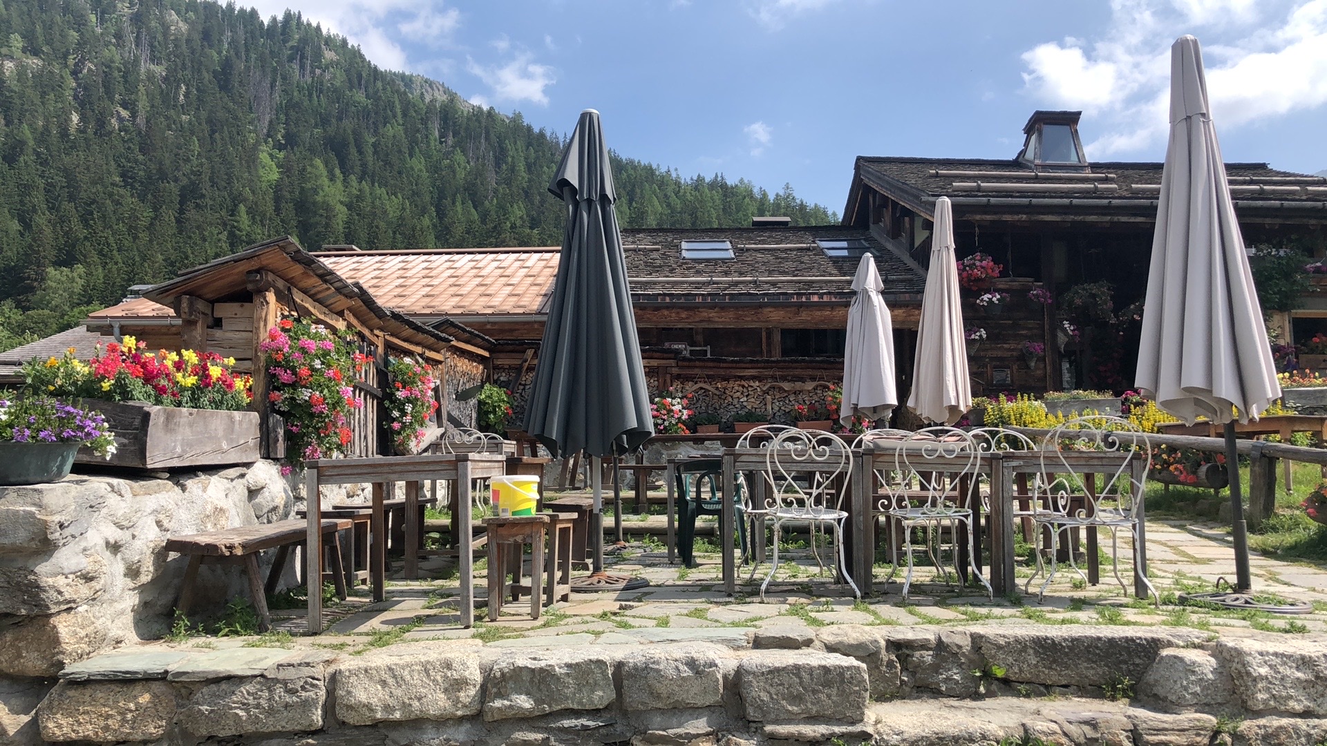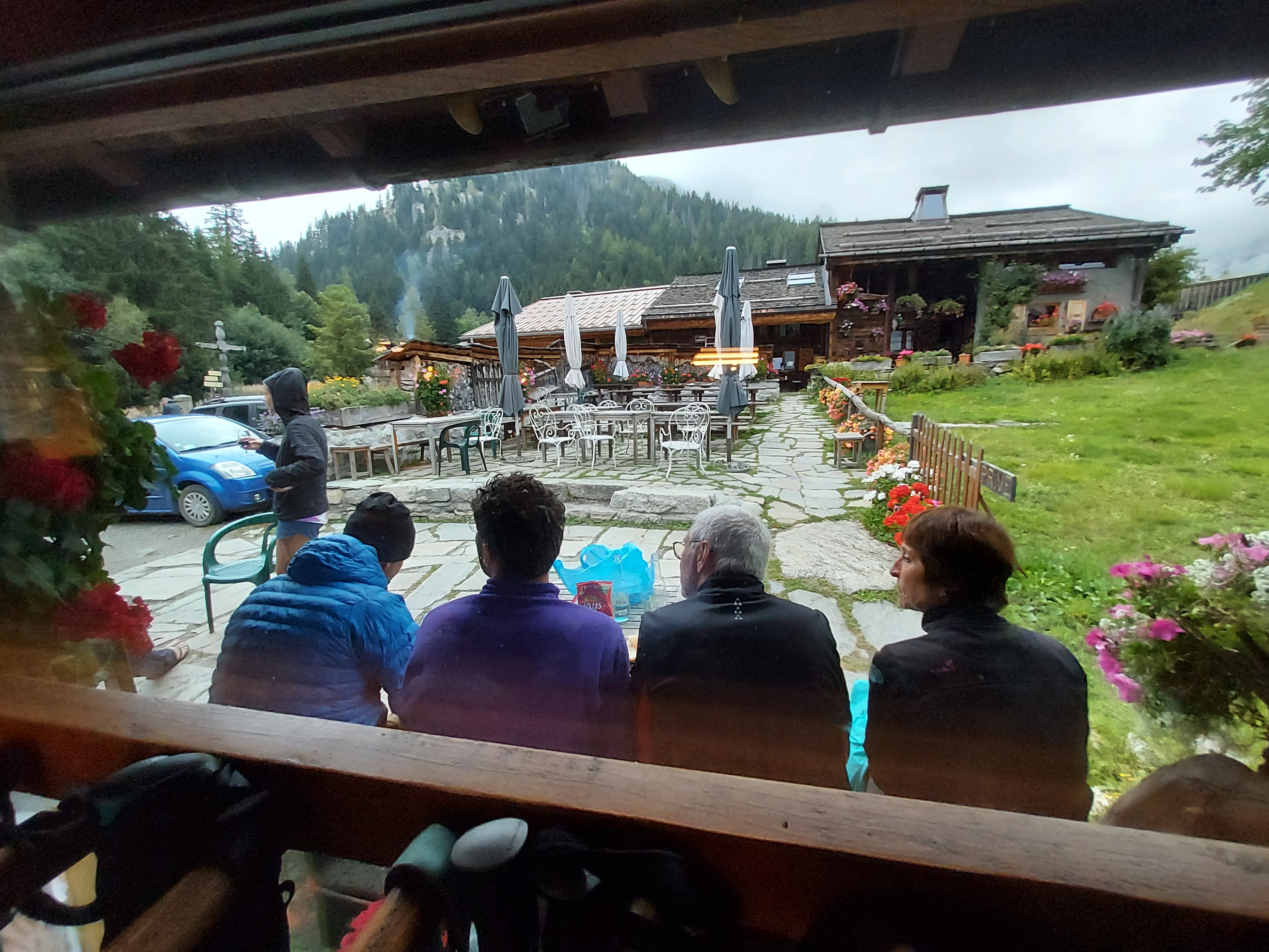 Nous y avons mangé le midi étant sur le trajet du TMB, tartiflette très bonne et terrasse agréable, bien fleurie.
