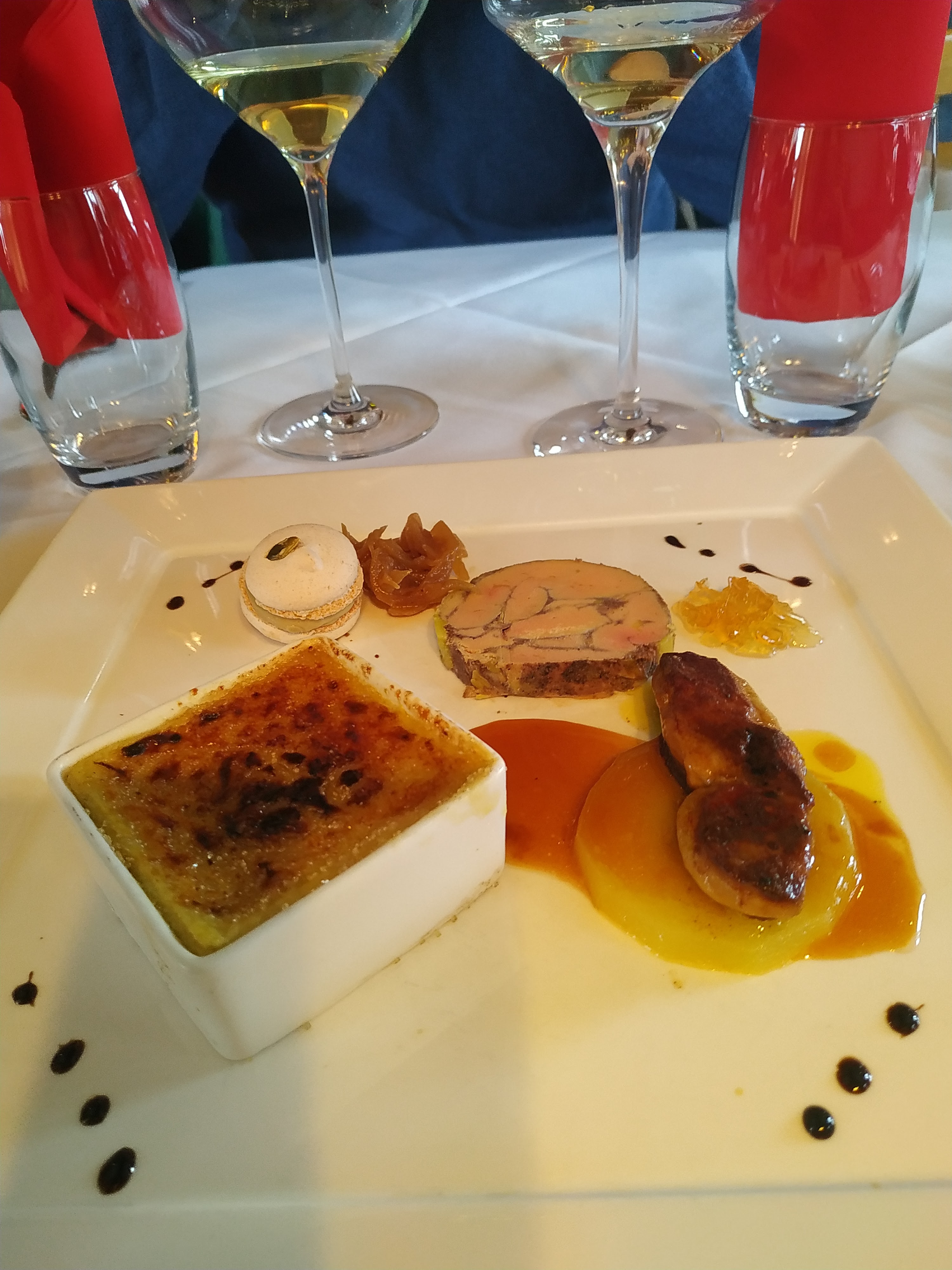 Nous étions quatre là-bas. En entrée il y avait des cuisses de grenouilles et une soupe de homard, vraiment savoureuse. En plat principal nous avons eu le spécial (grill de table) trois fois et le poisson du jour une fois, c'était excellent ! Le dessert était la crème brûlée, le gâteau au chocolat avec un centre liquide et les trois sortes de sorbet, tous incroyablement délicieux. Le service et l'ambiance étaient également fantastiques. Nous reviendrons certainement, surtout l'été pour pouvoir profiter de la belle terrasse.
