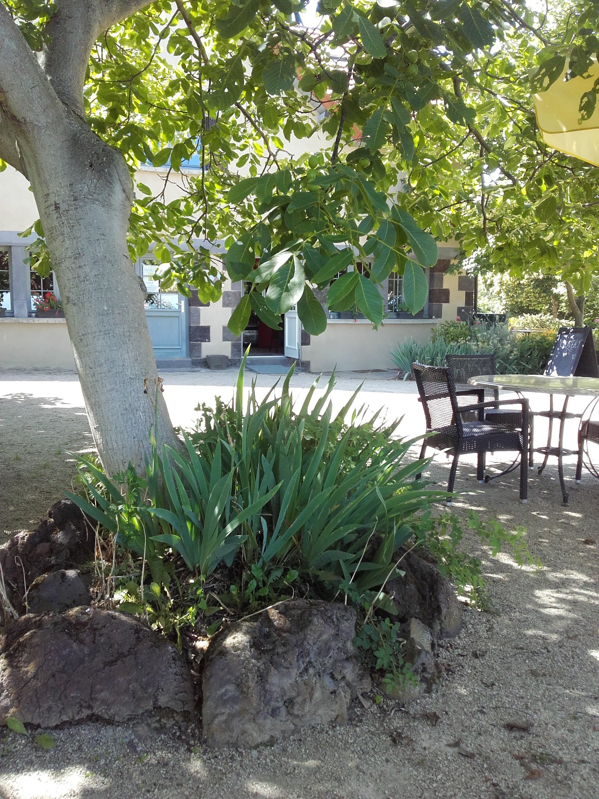 Au pied d'un château moyenâgeux ravissant restaurant sous les arbres avec une vue sur la plaine. Beaux parasols, meubles de jardin sympa, nourriture simple et excellente, petits prix. Pour les vacanciers 2 gîtes impeccables. Situé au départ d'une très belle ballade.