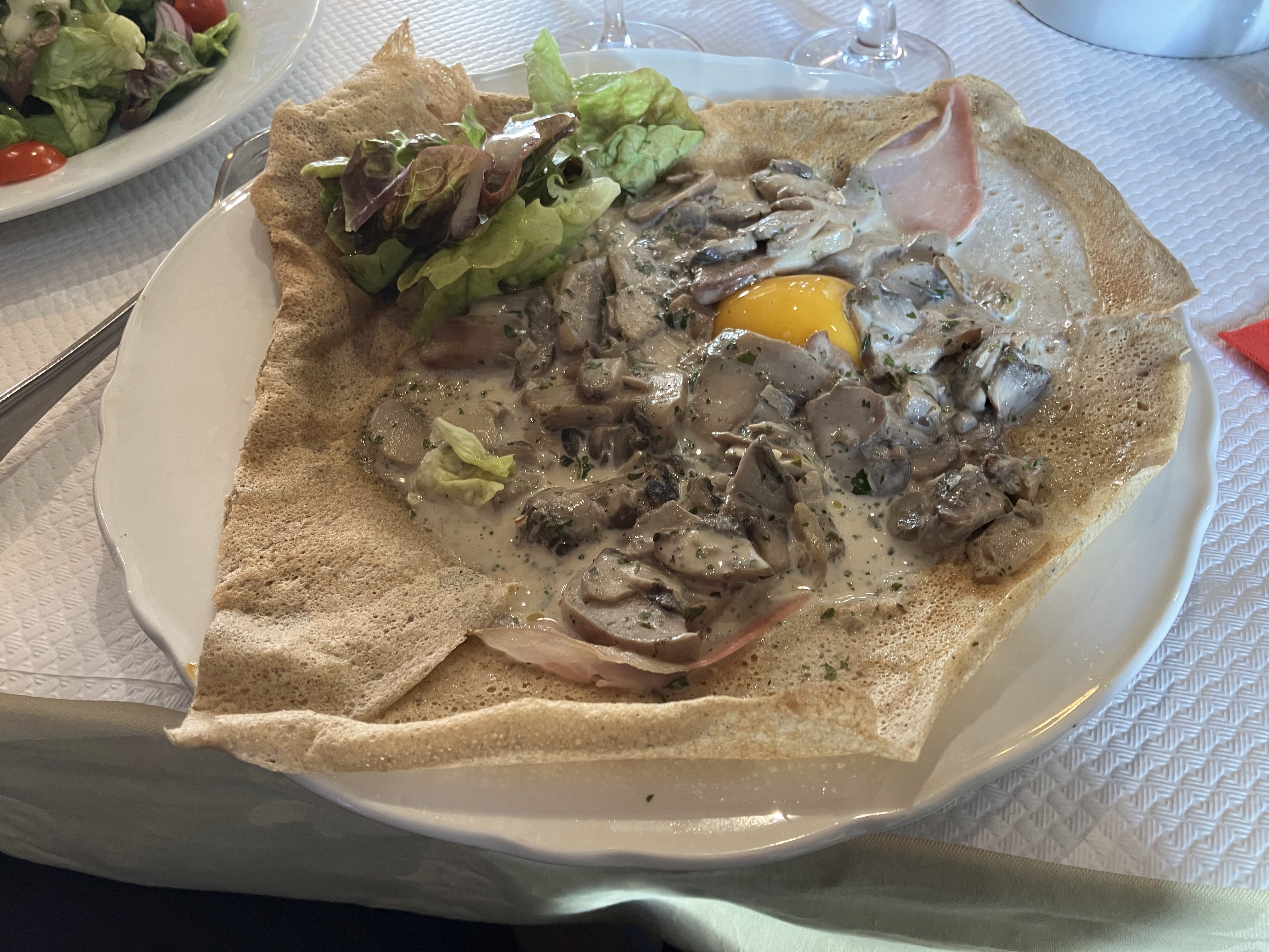 Galette plutôt bonne et les serveuses sont très agréables. Cependant l'assiette de crudités était mauvaise, les carottes râpées jolies d'aspect, avaient un goût de moisi. Le bœuf bourguignon et le gratin dauphinois n'ont rien d'exceptionnel. Pour finir la tarte était plutôt bonne.