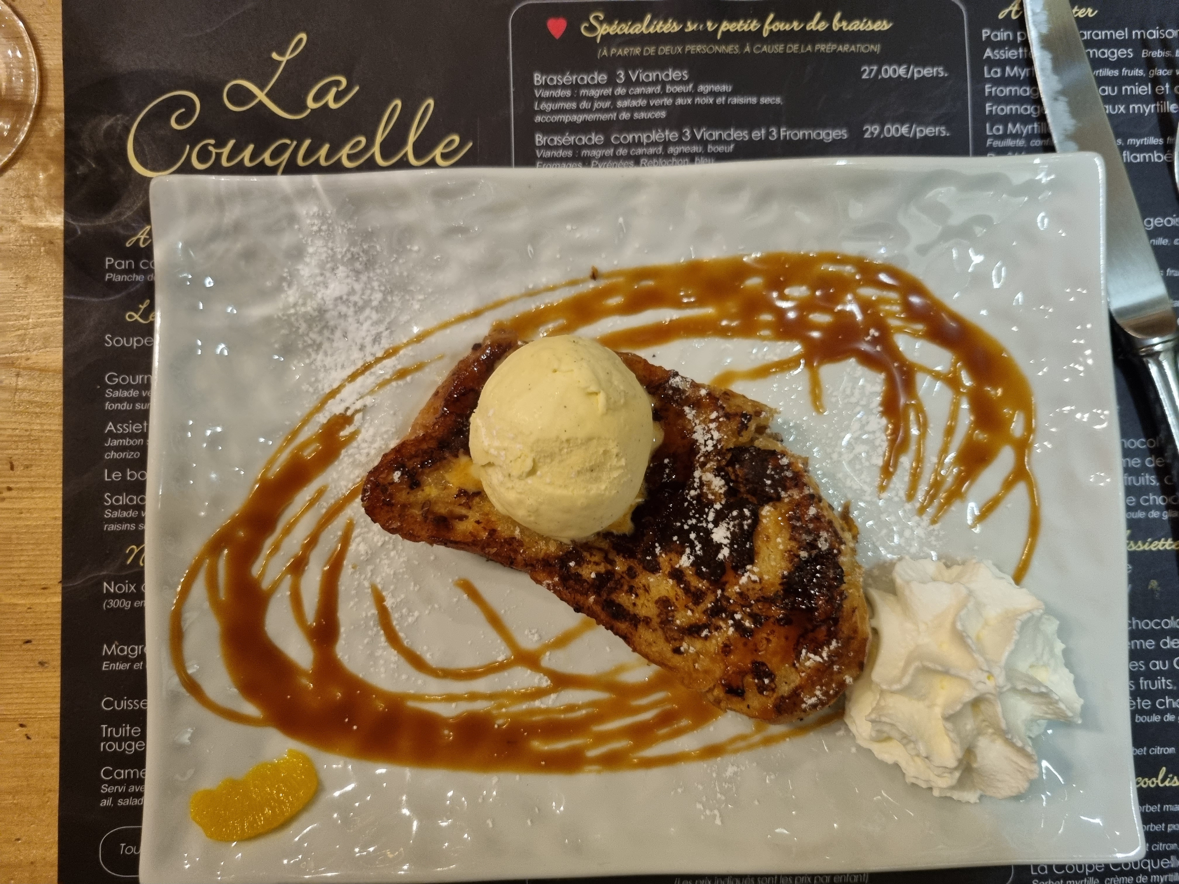 C est toujours un réel plaisir de faire une halte à la Couquelle, un petit restaurant comme on les aime, chaleureux, de délicieux petits plats, de merveilleux desserts, des patrons souriants, un serveur sympathique. Nous avons eu la chance de déjeuner près de la cheminée, la brazérade complète était excellente, pour les enfants pas besoin d écran, il y a de quoi voir partout et de petites fenêtres pour regarder ce qu il se passe à l'extérieur. Bref, n hésitez pas à y faire une halte