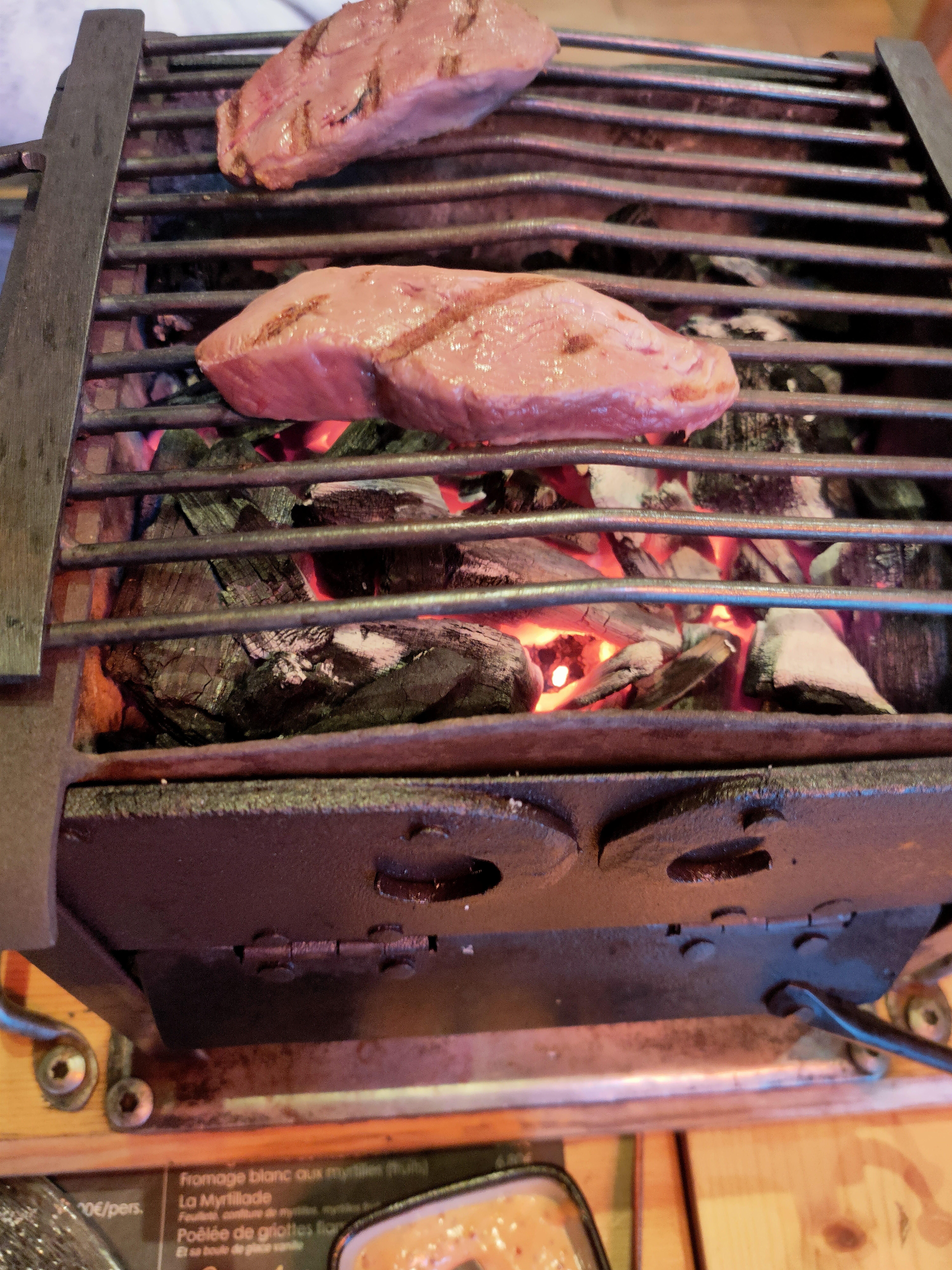 Repas groupe lors d'un séminaire. Resto sympa à la montagne ou nous avons passé un bon moment. Dommage que l'inflation soit passée par là nous aurions pu avoir plus de viandes à griller. A faire pour les brasero.....