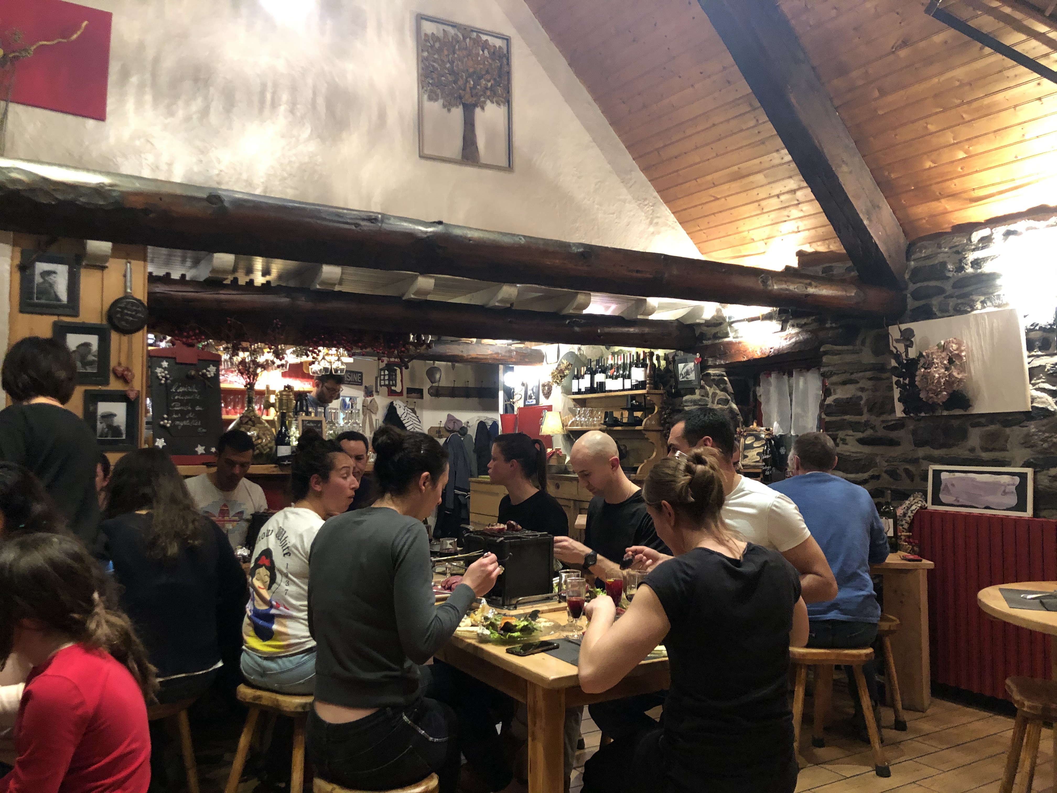 Petit resto typique chaleureux avec mur en pierres ,cheminée.. une raclette trop bonne.un très bon accueil très sympa.un conseil réservez car très petit peu accueillir que 40 personnes.si vous passez par là n hesitez pas.nous avons passez un super moment entre collègues.