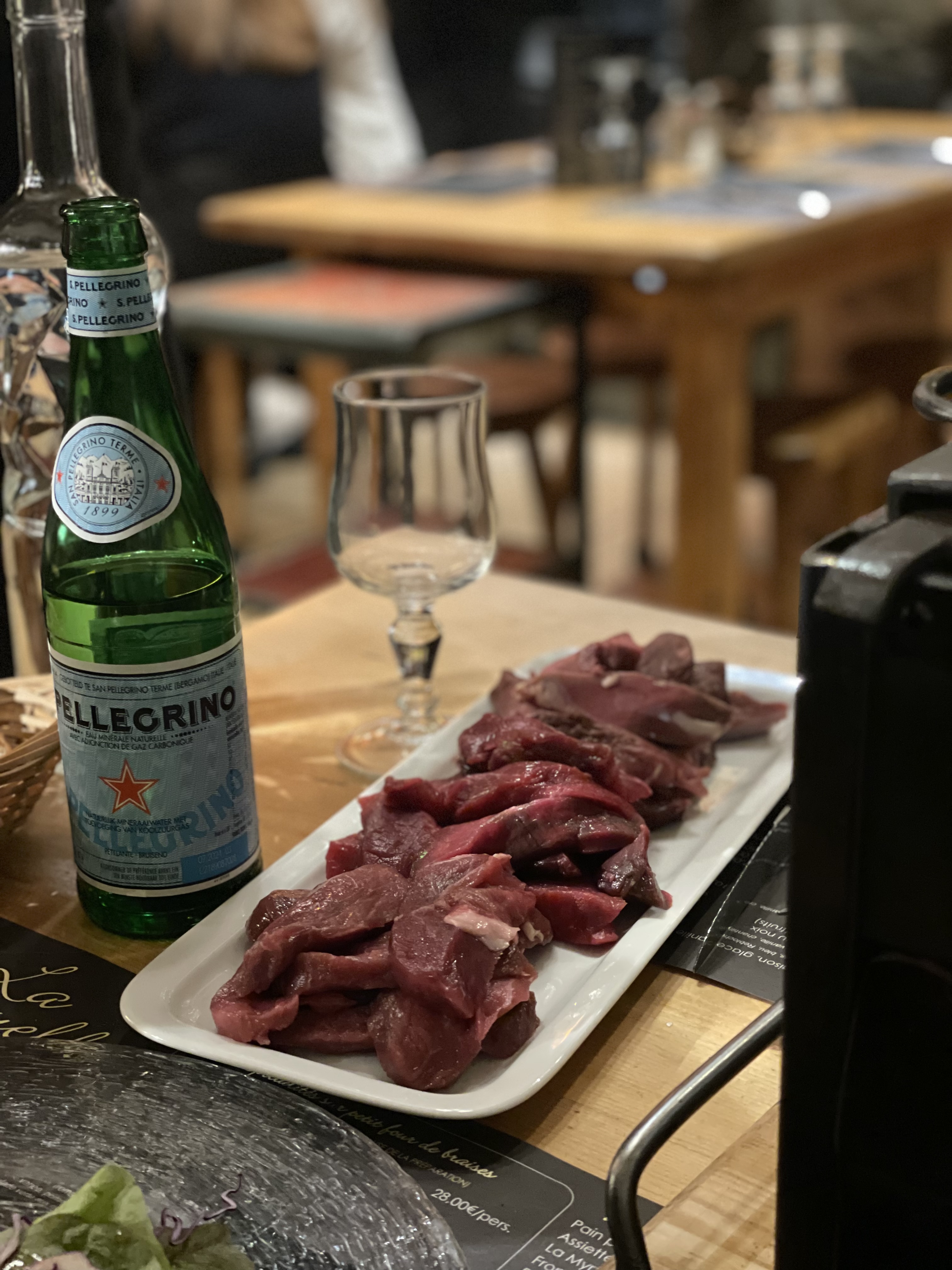 Formule de cuisson avec petit brasero pour chaque table. Ambiance chaleureuse et décontractée. A recommander.