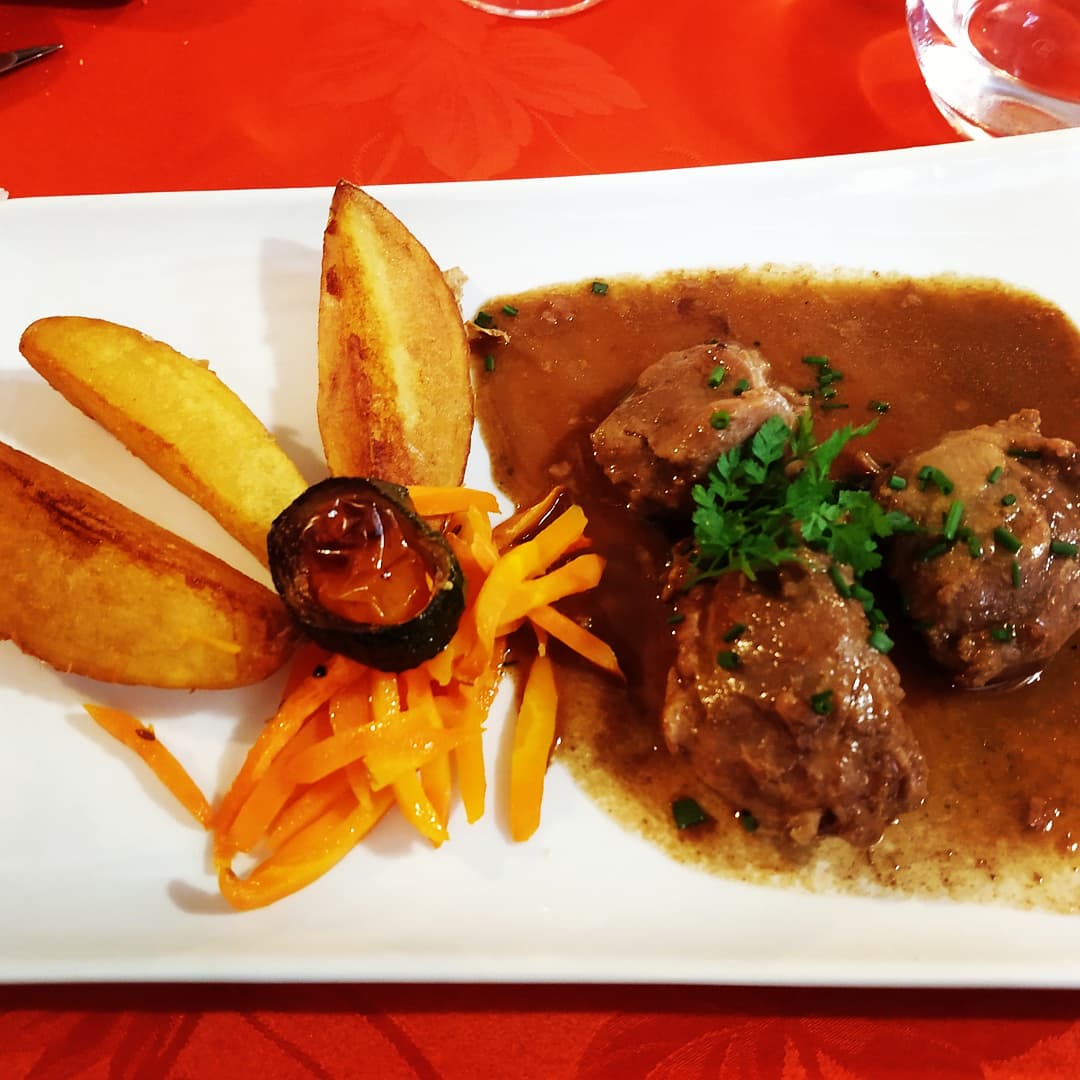 Très bon restaurant avec de très bons plats. MAIS arrivés à 12h30, sortis à 15h !!! 2h30 pour 2 menus...de passage, nous n avons même plus eu le temps de visiter le château....