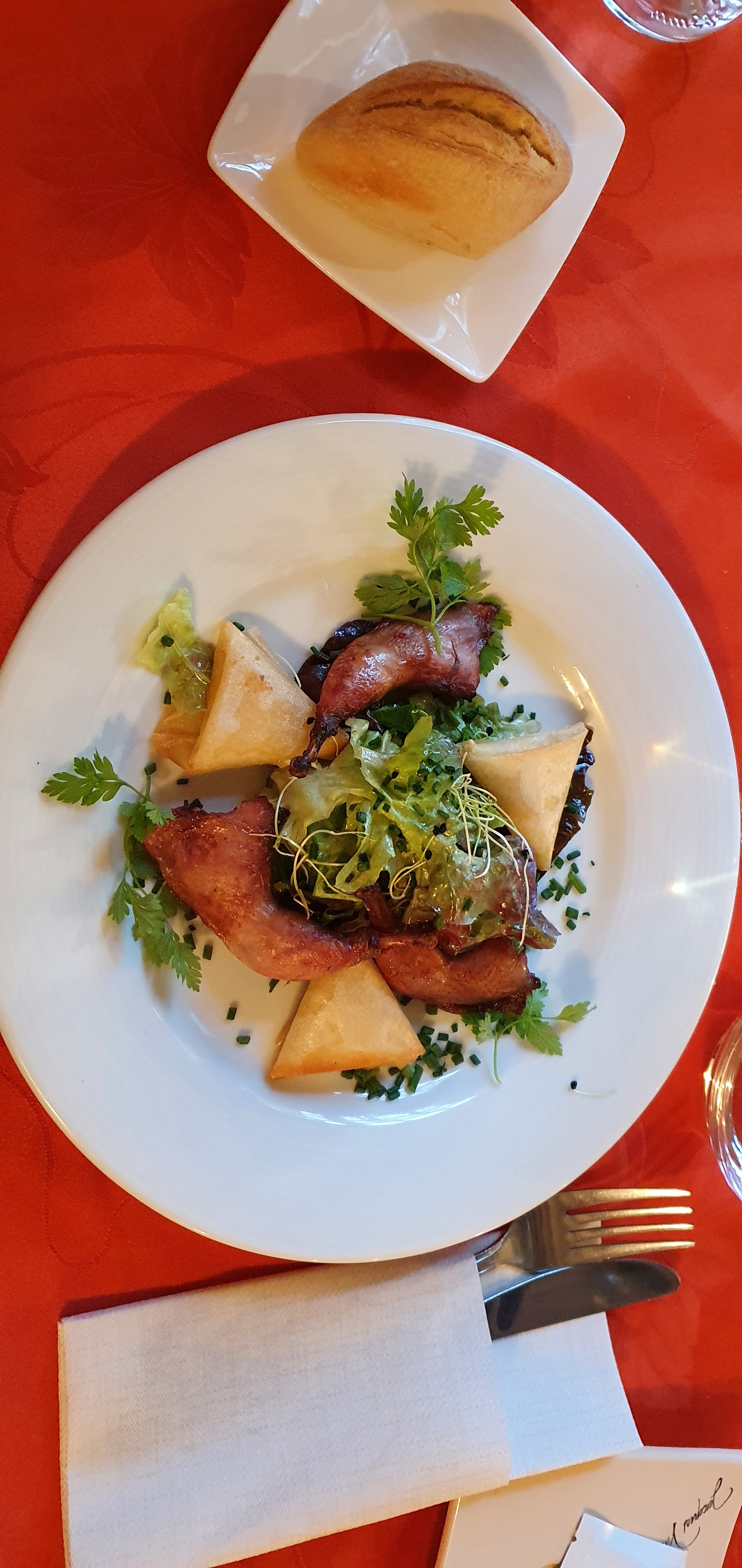 restaurant fort agréable, personnel souriant , efficace , la carte parfaite et la suggestion de l 'apprenti excellente ( cuisse de canette au vin épicé ) génial , pour ma part je recommande sans retenu .