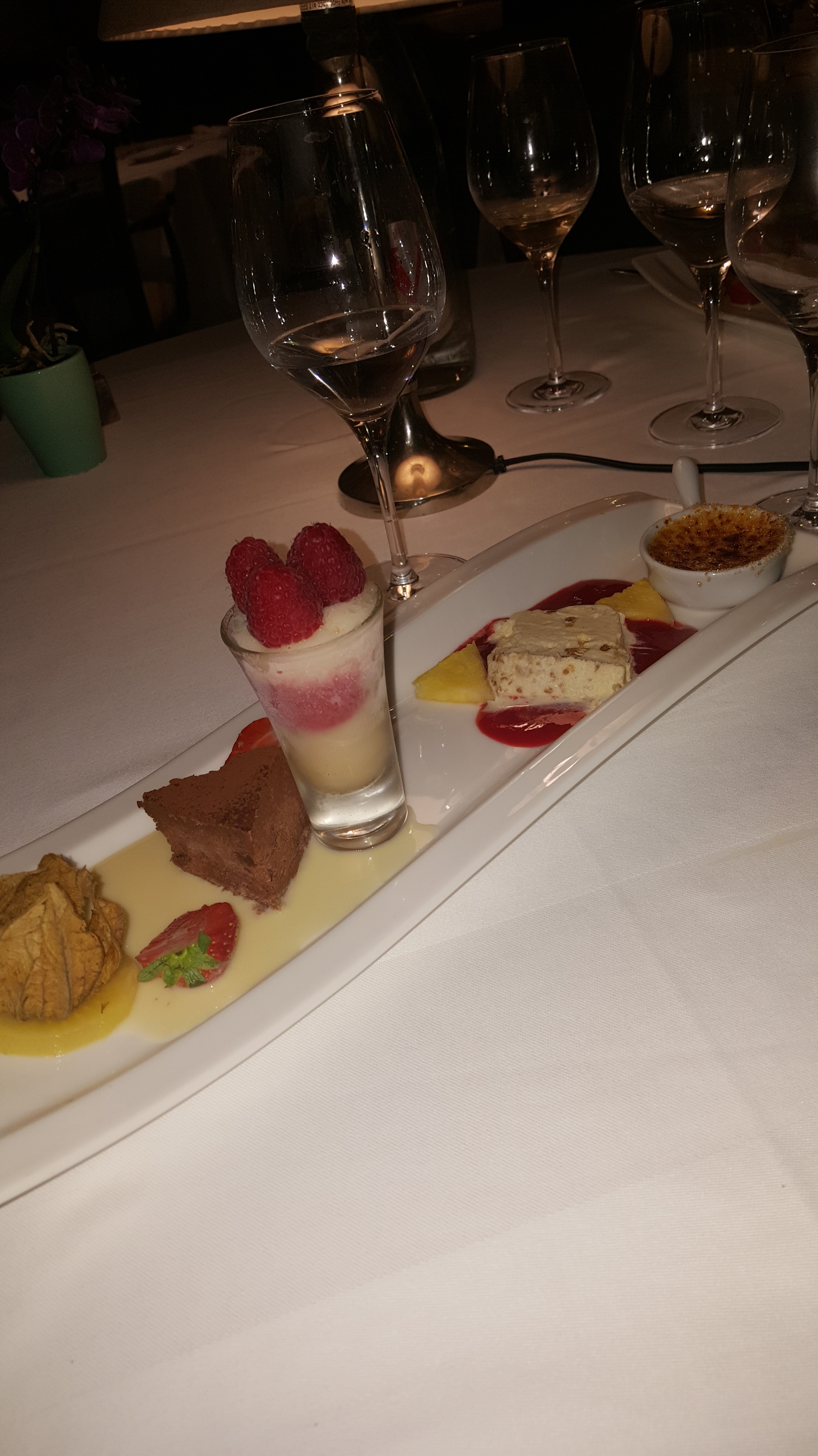 Une superbe soirée Nous avons très bien mangé tout était parfait de l’entrée jusqu’au dessert . ( le chariot fromage et le chariot dessert sont énorme énormément de choix ) Rien à dire niveau rapport qualité / prix Je recommande sans hésiter