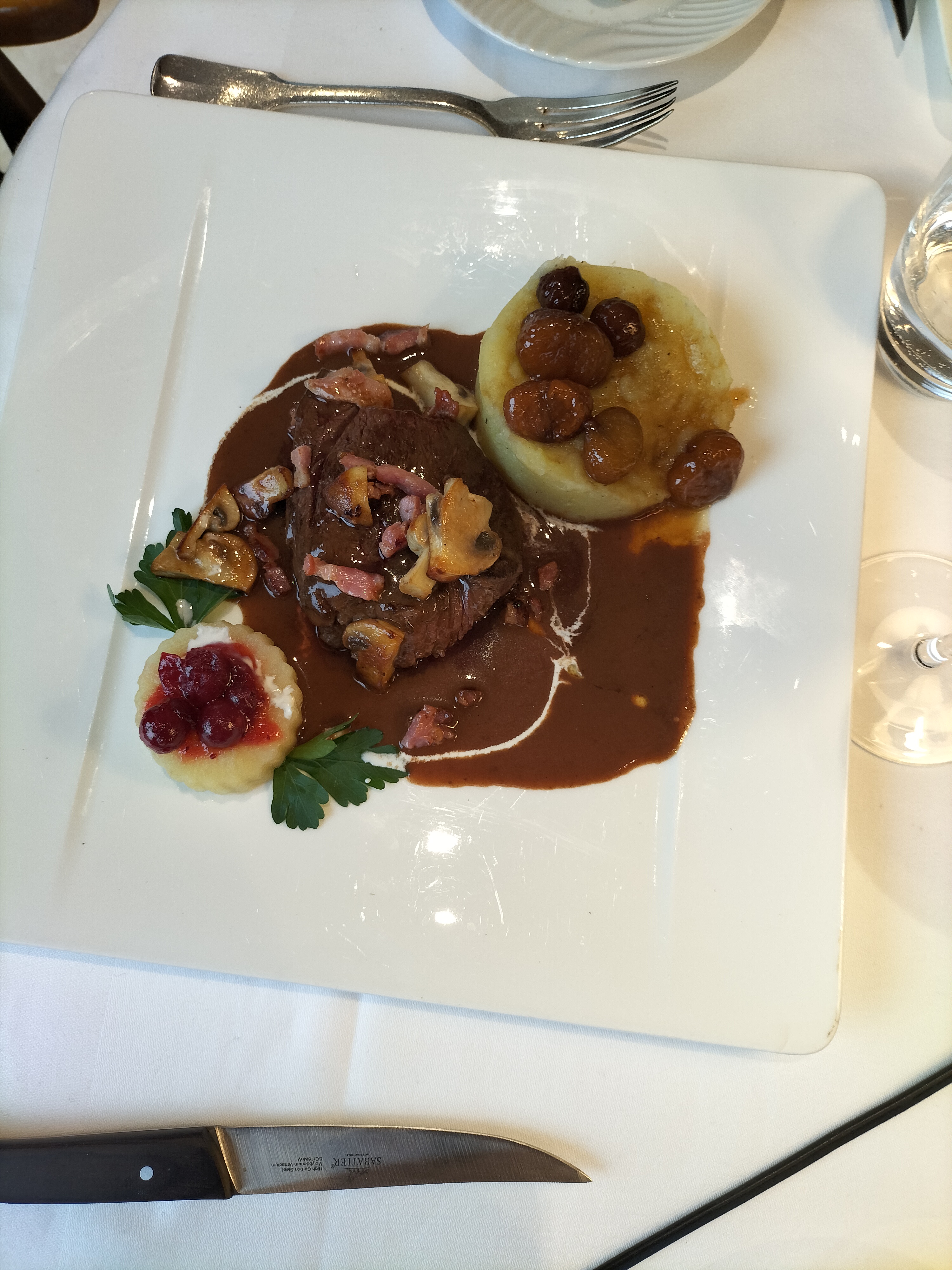 Avons très bien mangé. Cependant service très long même si nous n’étions pas pressés. Avons commandé un tournedos pour notre enfant de 10 ans. Très belle assiette mais facturé comme un tournedos rossini, 42 euros !!!! Le foie gras n’a jamais été servi. Malgré tout cadre agréable, personnel sympathique. Nous y retournerons.