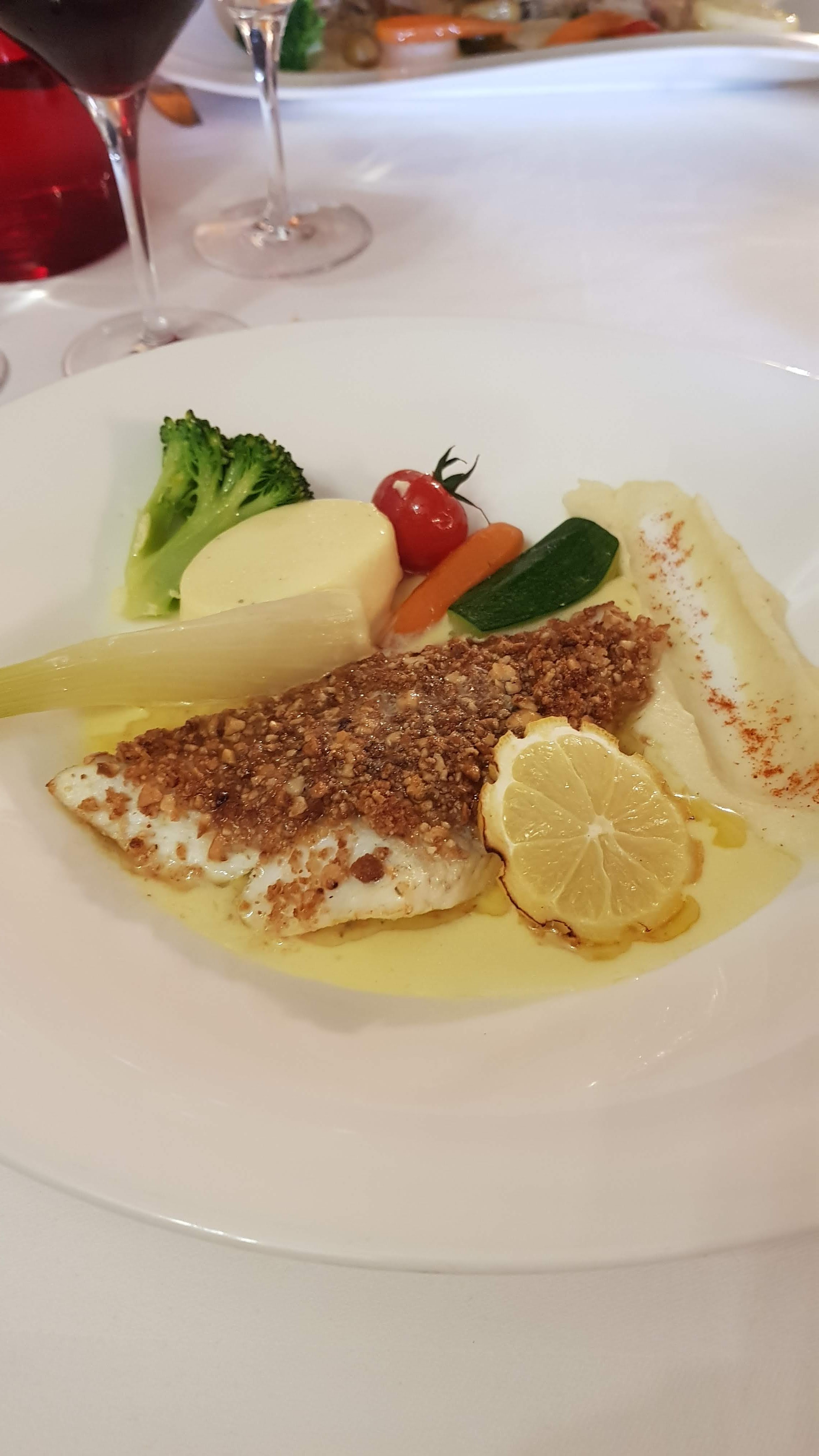 Menu poissons parfait, de l'entrée au dessert avec des vins de qualité ! Si vous voulez y aller, vous ne serez pas déçus.