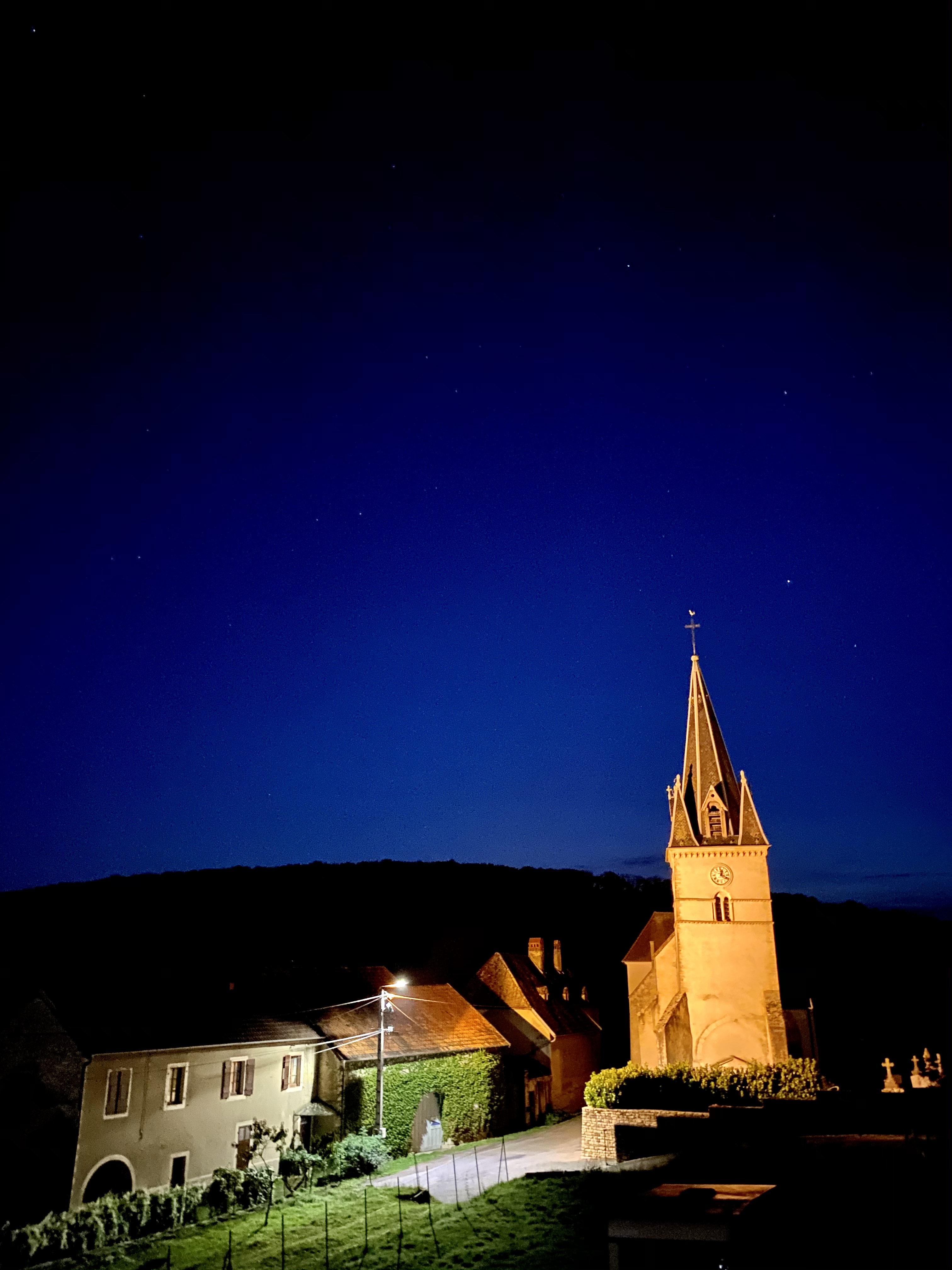 Cadre super agréable belle chambre a l'ancienne Pas de télé dans les chambres et le portable passe très bien Nous avons très bien mangé le soir nous avons fait connaissance de deux Monsieur que nous avons oublié de prendre son nom Très bien dormi calme Petit chien accepté Petit déjeuner très copieux Merci de votre accueil Caroline et ces parents très sympathique Nous reviendrons encore merci