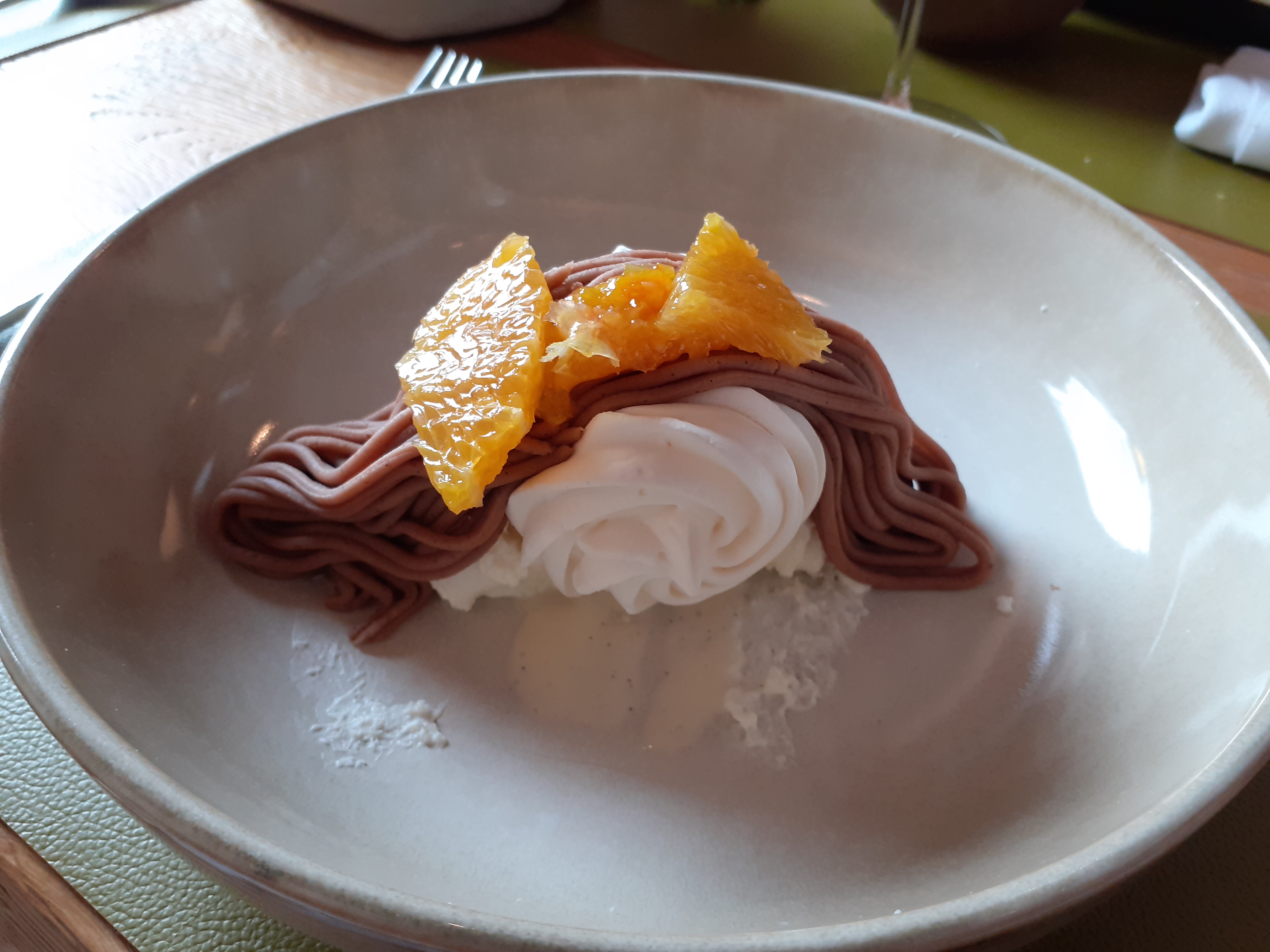 On a dû manger à l'extérieur malgré la température d'été (hivernale)... malgré tout nous avons eu un très bon service...et de bon conseil. Le repas en plusieurs services était correct mais sans plus...il manque un peu de piquant et de vie dans les plats mais on sent une envie de prouver beaucoup plus donc à refaire.