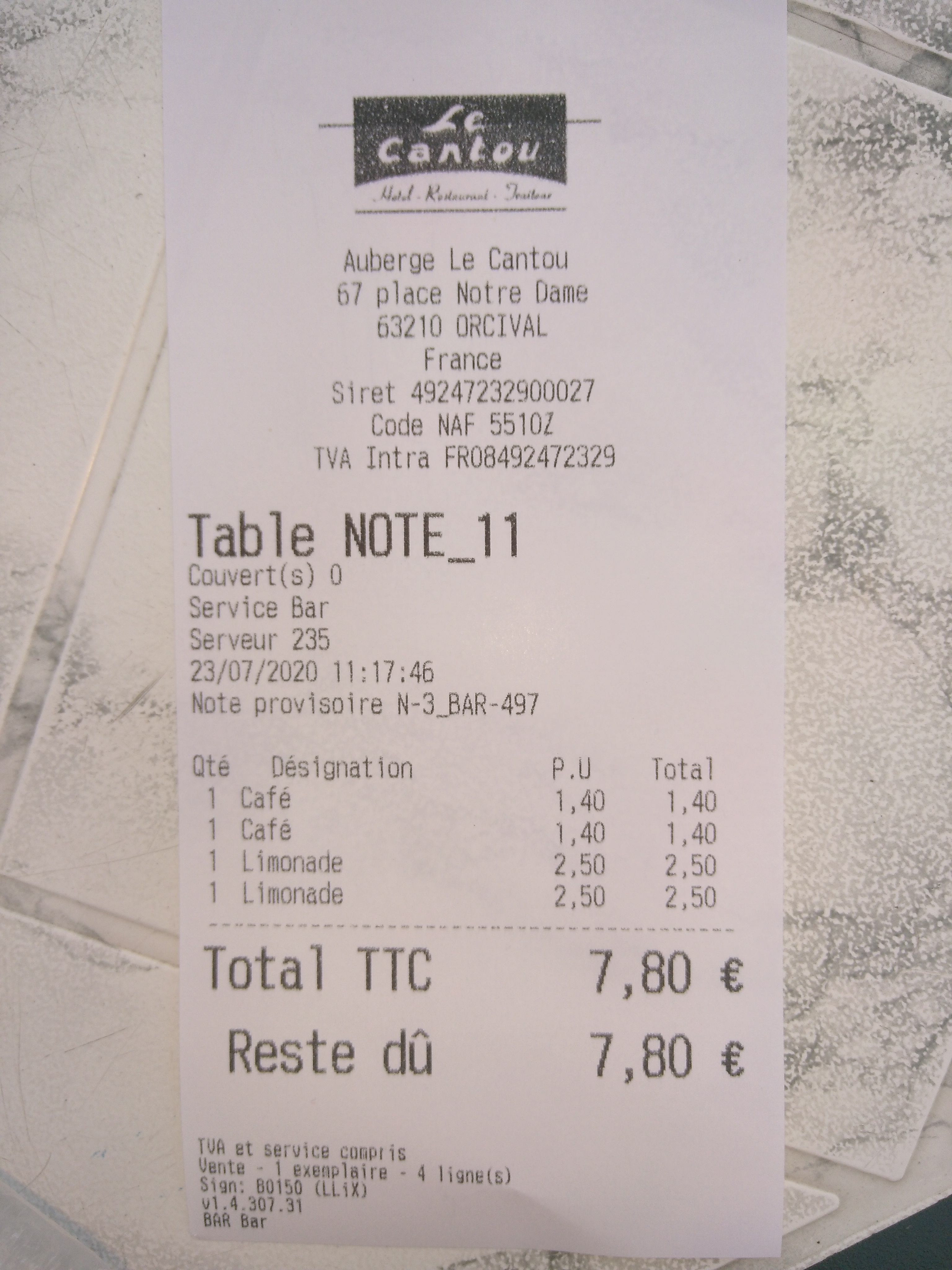 Un excellent restaurant traditionnel, très copieux et bon. Service agréable et rapide. En vacances dans cette belle région, amoureux de ses commerçants chaleureux et à l'écoute. Vive les Auvergnats!