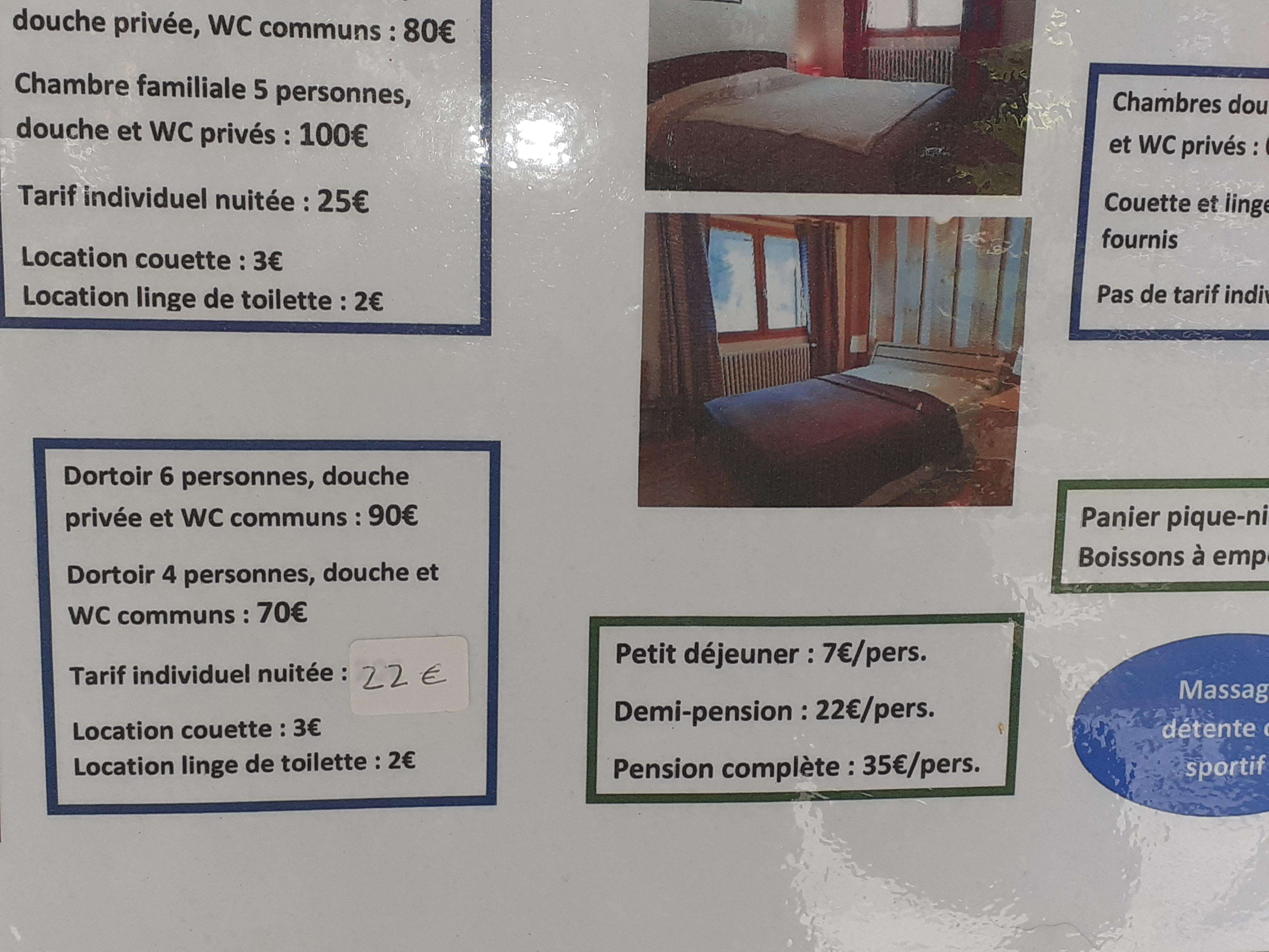 Séjour de 2 nuits pour randonner prévu normalement avec 1 autre couple qui n a pu venir. Accueil impeccable, chambre agréable et repas très copieux qui tiennent au corps. Il manque peut-être 1 télé dans la chambre pour patienter en attendant le repas après 1 marche ou pour se tenir informés des actualités. Literie au top. Sinon, rien à redire, merci pour votre accueil et conseils de randonnées fabuleuses.
