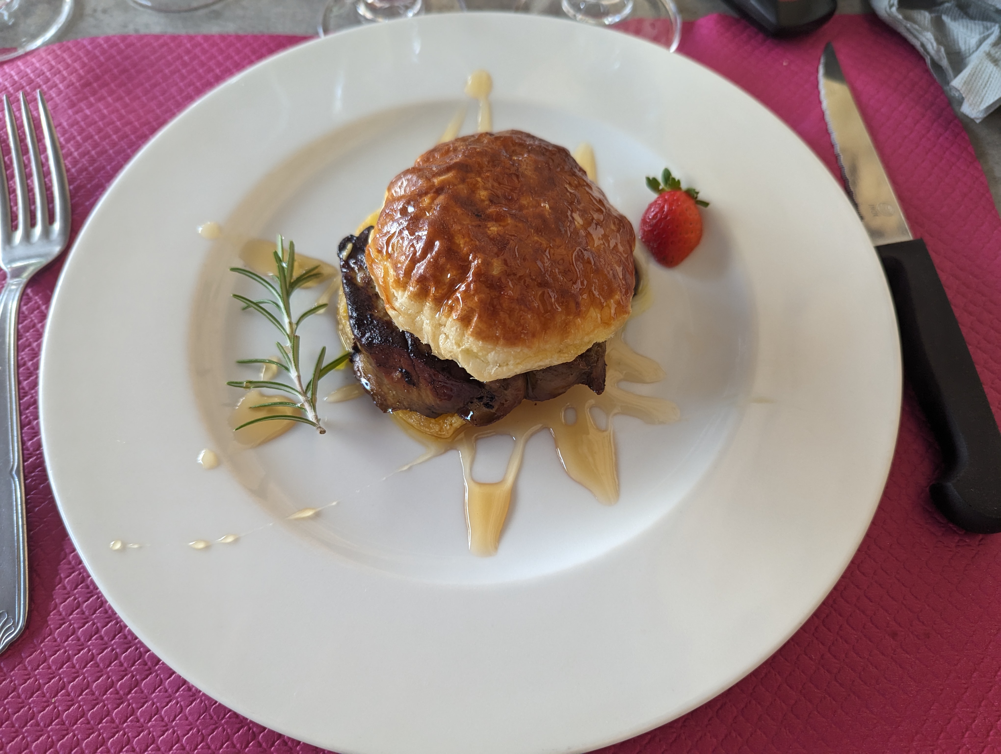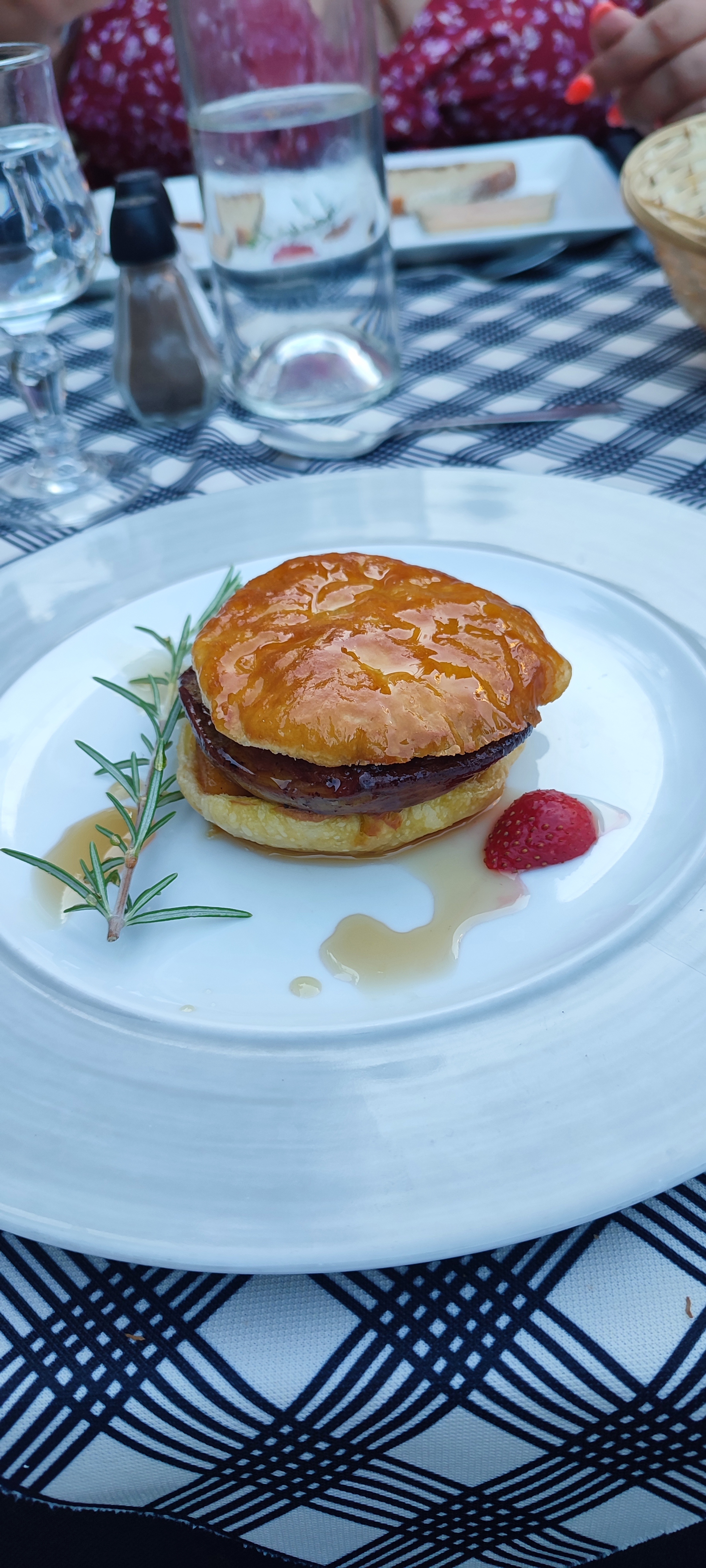 Bonne découverte surtout gustative, le foie gras poêlé avec la poire est un coup de coeur !!! Bravo au cuisinier ! Nous avons trouvé le magret un peu trop cuit mais on ne nous a pas demandé la cuisson c’est dommage … le service est professionnel. Joli emplacement loin du monde !