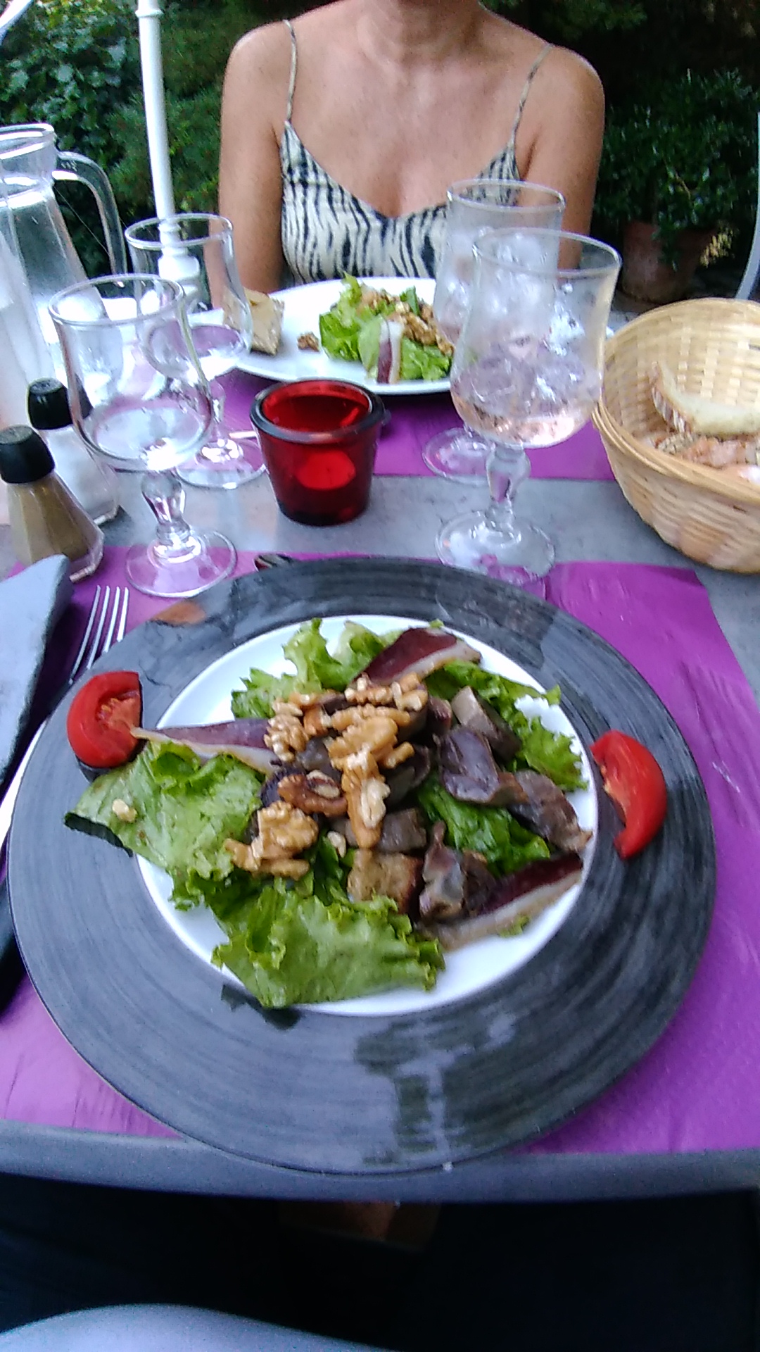 Salades à éviter. Les produits à base de canard sont corrects (sans être inoubliables), mais les salades, tombées, non assaisonnées, ne valent certainement pas le prix (14.5 euros pour qq cabecous, de la salade tombée et des croûtons). La tarte aux noix n'a rien d'exceptionnel non plus, vous en trouverez à n'en pas douter de bien plus goûteuses au marché de sarlat. Au final, hors menus que nous n'avons pas testés, un rapport qualité prix très décevant.