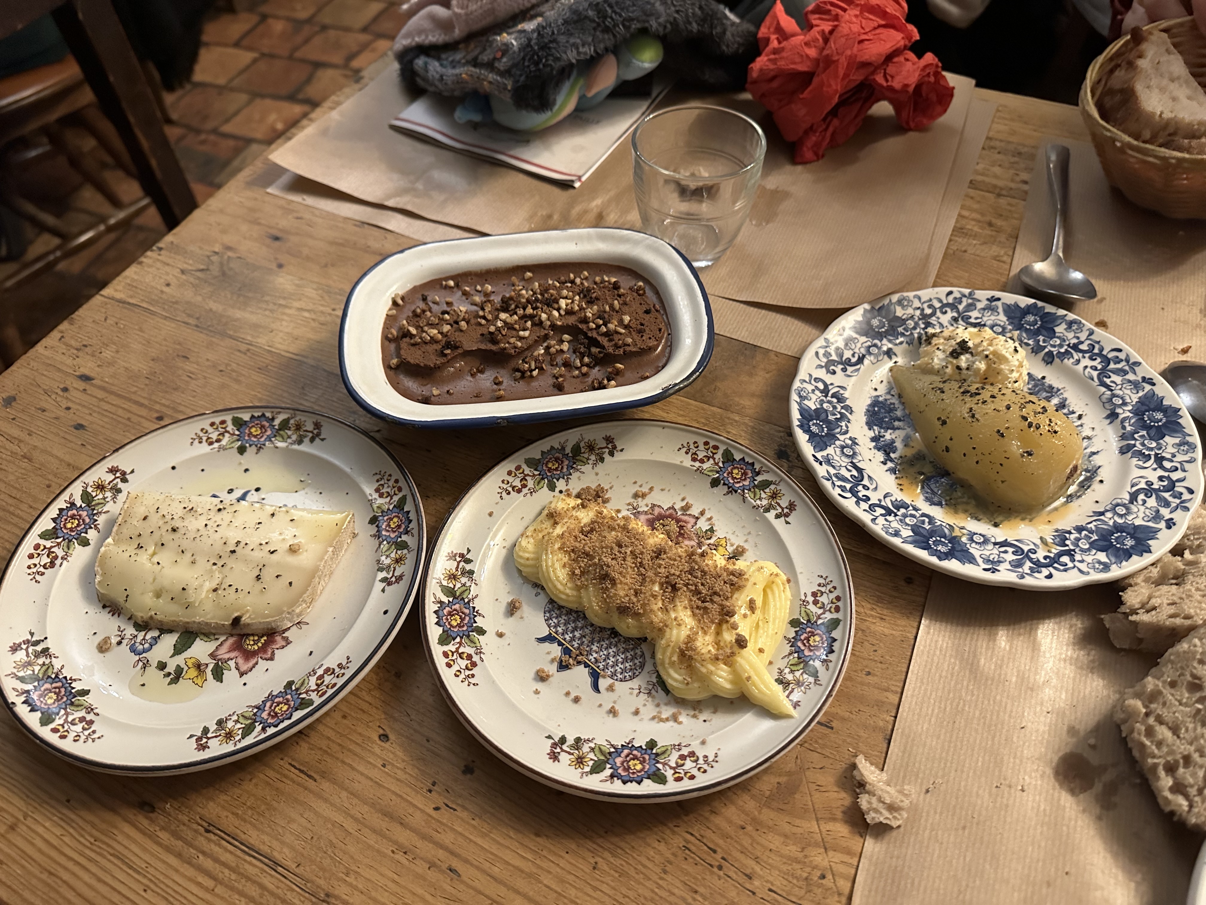 Le concept est Top: farandole d’entrées, farandole de desserts à partager, une seule chose à faire choisir son plat et vous régaler! J’ai opté pour la poitrine de cochon, excellente! Une chose est sure vous sortirez d’ici rassasié! Petit conseil pensez à réserver car petite auberge (une salle à l’étage) qui se rempli vite ! Ce qui revient à entrée/ plat / dessert+ un cocktail pour 36€ J’étais déjà venue au mois d’octobre c’était aussi bien !