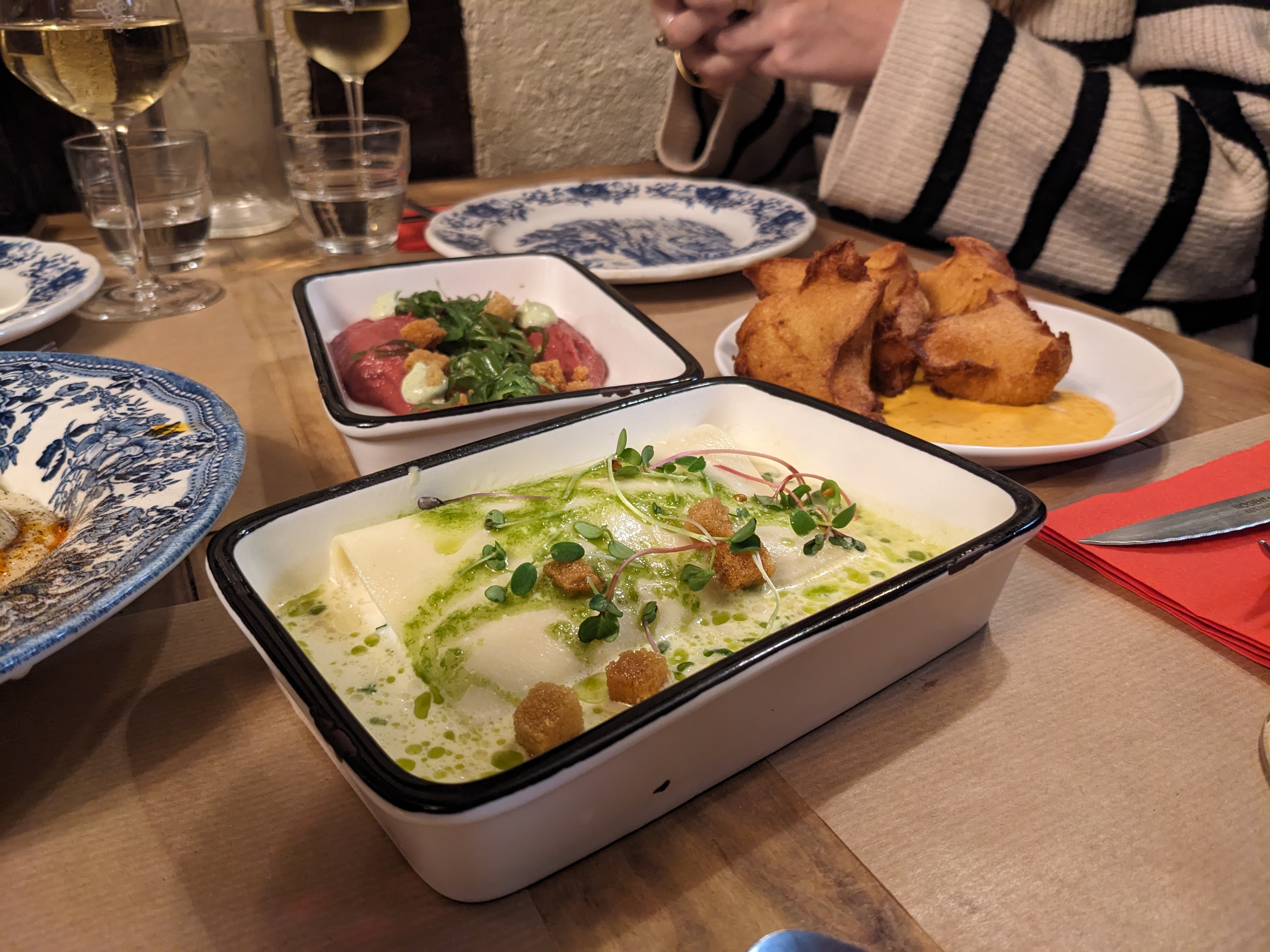 On venait pour une petite soirée amicale à 5 pers. Un couple de la tablée était déjà venu et nous a fait découvrir cette petite pépite ! Accueil chaleureux, ambiance conviviale, service impeccable et cuisine extra ! J'adore le concept des petites entrées à partager, idem pour les desserts. Certains pourraient être sceptique de ne choisir que leur plat. Mais honnêtement tout est délicieux et les indécis (ou très curieux) de la carte, comme moi, seront ravis du concept ! La carte change et suis les saisons et les cuistots sont de vraies petites fées que vos papilles loueront à chaque bouchée ^^ Une adresse TRES chaudement recommandée 🙃 Petit aspect pratique : pensez à réserver, malheureusement si vous passez à l'improviste il y a tres peu de chance que vous trouviez place.
