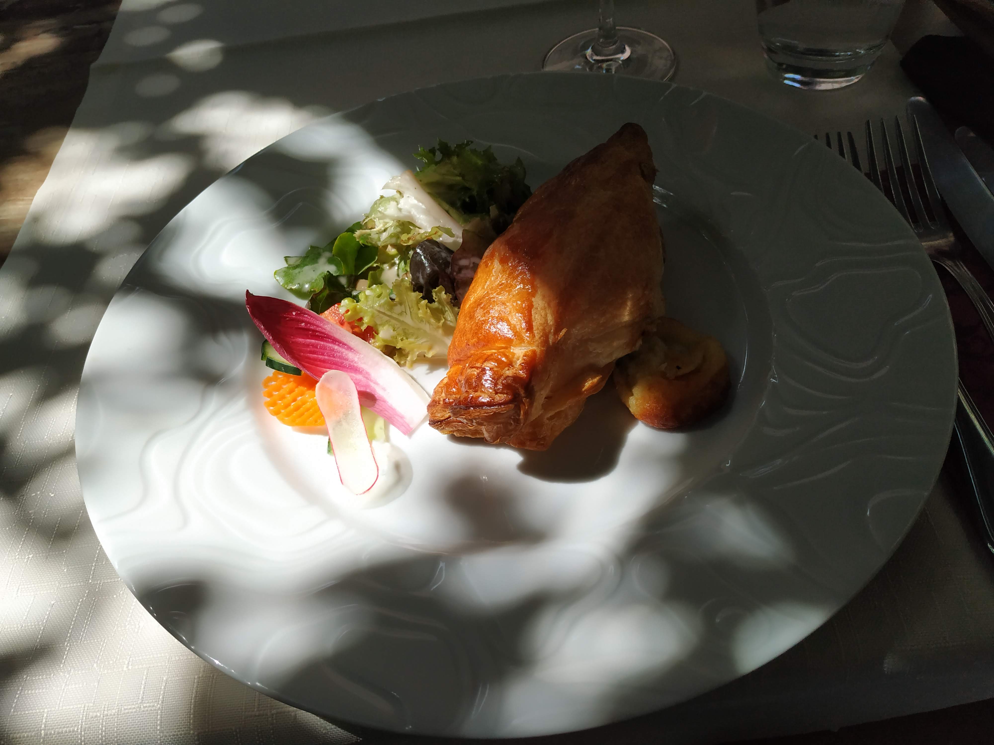 Magnifique terrasse, nous étions installés mon conjoint, mes enfants et moi près de la fontaine. Le service a été impeccable. Et nous avons très bien mangé, nous vous recommandons l’auberge.