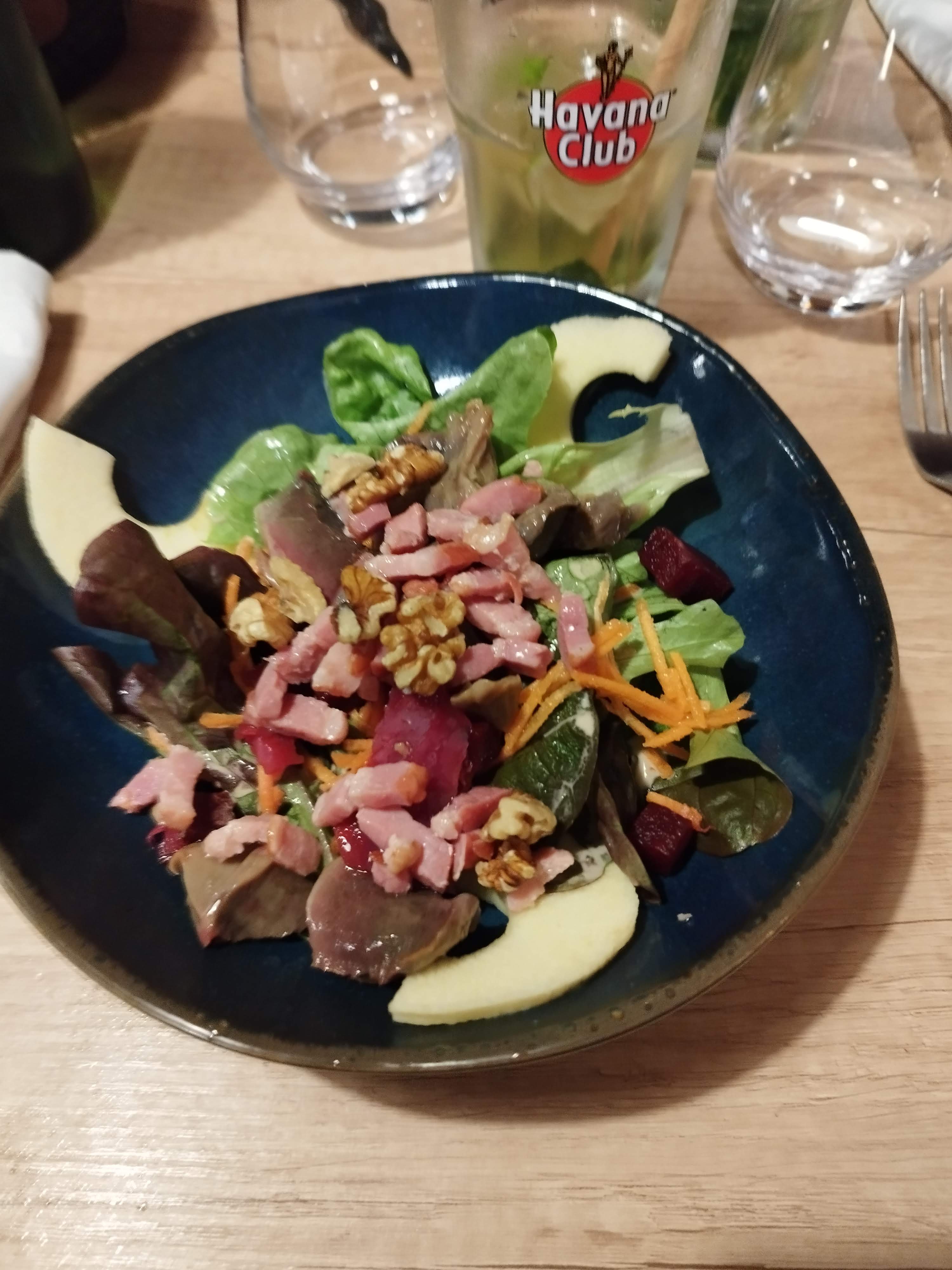 Excellent. J'ai pris un menu avec foie gras mi-cuit et magret de canard. Un délice. Et mon conjoint une vraie salade salardaise avec du foie gras poilé ! A recommander. En plus le cadre est splendide. Voûte très jolie.