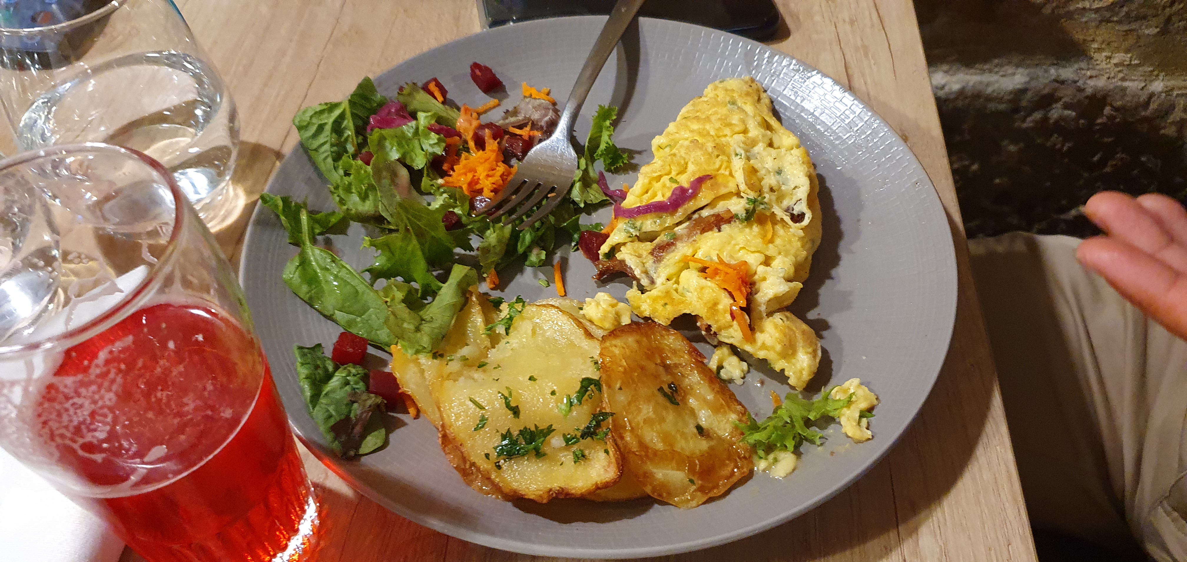Très bon accueil, le service aux petits soins : ils nous ont même improvisé un plat végétarien. Le cadre style vieille bâtisse avec le petit plus de la grotte intégrée... petit coup de fraîcheur si on y entre :-)