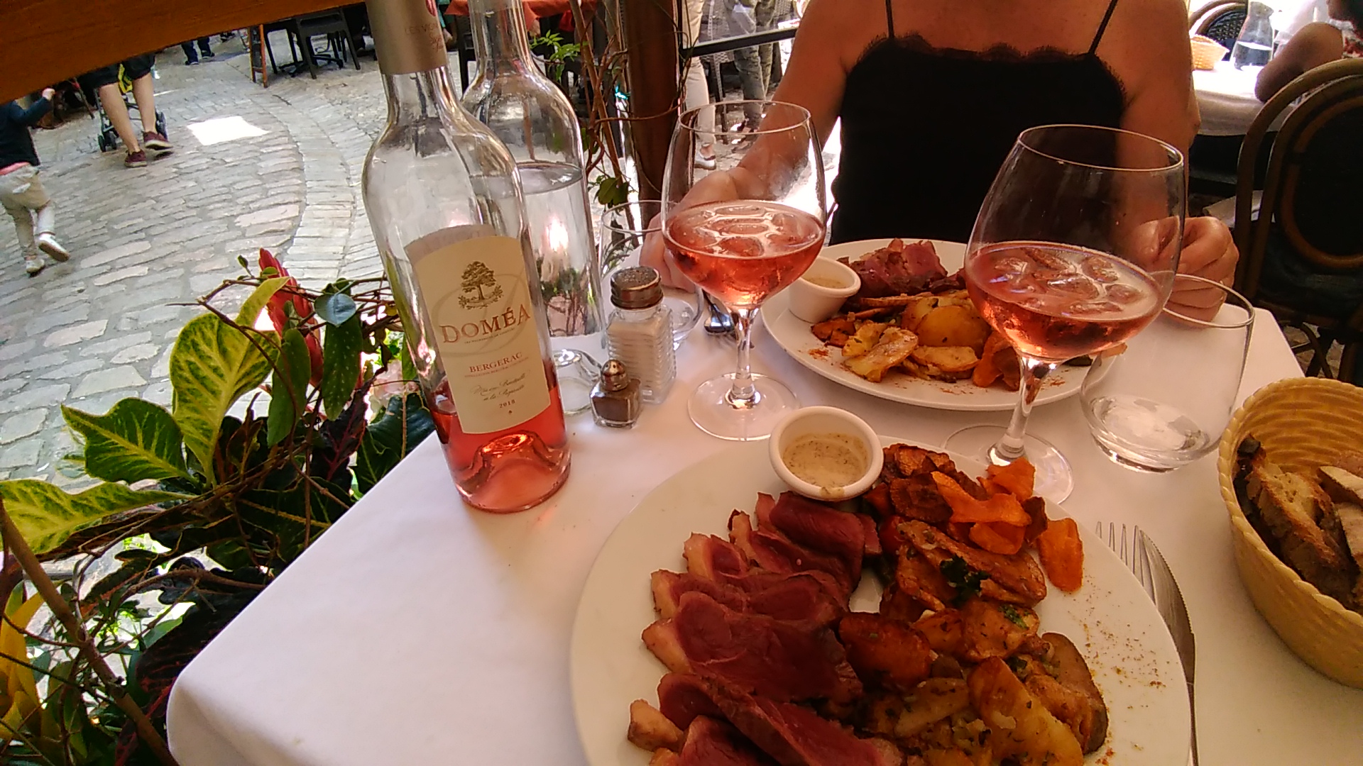 Un très bel endroit typique de SARLAT-LA-CANEDA où la carte représente parfaitement les tendances de la région. En entrée: assiette découverte de foie gras (bloc foie gras de canard, terrine de foie gras de canard et foie gras poêlé) partagée à 4 avec nos filles , une entrecôte ANGUS avec une sauce aux cèpes sur pommes de terre salardaises, un gâteau aux noix. Nos enfants ont pris un magret de canard rosé avec une sauce à la truffe et une salade de 3 rocamadours chauds. Le service est génial. Franchement un super moment .