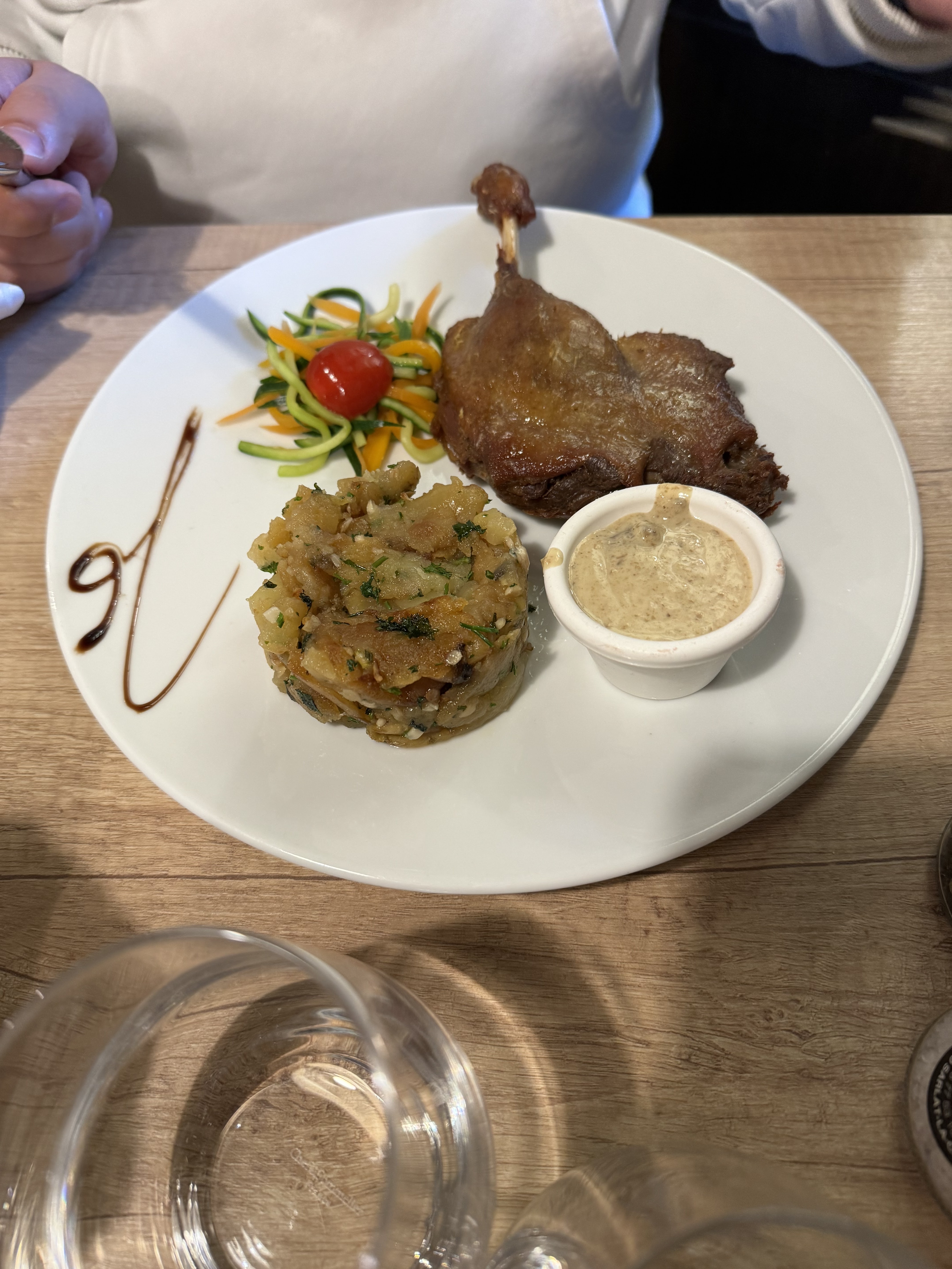 Avis assez mitigé. Nous nous attendions à mieux. Pourtant ça commençait bien avec le foie gras en entrée et le serveur très souriant et poli. Arrive le plat, très rapidement malgré le monde. Les pommes de terre salardaises étaient tièdes, la sauce sans grande saveur et le confit trop sec et surtout sans cèpe. Un geste commercial nous a été accordé (dessert offert) d'où ma note remontée à 4 étoiles.