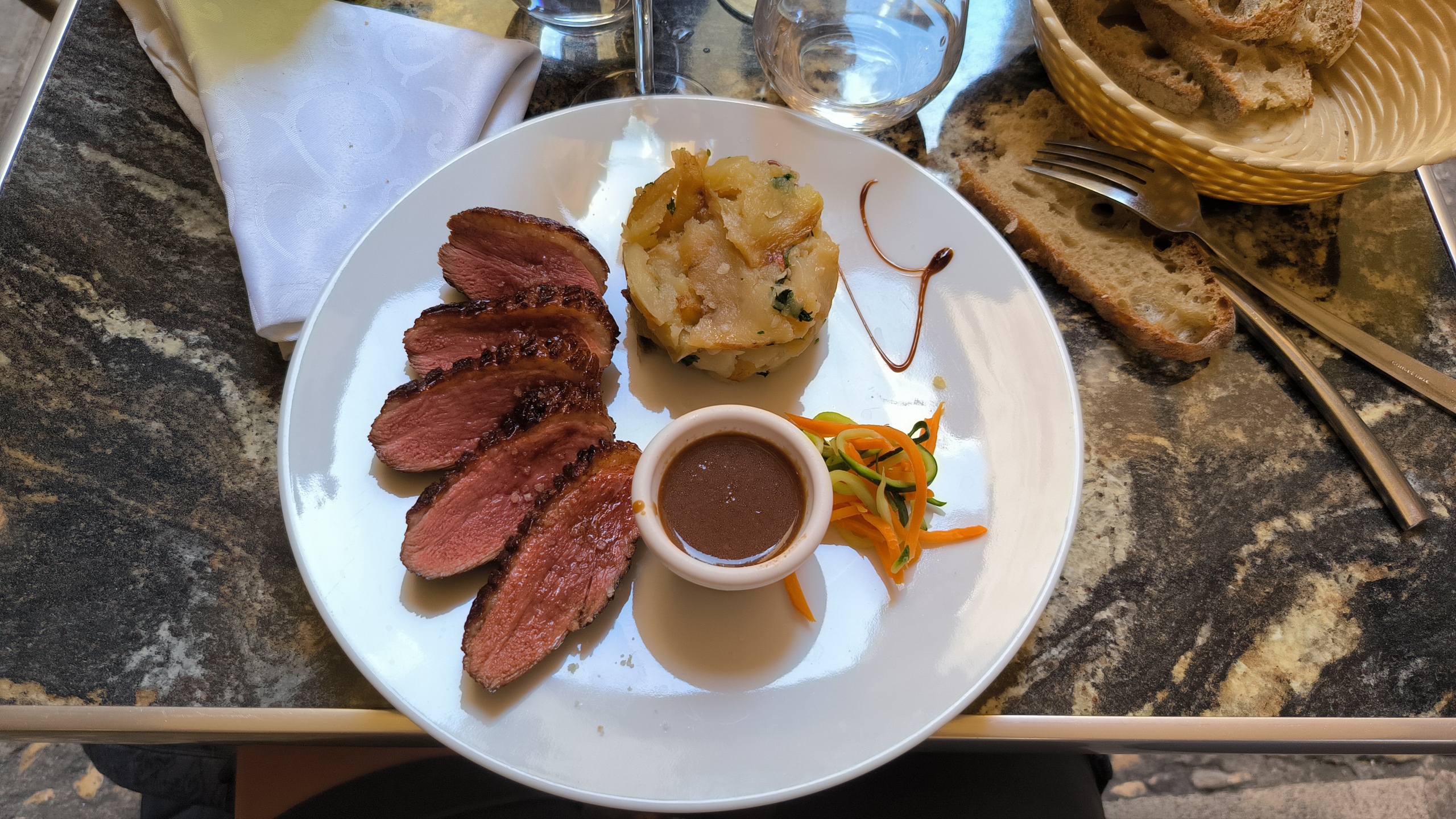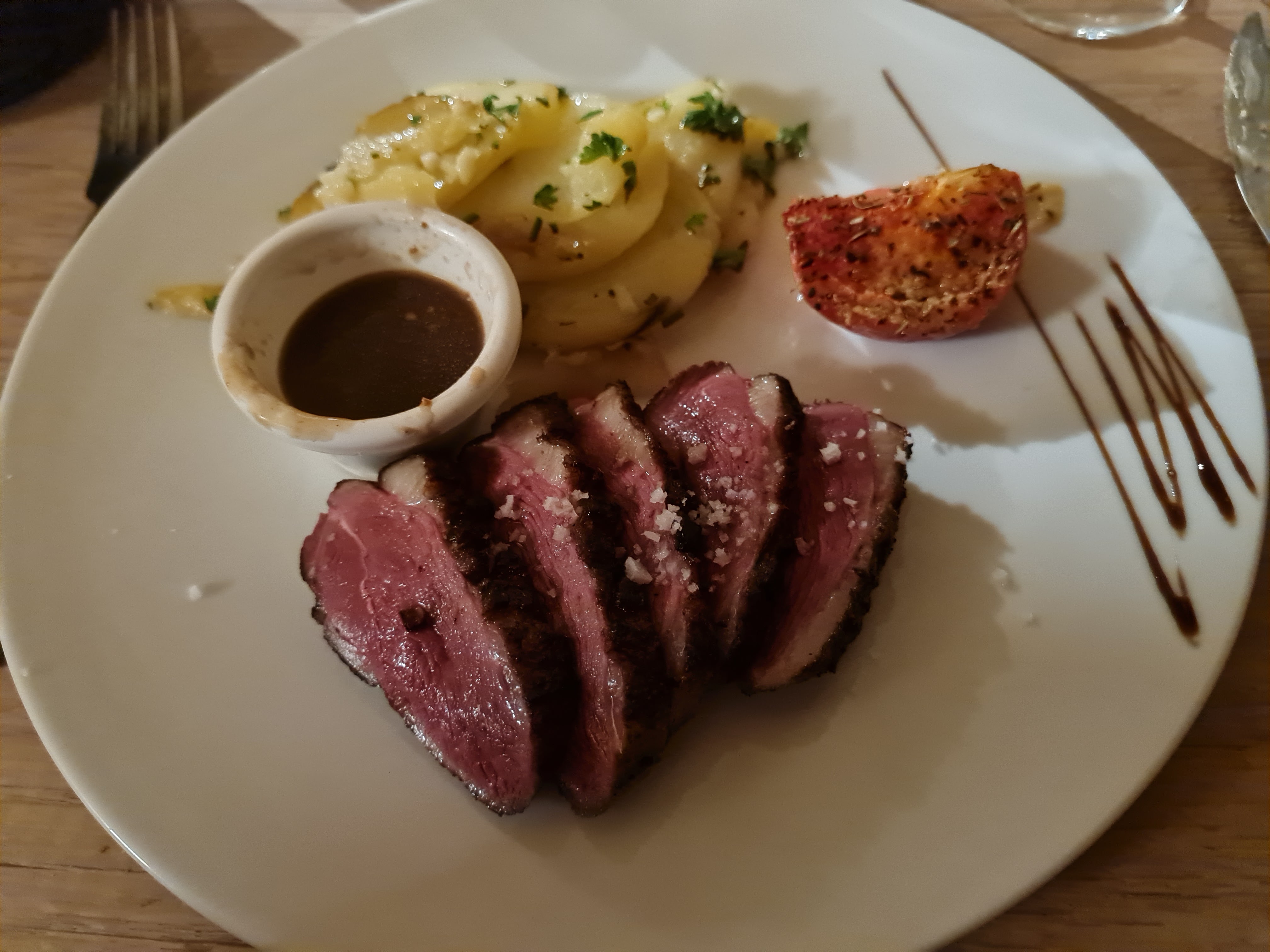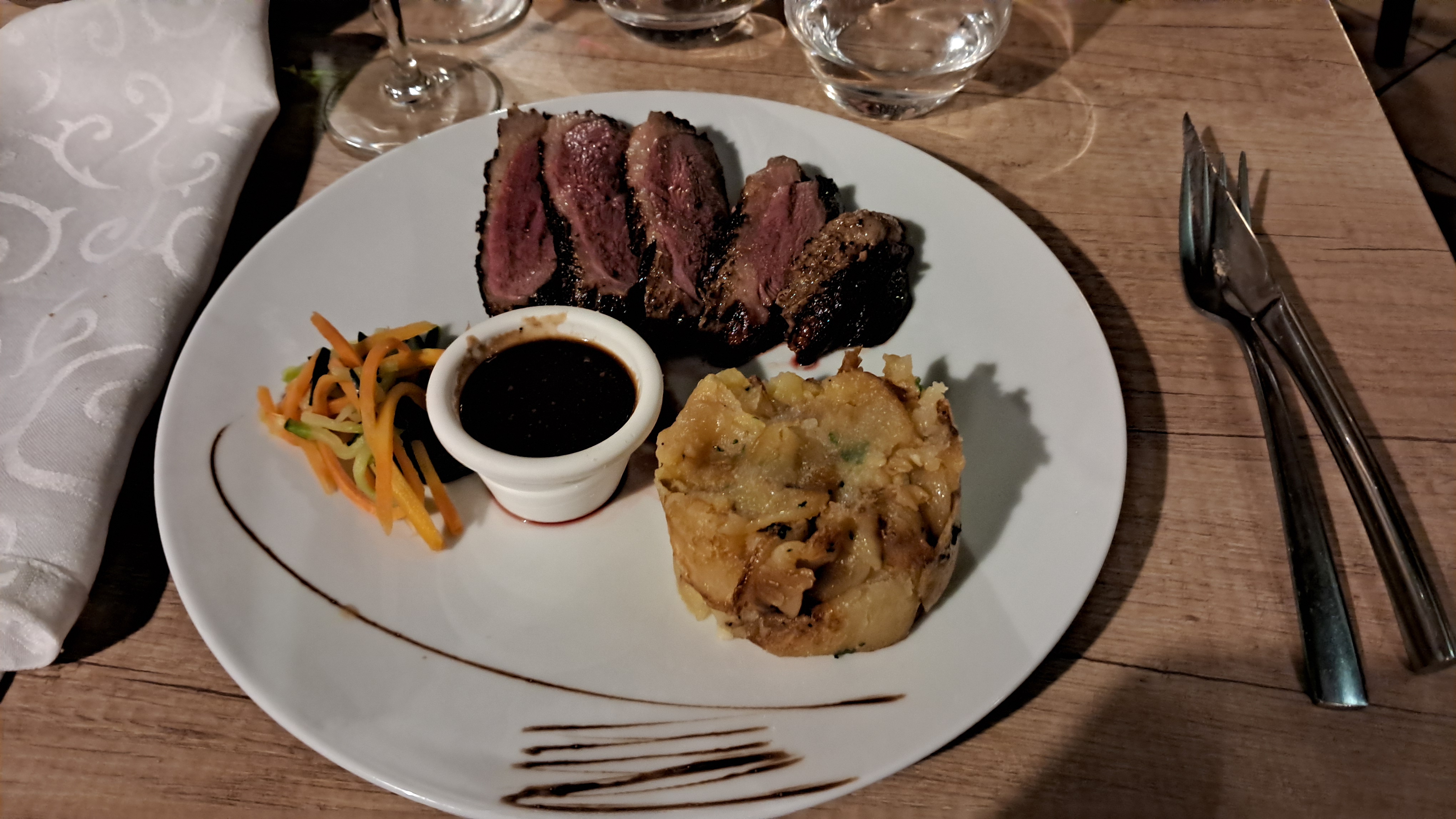 Excellent restaurant, je vous recommande le magret de canard à la croûte de sel et cuisson tendre délicieuse. De plus, l'accueil était très agréable.