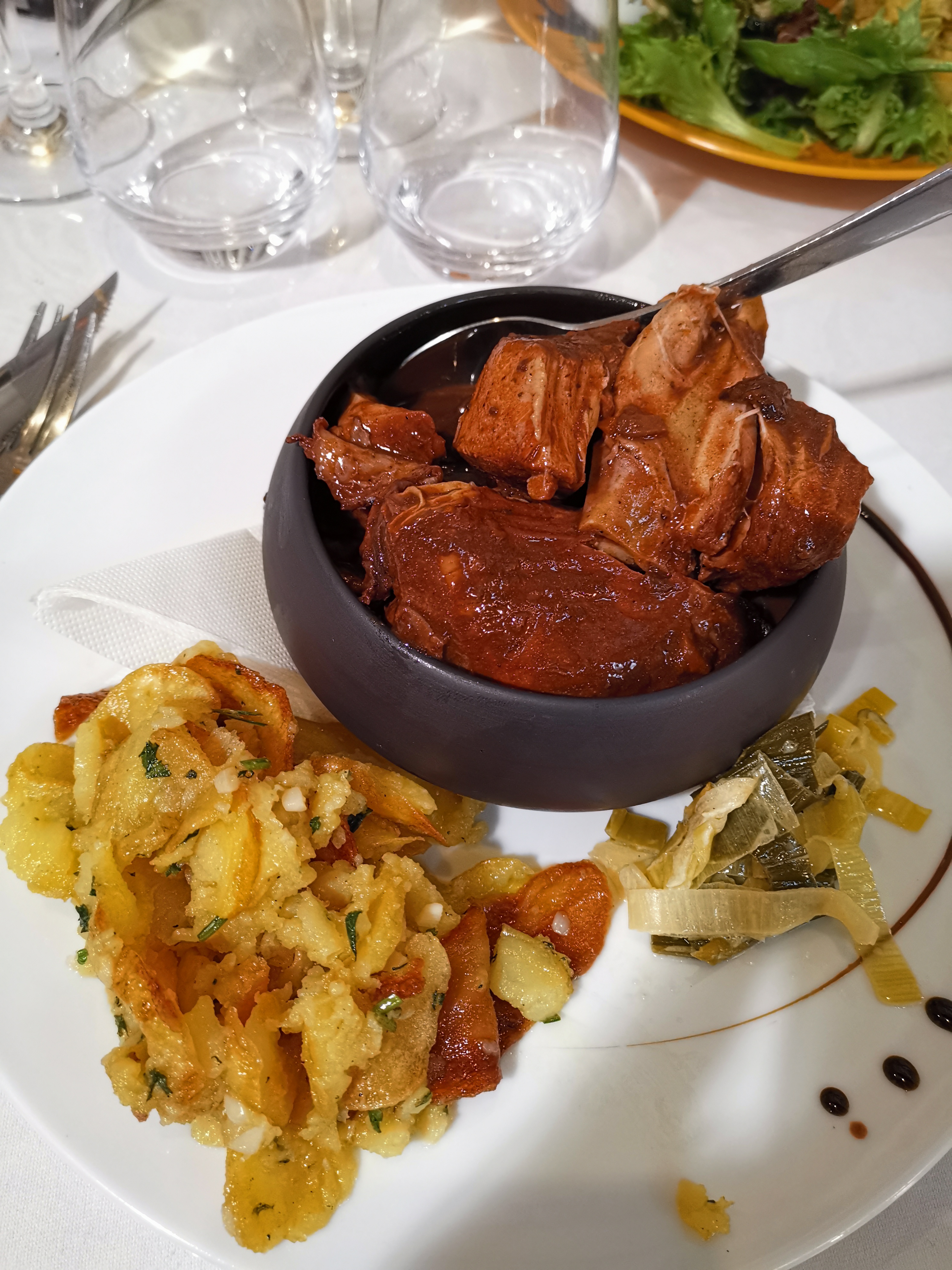 Le principal est dans l'assiette, Des mets du pays , frais et de qualité pour un prix abordable....nous nous sommes régalés....j'ai rarement mangé un tournedos de boeuf aussi tendre et goûtu. Le service est agréable, un peu long ma foi...le restaurant est pris d'assaut dès 19h00, malgré ses 3 salles sur 3 niveaux. Côté cadre, on est sur de l'authentique, pas assez mis en valeur, par manque de place ( stockage dans un magnifique escalier ). Sur le dressage de table, il faudrait penser à changer les verres usés par le lave-vaisselle et un couteau à viande à l'occasion serait le bienvenu.... Le rez-de-chaussée est très bien avec sa petite grotte à visiter en fin de soirée.