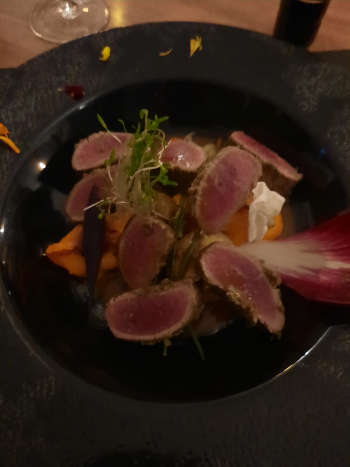 Cuisine raffinée...ds un joli cadre et personnels souriants soirée très agréable