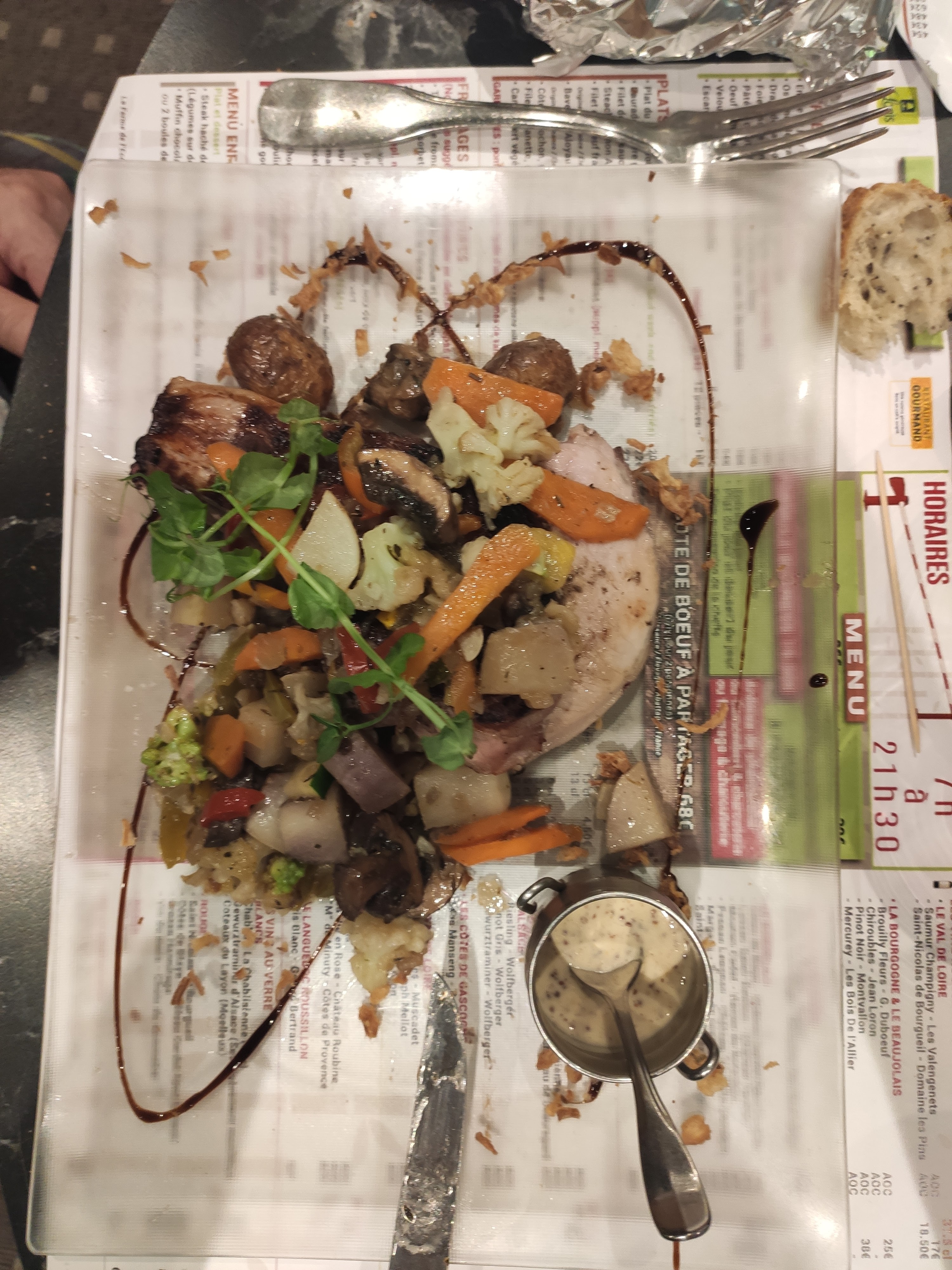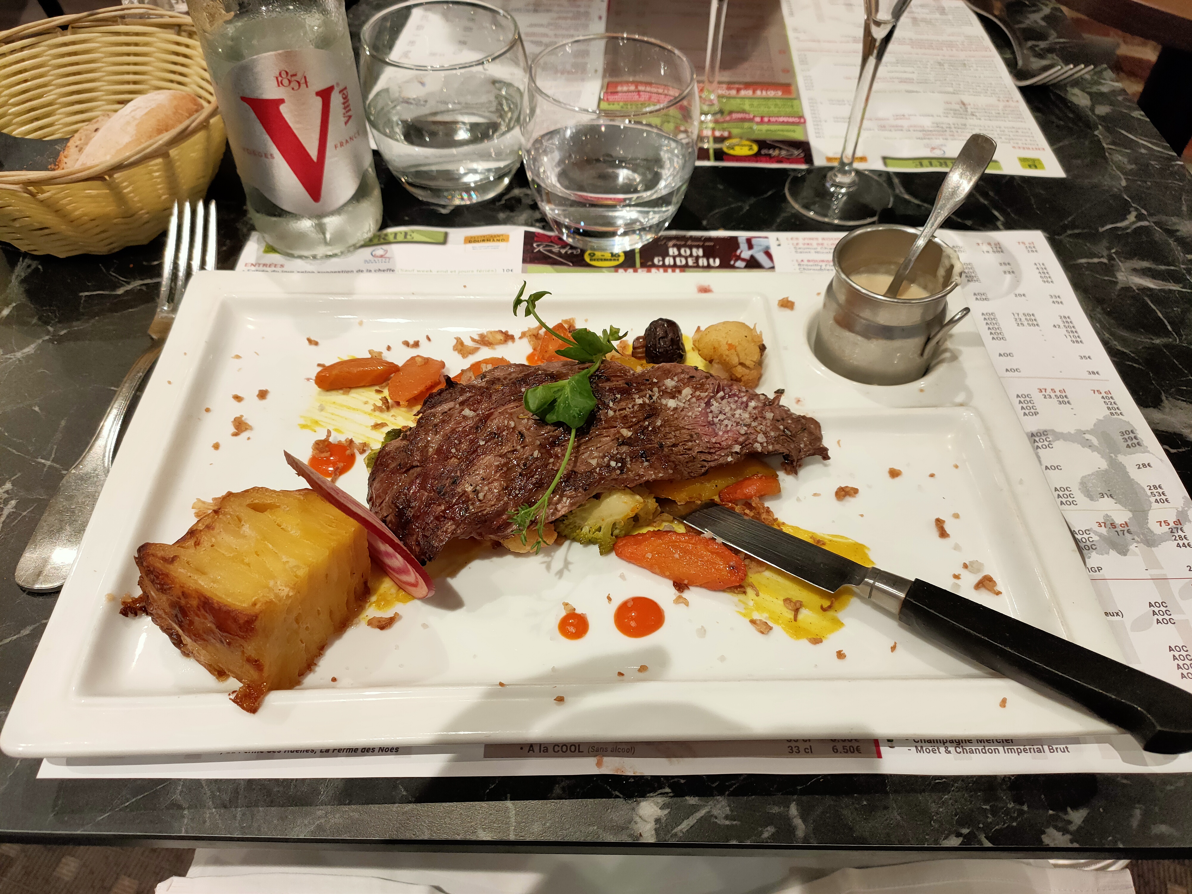 Le repas était globalement très bon. La terrine était légère, et le filet de bœuf très savoureux. Mais quand on fait des remarques sur les clients car ils sont embêtant à demander à ce que leur plats soient vraiment servis selon leur demande (sans sauce / bien grillé), mieux vaut ne pas le faire à portée d'oreille.