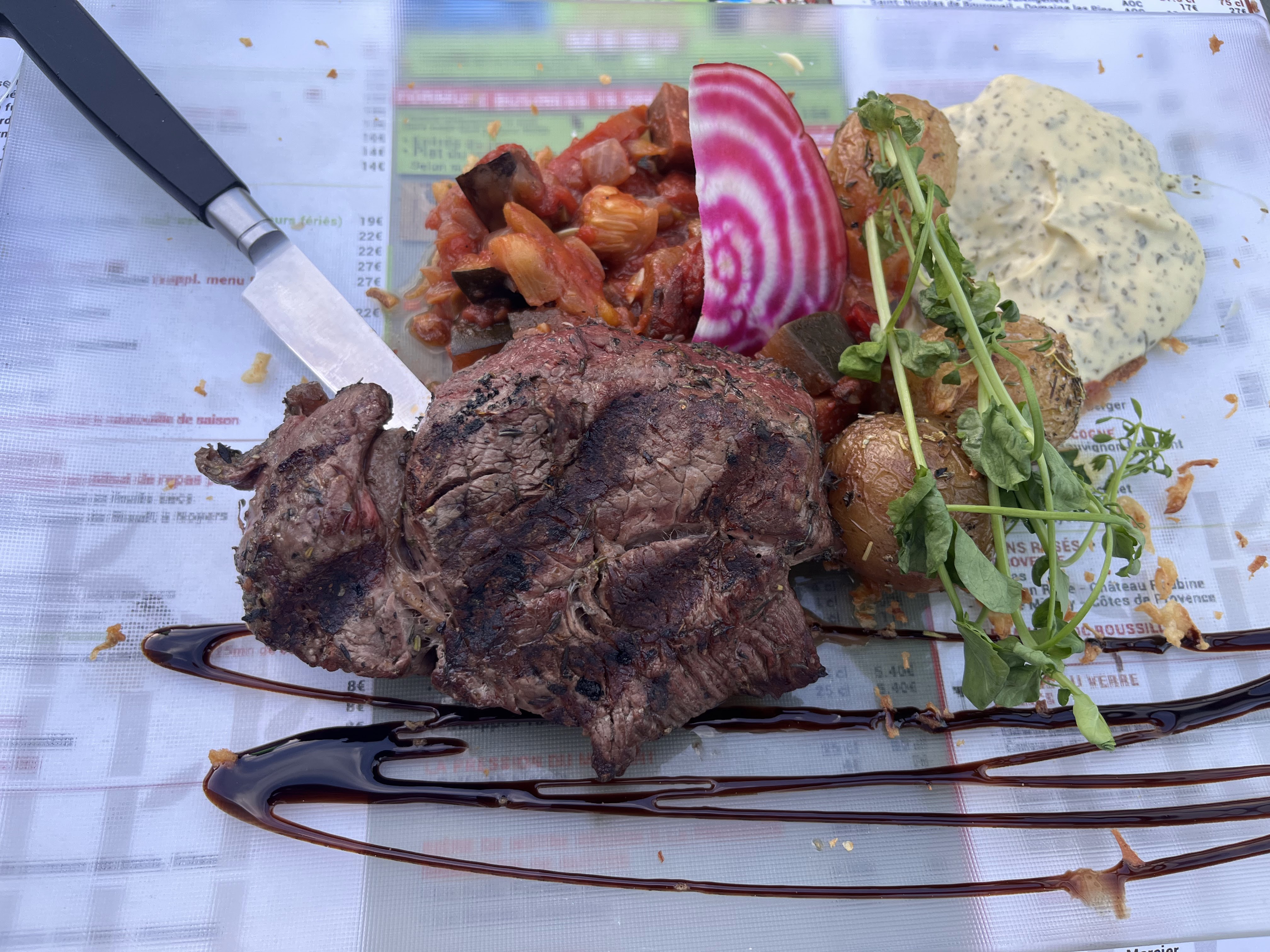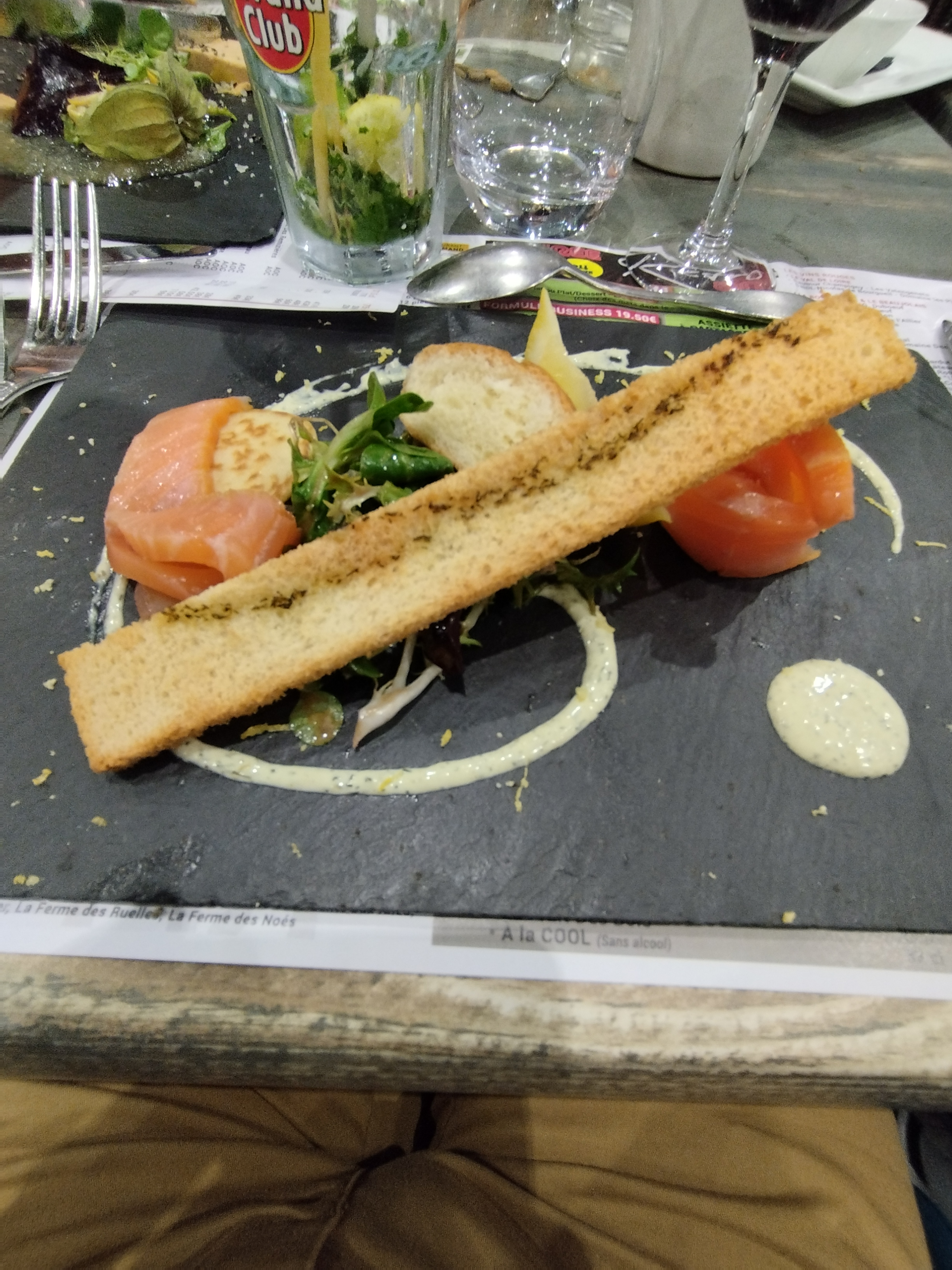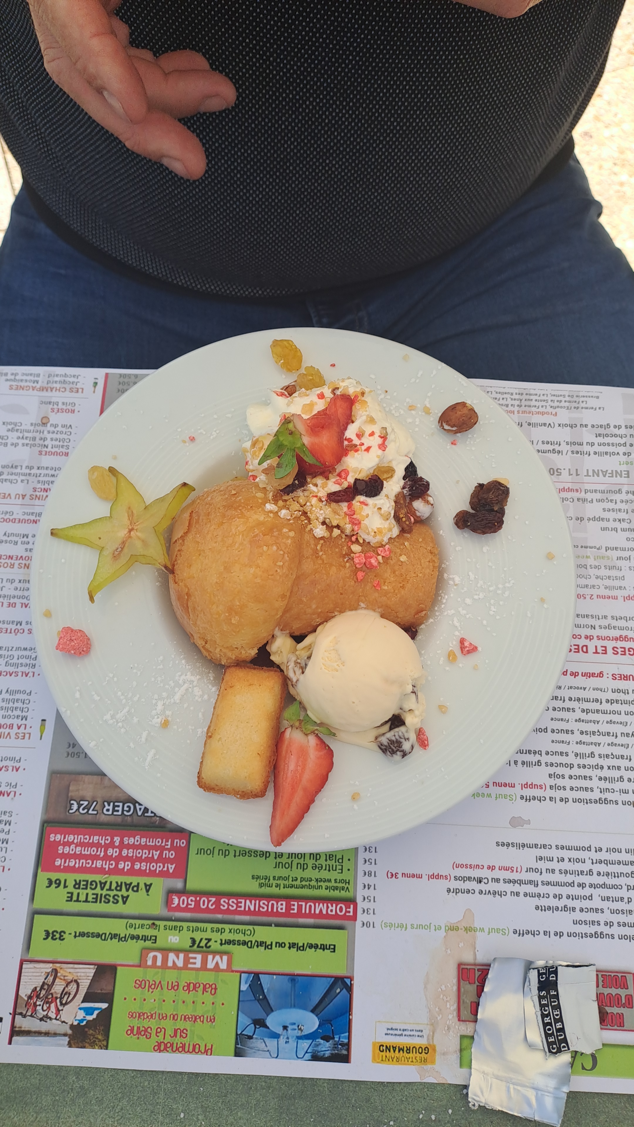 Probablement notre dernier repas de l’année en terrasse au soleil et au bord de l’eau, après une petite visite à Giverny ! Super agréable ! Cuisine assez simple mais vraiment bonne, avec des produits frais et de qualité ! Jolies présentations dans l’assiette ! Os à moelle délicieux. Excellent bar grillé (entier) avec une cuisson impeccable ! Mention spéciale au Douillon Normand en dessert, super bon (demandez-le avec un supplément de chantilly, c’est encore meilleur). Service agréable, souriant et respectueux !