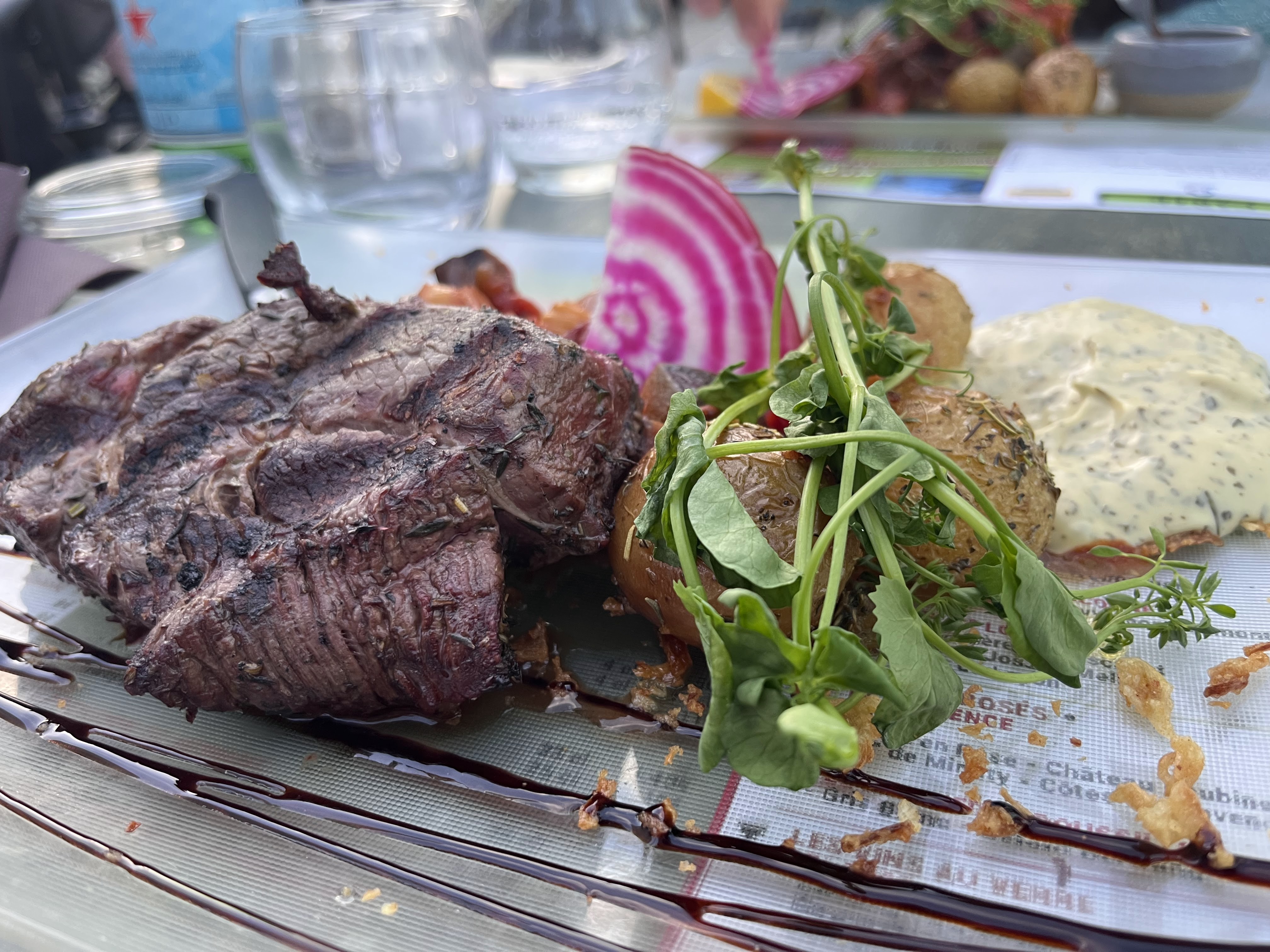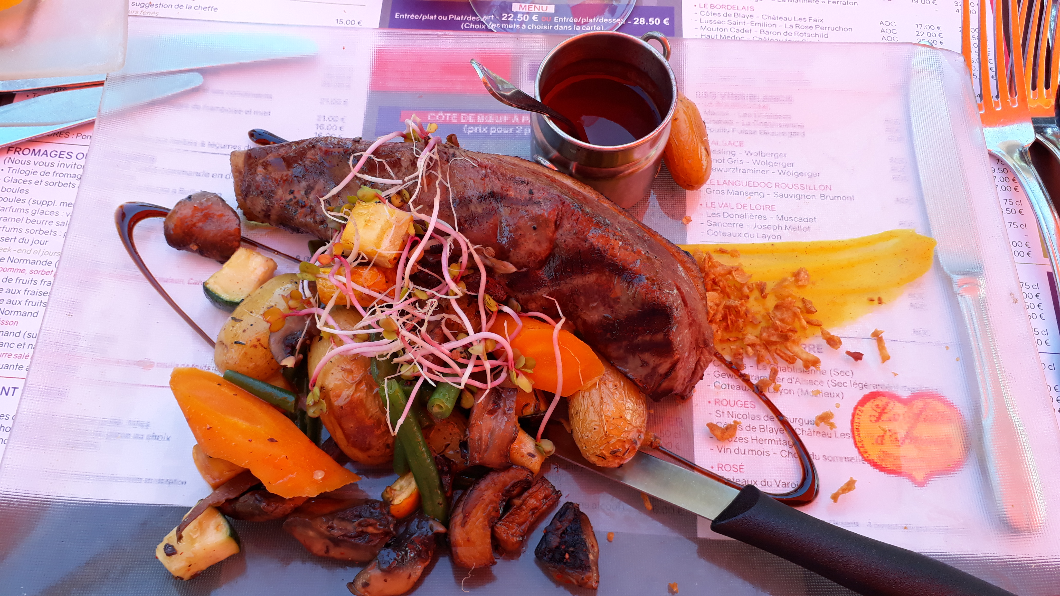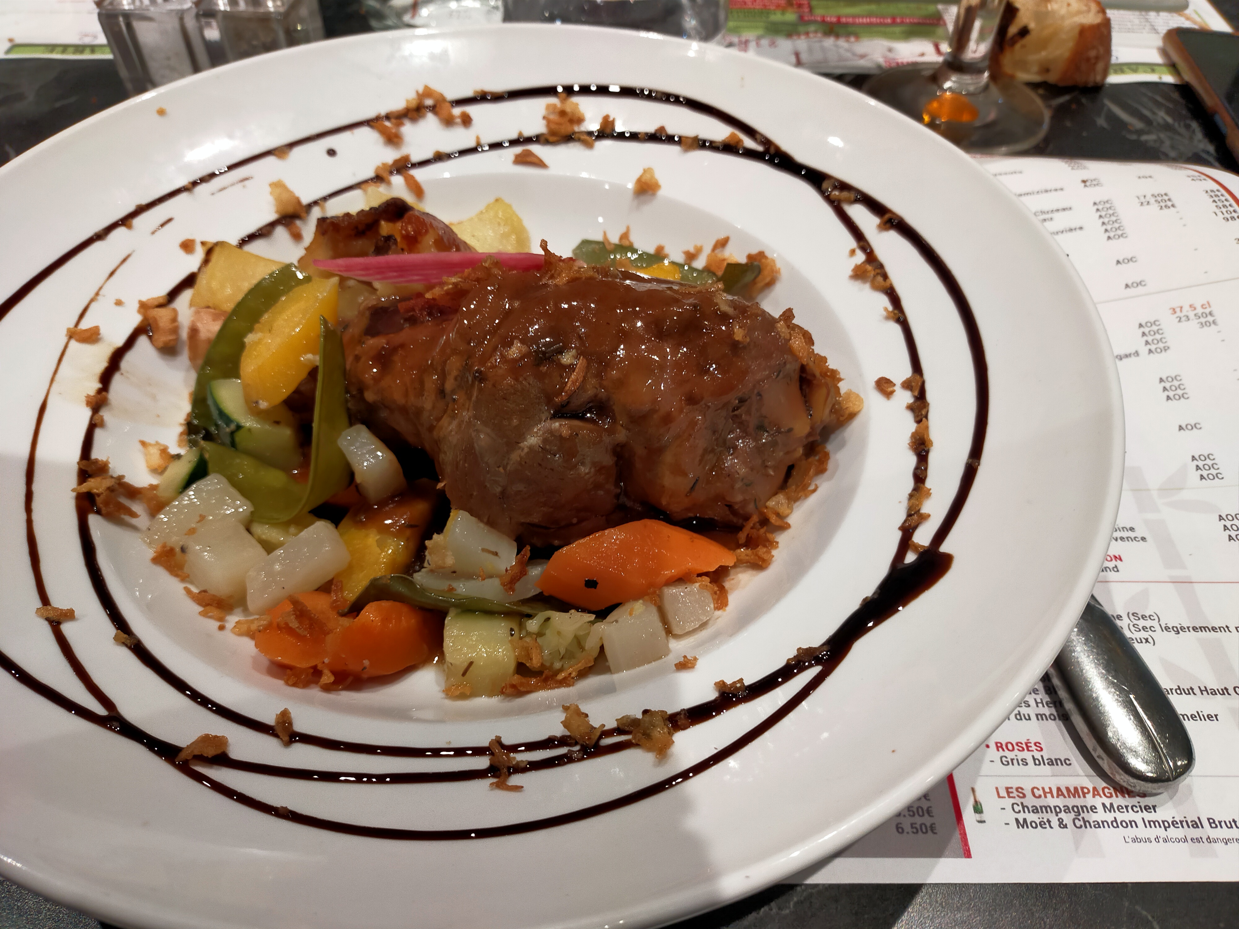 J'ai découvert un lieu agréable et convivial, sans aucun doute plus agréable encore par temps ensoleillé. Le repas n'avait rien a envier au cadre .... un filet très mignon, embelli par sa palette de petits légumes.